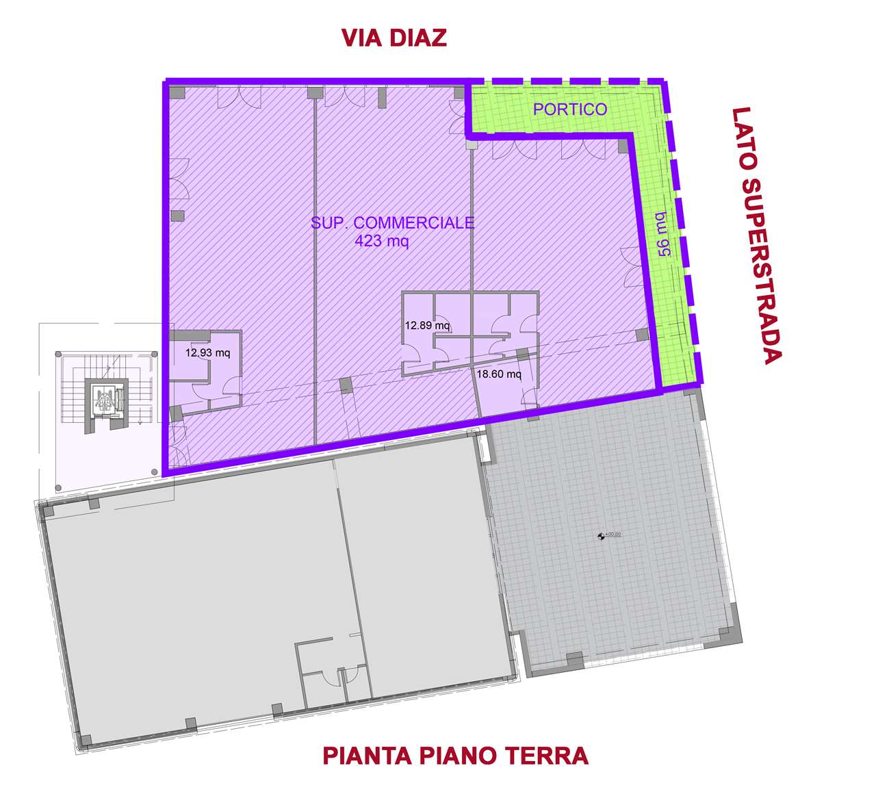 Proponiamo in affitto locali commerciali e/o direzionali situati nella zona industriale di Santa Maria degli Angeli, in una posizione strategica e altamente trafficata, in edificio nuovo che potrà essere consegnato negli ultimi mesi del 2025. \n\nGli spazi hanno un’ottima visibilità, trovandosi lungo Via Diaz, a pochissimi metri dallo svincolo di Santa Maria degli Angeli, su una via obbligata per il traffico in transito dalla superstrada verso il centro di Assisi e da Assisi verso Perugia, Terni e le Marche.\n\nCaratteristiche dell\'immobile\n- Superficie al piano terra a destinazione commerciale per negozi e supermercati, pubblici esercizi (bar, ristoranti), artigianato di servizio non molesto (lavanderie, officine di riparazioni auto, calzolai) mq 480 divisibili in due ampi spazi affittabili separatamente; \n- Superficie al primo piano a destinazione direzionale (o commerciale) per banche, uffici postali, assicurazioni, sedi di enti e società, centri di ricerca, uffici e studi professionali mq 630 divisibili in tre spazi affittabili separatamente. Ingresso esterno indipendente.\nLa considerevole altezza dei vani del primo piano consente un eventuale cambio di destinazione d\'uso a commerciale, collegato sia internamente che esternamente con il piano terra.\n- Copertura praticabile in collegamento verticale con il primo piano oppure indipendente con accesso diretto dall’esterno, con elevato carico di esercizio per aree con tavoli di ristoranti, caffè, attività e vetrine all’aperto.\n- Parcheggi pubblici e privati: superiori agli standard minimi.\n- Superficie totale del lotto: 3.200 mq.\n\nVantaggi della posizione\nOttima visibilità e accessibilità per clienti e fornitori, ideale per attività commerciali, uffici, sedi di enti, studi professionali.\nAlta attrattività della zona, grazie alla presenza di diversi servizi già esistenti e dell’elevato transito di persone e mezzi.\nQuesta è un\'opportunità imperdibile per stabilire la propria attività in una delle location più strategiche della zona!\n\nPer informazioni Roberto Settonce 328 9519484