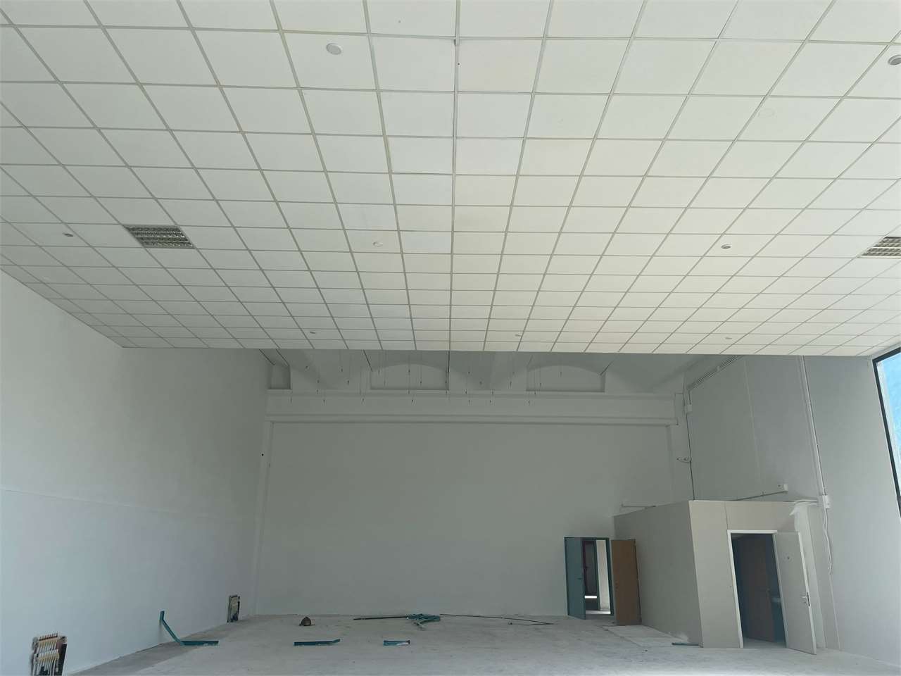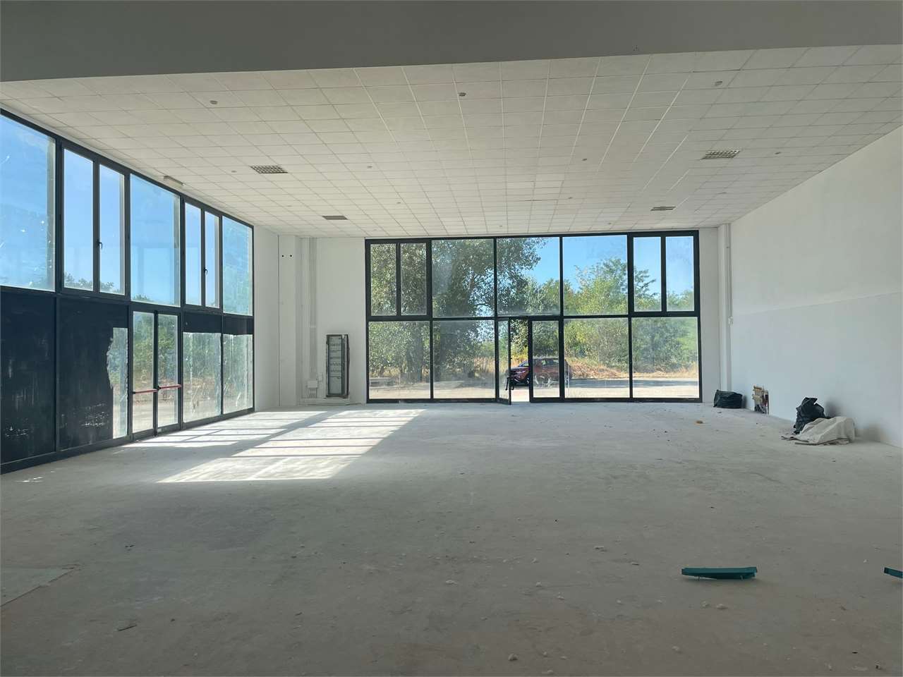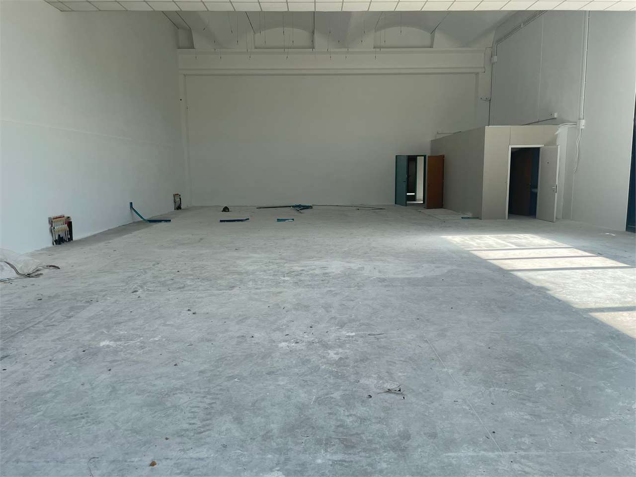 Frimm Immobiliare propone in affitto tra Balanzano e Montebello, porzione di capannone di recente costruzione di mq 450.\nAltezza 7,5 mq sopra la trave e 6,5 mq sotto la trave.\nPer la porzione di Capannone il cliente può utilizzare il piazzale antistante per la lunghezza del suo affaccio a livello lavorativo e per il parcheggio.\nLo stabile è REI 120 ed è dotato di anello antincendio perimetrale.\n\nLa porzione viene concessa tinteggiata, con pavimento industriale, portone di accesso 5x5 mt, quadro elettrico, bagni di servizio.\n\nUlteriori lavori verranno eventualmente computati a parte.