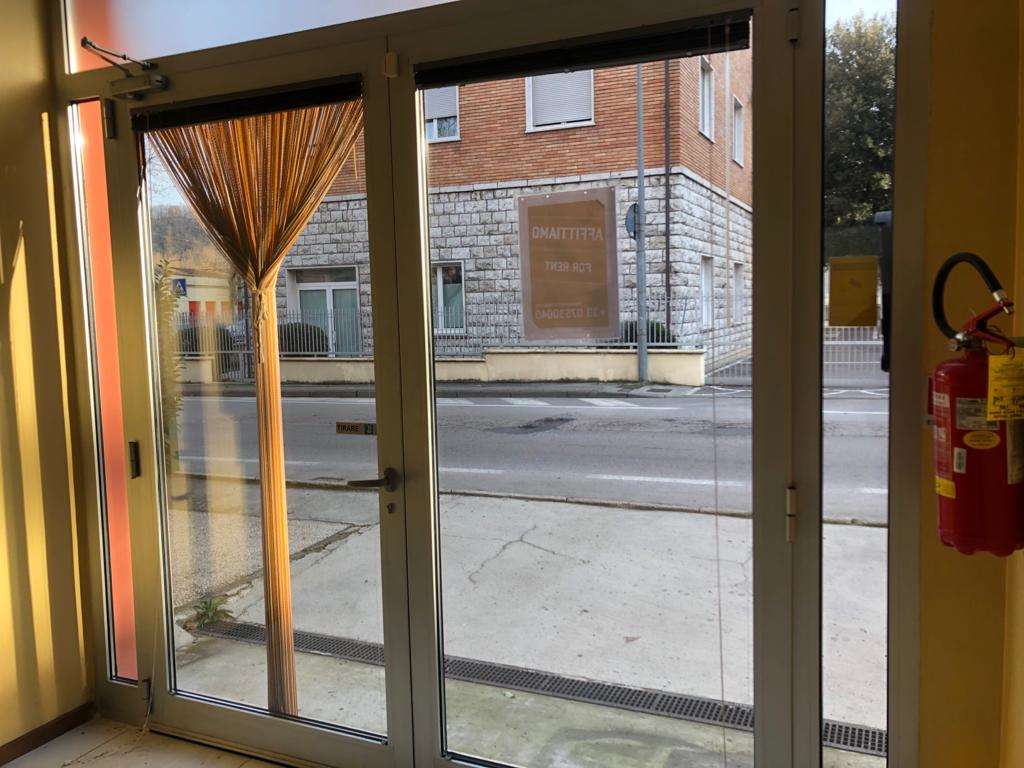 PONTE SAN GIOVANNI: Proponiamo in locazione negozio al piano terra in via della scuola, in posizione con forte passaggio pedonale e veicolare. Il locale è composto da un unico vano open space con una vetrina di circa 50 mq, oltre a due bagni con antibagno e ed a due magazzini, per complessivi 65 mq calpestabili. Parcheggio privato antistante l'ingresso del negozio con 4 posti auto, oltre a rata di giardino adiacente al locale fruibile come spazio esterno. Ottimo stato d'uso, riscaldamento/raffrescamento e produzione acqua autonoma. Per info 349/7266671.