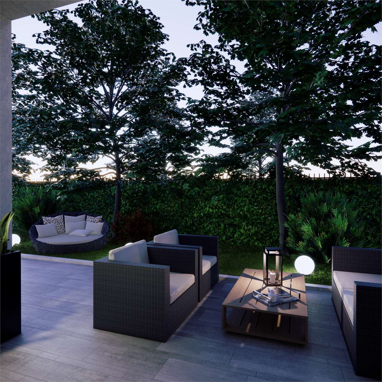 RESIDENZA DEL SOLE. In piccola palazzina di sole 6 unità proponiamo in vendita in esclusiva appartamenti con due o tre camere con giardino o grande terrazzo. Tutti gli appartamenti hanno garage e posto auto esclusivo. Dotata di ascensore. Capitolato di altissima qualità: \nCaratteristiche Principali:\nClasse Energetica A: Questo edificio è stato progettato e costruito con tecniche costruttive innovative per garantire un\'elevata efficienza energetica, contribuendo a ridurre i consumi ei costi energetici. \nAssenza di pilastri: La presenza di una piastra di solaio alleggerita elimina i pilastri discendenti, offrendo grande solidità e permettendo una maggiore libertà di progettazione degli spazi interni. \nInfissi altissima qualità: In PVC di alta qualità con cinque camere d\'aria. Tapparelle in alluminio coibentate. E molto altro ancora. Fissa un appuntamento per visionare il capitolato e avere maggiori informazioni su questa realizzazione esclusiva caratterizzata da qualità costruttiva, posizione panoramica, zona residenziale e tranquilla ma vicina a tutti i servizi. Nello specifico questa scheda si riferisce all\'appartamento grande metratura al piano primo ed è composto da: Soggiorno con angolo cottura, Studio o quarta camera, grande terrazzo coperto, una matrimoniale con bagno e cabina armadio, due camere e bagno. Grande garage di 52 mq e posto auto riservato. Un piccolo estratto del capitolato per evidenziare la qualità costruttiva: Tutte le tamponature esterne verranno realizzate con metodo a secco utilizzando un pacchetto tipo Knauf o similare con spessore finito di cm 30 circa ancorato ad idonea struttura il cui montaggio verrà effettuato esternamente ai pilastri onde evitare ponti termici e garantire ottimo isolamento termo-acustico. Il tutto dimensionato e specificato nei grafici\nesecutivi. La finitura esterna sarà eseguita con tonachino di colore scelto dalla D.L.\nLe superfici esterne come previsto nei grafici dei prospetti verranno tinteggiate utilizzando vernice “silossanica”