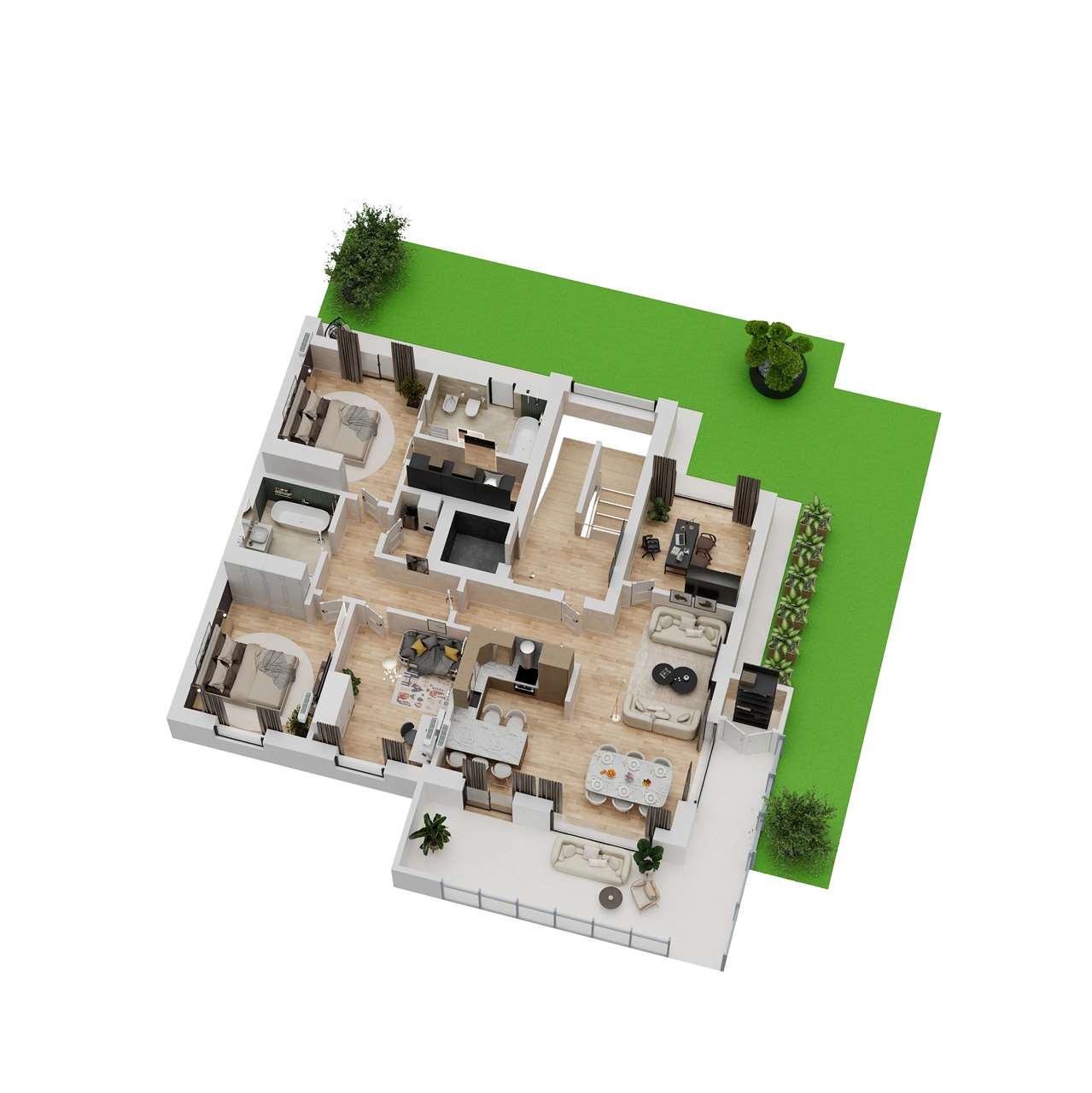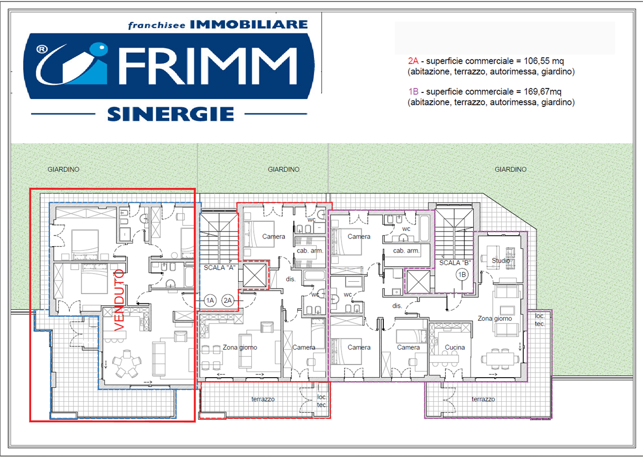 RESIDENZA DEL SOLE. In piccola palazzina di sole 6 unità proponiamo in vendita in esclusiva appartamenti con due o tre camere con giardino o grande terrazzo. Tutti gli appartamenti hanno garage e posto auto esclusivo. Dotata di ascensore. Capitolato di altissima qualità: \nCaratteristiche Principali:\nClasse Energetica A: Questo edificio è stato progettato e costruito con tecniche costruttive innovative per garantire un\'elevata efficienza energetica, contribuendo a ridurre i consumi ei costi energetici. \nAssenza di pilastri: La presenza di una piastra di solaio alleggerita elimina i pilastri discendenti, offrendo grande solidità e permettendo una maggiore libertà di progettazione degli spazi interni. \nInfissi altissima qualità: In PVC di alta qualità con cinque camere d\'aria. Tapparelle in alluminio coibentate. E molto altro ancora. Fissa un appuntamento per visionare il capitolato e avere maggiori informazioni su questa realizzazione esclusiva caratterizzata da qualità costruttiva, posizione panoramica, zona residenziale e tranquilla ma vicina a tutti i servizi. Nello specifico questa scheda si riferisce all\'appartamento grande metratura al piano terra con giardino di 400 mq ed è composto da: Soggiorno con angolo cottura, Studio o quarta camera, grande terrazzo coperto, una matrimoniale con bagno e cabina armadio, due camere e bagno. Grande garage di 49 mq e posto auto riservato. Un piccolo estratto del capitolato per evidenziare la qualità costruttiva: Tutte le tamponature esterne verranno realizzate con metodo a secco utilizzando un\npacchetto tipo Knauf o similare con spessore finito di cm 30 circa ancorato ad idonea struttura il cui montaggio verrà effettuato esternamente ai pilastri onde evitare ponti termici e garantire ottimo isolamento termo-acustico. Il tutto dimensionato e specificato nei grafici esecutivi. La finitura esterna sarà eseguita con tonachino di colore scelto dalla D.L.\nLe superfici esterne come previsto nei grafici dei prospetti verranno tinteggiate utilizzando vernice “silossanica”. Puoi vedere l\'appartamento in 3D su: https://sinergieimmobiliare.widget.floor-plan.online/?id=2fee16b8-5e82-4207-a708-c54b1958b123