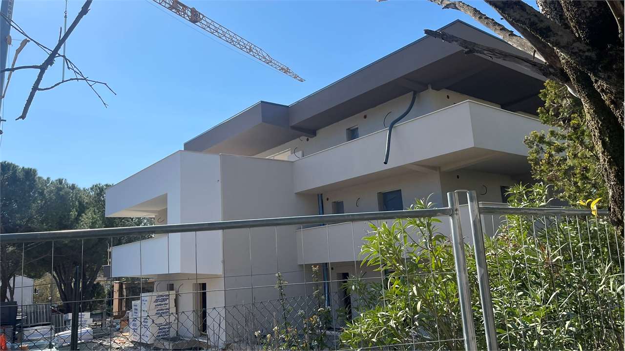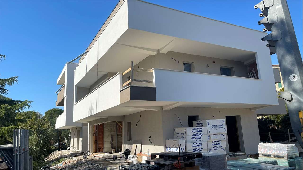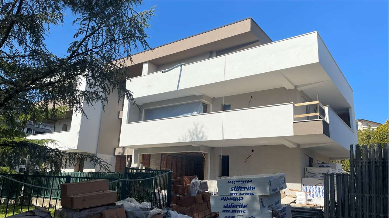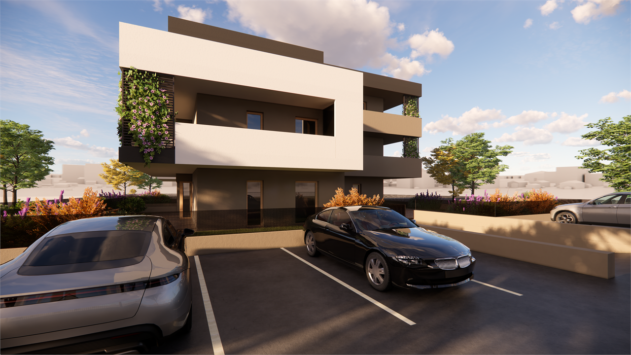 APPARTAMENTO VENDUTO.La palazzina costruita secondo le più moderne tecniche costruttive per il contenimento dei consumi energetici in linea con le più recenti normative che permetteranno al complesso di essere certificato nelle migliori delle classi energetiche: la \"A4\".\nVisita il sito dedicato https://residencegeometrie.it/\nIl progetto, comunque personalizzabile, sarà realizzato nel seguente modo:\n- 2 appartamenti al piano terra con giardini;\n- 2 appartamenti al piano primo con ampi terrazzi;\n- 2 Attici con ampie terrazze.\n\nIl complesso sarà dotato di:\n- fonti di energia rinnovabile per la produzione di energia elettrica che alimenterà la produzione autonoma di acqua calda sia sanitaria che per il riscaldamento\n- isolamento perimetrale a cappotto per prevenire fenomeni di condensa e muffe;\n- impianto di riscaldamento a PAVIMENTO coadiuvato dai\n- pannelli fotovoltaici per ciascuna unità immobiliare;\n- NON ci sarà più né gas né caldaia a metano ma pompa di calore;\n- In tutti i vani principali (camera da letto e soggiorni) verranno installati dei recuperatori di calore decentralizzati a flussi alternati che assicurano un ricambio d’aria controllato dell’aria interna mantenendo l’efficienza energetica, riducendo la dispersione di calore, migliorando la qualità\ndell’aria e contribuendo in modo significativo al risparmio energetico e al mantenimento di un ambiente interno confortevole.;\n- tapparelle motorizzate; infissi in alluminio SCHUCO\n- garage e parcheggi privati;\nNello specifico questa scheda si riferisce a un appartamento al piano terra con soggiorno con angolo cottura, camera master con cabina armadio e bagno en suite, altre due camere e bagno. Terrazzo esterno di 111 mq e giardino di mq 160