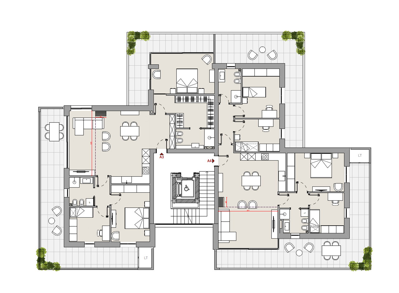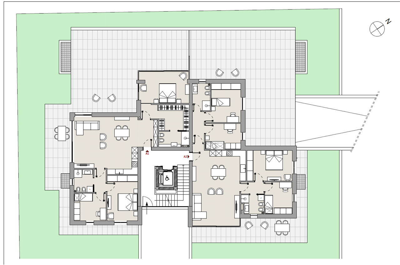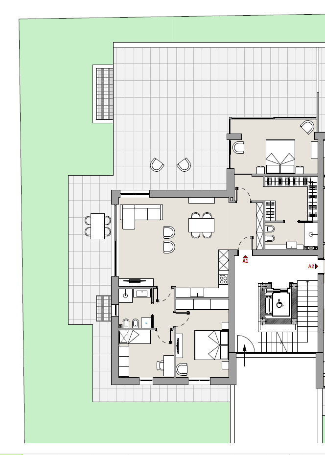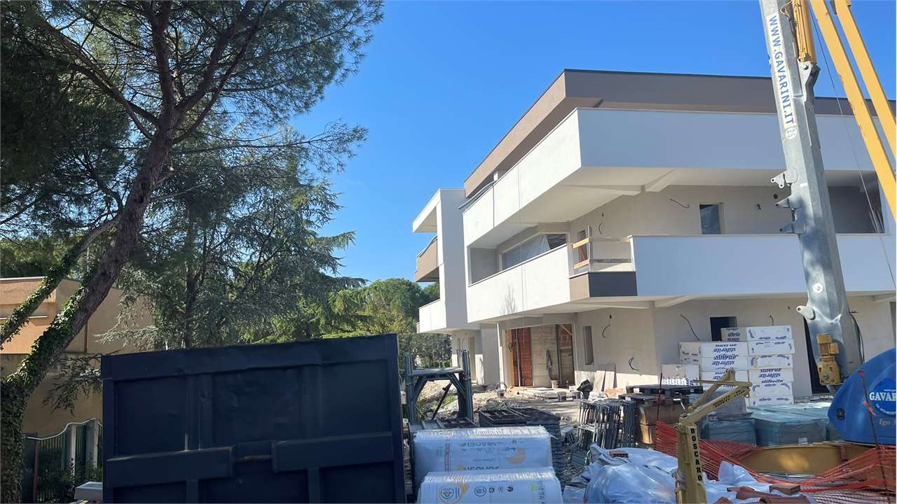 APPARTAMENTO VENDUTO.La palazzina costruita secondo le più moderne tecniche costruttive per il contenimento dei consumi energetici in linea con le più recenti normative che permetteranno al complesso di essere certificato nelle migliori delle classi energetiche: la \"A4\".\nVisita il sito dedicato https://residencegeometrie.it/\nIl progetto, comunque personalizzabile, sarà realizzato nel seguente modo:\n- 2 appartamenti al piano terra con giardini;\n- 2 appartamenti al piano primo con ampi terrazzi;\n- 2 Attici con ampie terrazze.\n\nIl complesso sarà dotato di:\n- fonti di energia rinnovabile per la produzione di energia elettrica che alimenterà la produzione autonoma di acqua calda sia sanitaria che per il riscaldamento\n- isolamento perimetrale a cappotto per prevenire fenomeni di condensa e muffe;\n- impianto di riscaldamento a PAVIMENTO coadiuvato dai\n- pannelli fotovoltaici per ciascuna unità immobiliare;\n- NON ci sarà più né gas né caldaia a metano ma pompa di calore;\n- In tutti i vani principali (camera da letto e soggiorni) verranno installati dei recuperatori di calore decentralizzati a flussi alternati che assicurano un ricambio d’aria controllato dell’aria interna mantenendo l’efficienza energetica, riducendo la dispersione di calore, migliorando la qualità\ndell’aria e contribuendo in modo significativo al risparmio energetico e al mantenimento di un ambiente interno confortevole.;\n- tapparelle motorizzate; infissi in alluminio SCHUCO\n- garage e parcheggi privati;\nNello specifico questa scheda si riferisce a un appartamento al piano terra con soggiorno con angolo cottura, camera master con cabina armadio e bagno en suite, altre due camere e bagno. Terrazzo esterno di 111 mq e giardino di mq 160