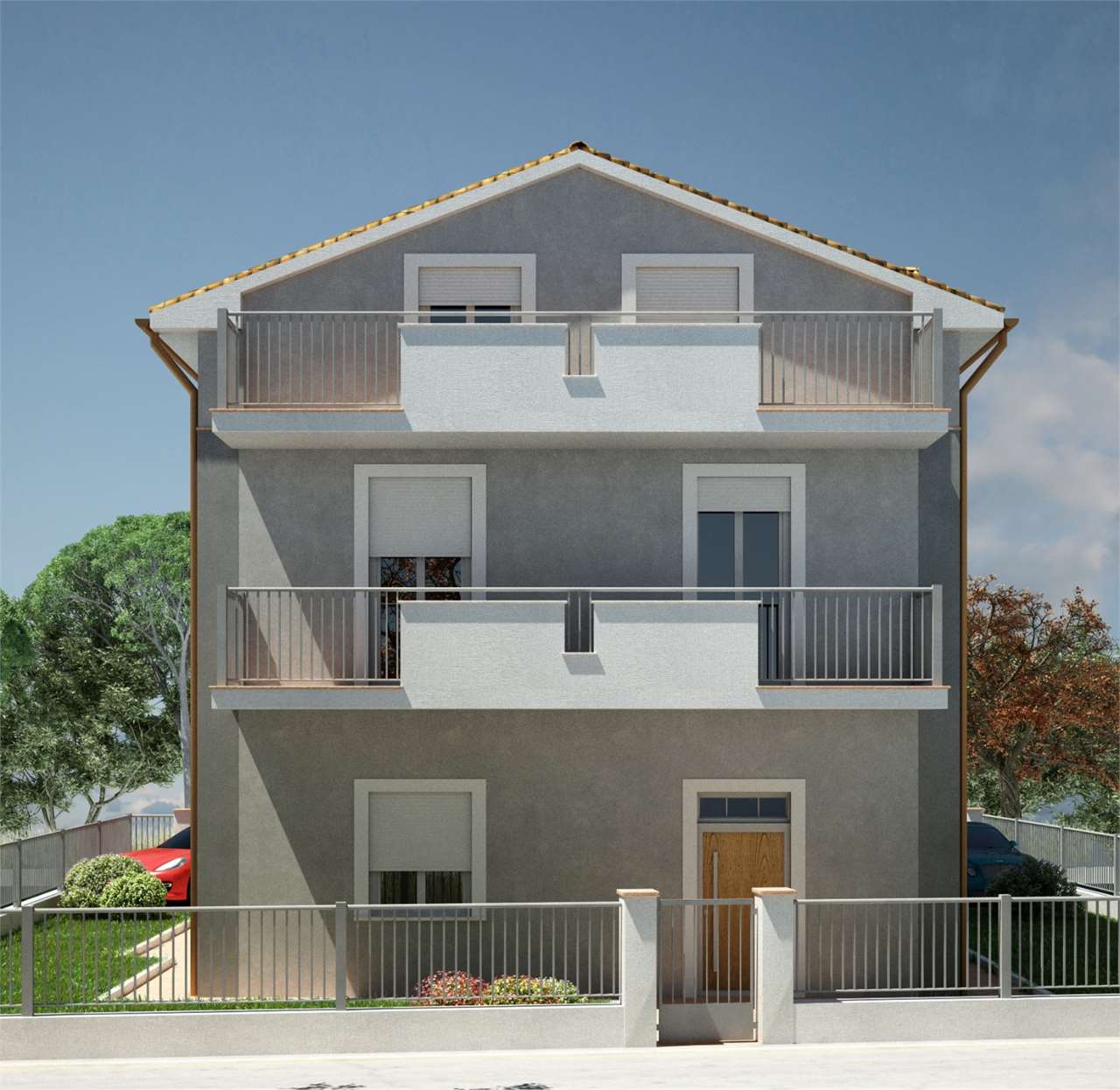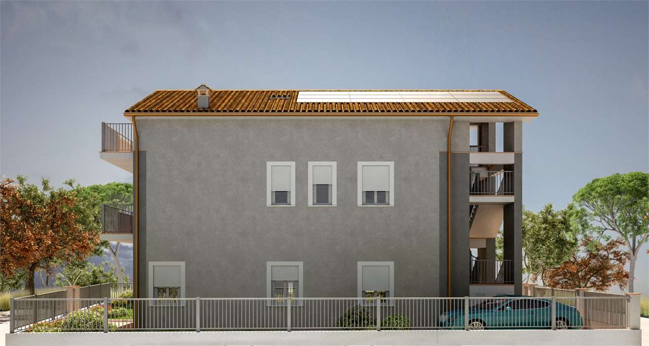 Perugia, zona San Sisto. In piccola palazzina indipendente di soli due piani disponibilità di due appartamenti, uno al piano terra con giardino e uno al primo piano con terrazze. Il prezzo indicato si riferisce a una singola unità immobiliare. Composizione: salone con camino e angolo cottura, tre camere e due bagni.\nAl piano terra giardino di proprietà esclusivo, e al primo piano due terrazze. Inoltre ogni appartamento è dotato di posto auto riservato. Ristrutturato secondo le ultime innovazione delle tecniche costruttive. Impianto fotovoltaico. il prezzo indicato si riferisce a una singola unità immobiliare.