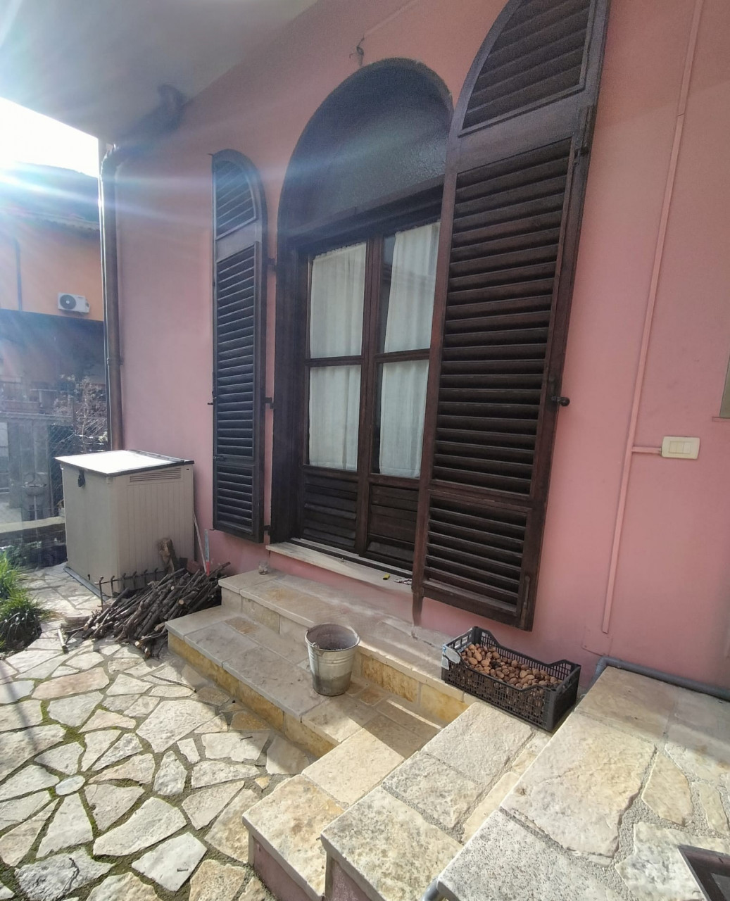 Il luminoso salone è dotato di un camino accogliente rivestito con pietre di fiume, perfetto per le serate autunnali e invernali; da qui si ha accesso diretto a un grazioso giardino privato di circa 40 mq tramite una pregiata porta antica in legno restaurata con doppi scuri. Questo spazio esterno rappresenta il luogo ideale per rilassarsi o intrattenere ospiti durante i mesi più caldi dell'anno. Il giardino include anche una tettoia in legno funzionale utilizzabile come rimessaggio.