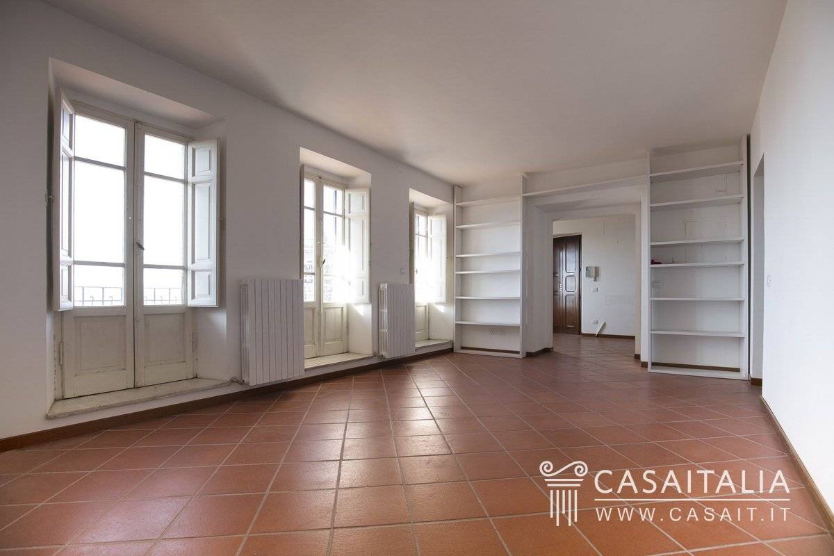 L'Appartamento con Terrazzo Panoramico si trova al piano ammezzato tra il primo e secondo piano di un palazzo storico ristrutturato e in ottime condizioni.