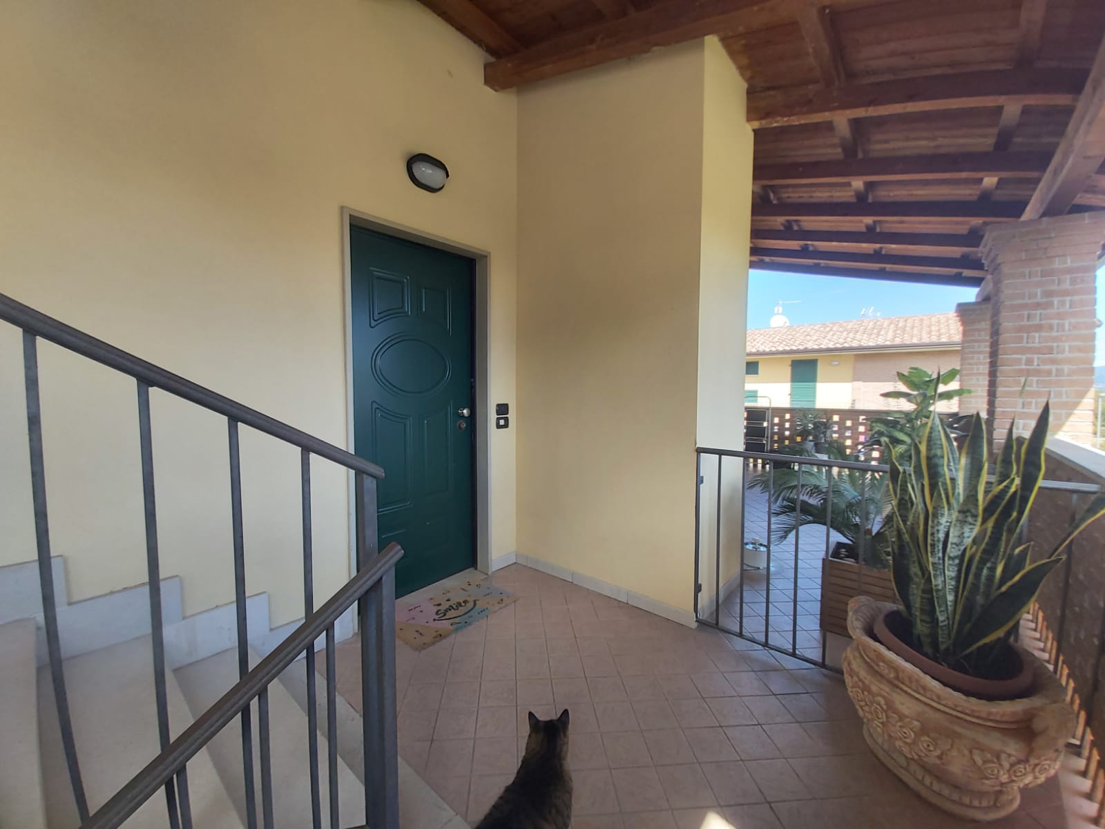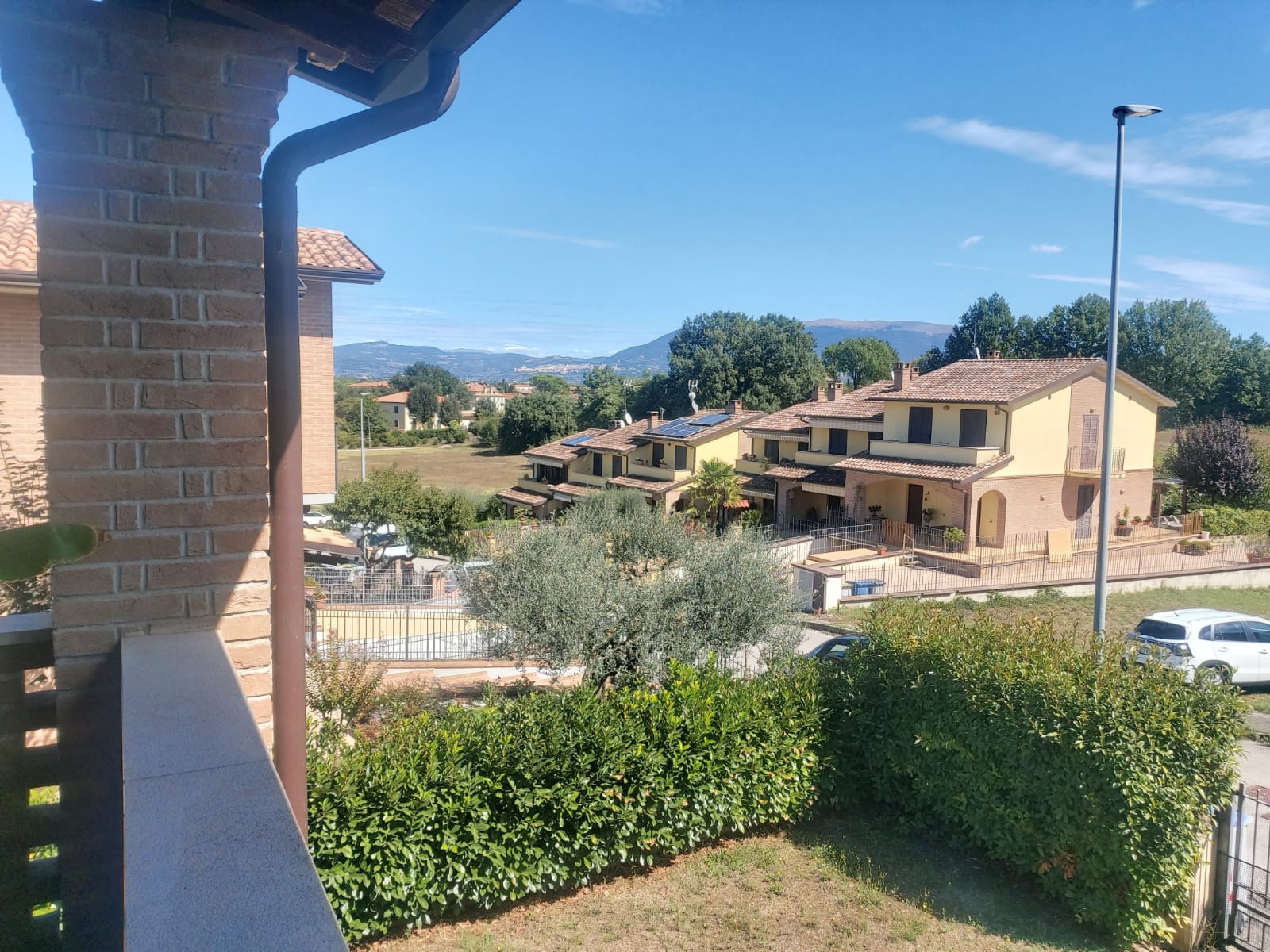 SCOPRILO SUBITOProponiamo in vendita appartamento posto al piano primo di una piccola palazzina di sole quattro unità abitative. L’appartamento, con ingresso indipendente, è composto da soggiorno con angolo cottura dal quale, attraverso un finestrone, si accede in un portico di ampia metratura con vista su tutto in monte Subasio, camera matrimoniale, cameretta, due bagni finestrati. L’appartamento della superficie di 96mq, è stato costruito nell’anno 2006;si presenta in ottime condizioni abitative, rifiniture di ottima qualità, aria condizionata, ottima esposizione. Al piano seminterrato è presente il garage della superficie catastale di mq 26.