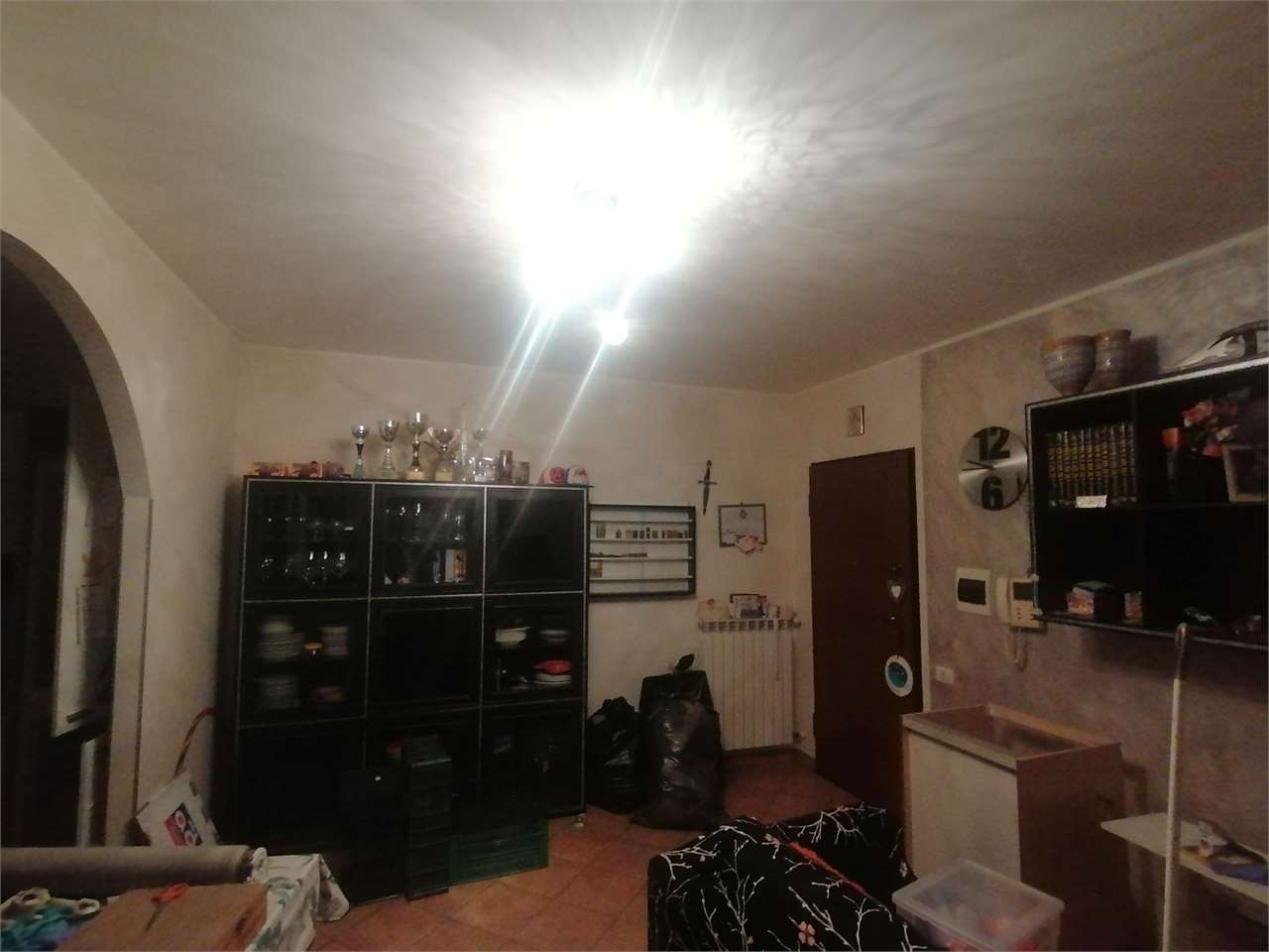 Ellera di Corciano, al centro della frazione a due passi da tutti i servizi principali, vendiamo appartamento al settimo piano, luminoso, composto da ingresso, soggiorno con angolo cucina, due camere matrimoniali, bagno, ampi e panoramici terrazzi. \nL\'appartamento viene venduto parzialmente arredato, la cucina completa e nuova viene compresa nella vendita.\nCompleta la proprietà un garage di 18 mq circa al piano primo sottostrada.\n\nContattateci per visite e info al n. tel. 335 7754960