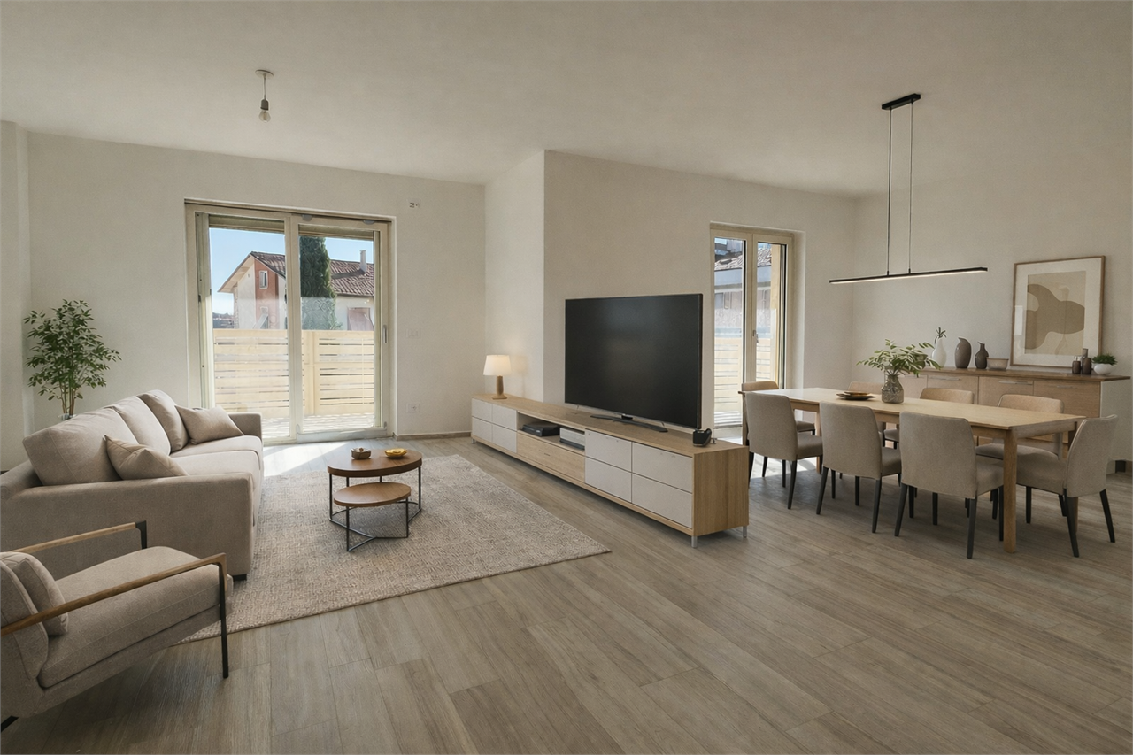 L’Immobiliare Trebbi ha il piacere di proporre in vendita un elegante e raffinato Appartamento di nuova costruzione situato nel cuore di Ellera di Corciano.\n\nL’appartamento si sviluppa su tutto il piano con 4 esposizioni ed è stato concepito con un’attenzione meticolosa ai dettagli e questa soluzione rappresenta un’importante opportunità nel panorama immobiliare locale.\n\nL’immobile si distingue i terrazzi, di circa 30 mq che percorrono quasi tutto il perimetro dell’appartamento, offrendo una vista panoramica grazie alla posizione collinare. \nE’ stato progettato ottimizzando l’orientamento degli ambienti: il soggiorno si affaccia a sud e ovest per avere la massima luminosita\', la cucina ad ovest per godere dell’ultimo raggio di sole, le camere ad est per svegliarsi con la luce naturale, e il vano scala è collocato a nord per proteggere ed isolare l\'appartamento.\n\nAll’interno, l’ingresso conduce a un ampio living open space con cucina a vista, dotata di finestra propria che permette di renderla eventualmente indipendente. \n\nDal soggiorno si accede a un terrazzo, parzialmente coperto, ideale per cene estive e momenti di relax con possibilità di coprirlo con tende o pergola motorizzate, oltre ad un ampio balcone che costeggia quasi tutta la lunghezza dell’appartamento; sul terrazzo grande è possibile collocarvi un vasca idromassaggio.\n\nIl reparto notte si compone di una camera matrimoniale principale, 1 doppia e un\'altra grande singola, doppi servizi entrambi con finestra, ed un locale lavanderia. \n\nL’immobile è dotato di numerose caratteristiche di alta qualità, tra cui:\n\n- Impianto fotovoltaico autonomo che alimenta la pompa di calore per riscaldamento e raffrescamento a pavimento, oltre alle piastre a induzione della cucina, eliminando l’uso del gas e riducendo significativamente i costi energetici;\n- Infissi in PVC con vetri a grande isolamento termico e acustico, zanzariere e tapparelle motorizzate;\n- Predisposizione per aria condizionata.\nTutte queste caratteristiche elevano gli standard di vivibilità, comfort e risparmio energetico, conferendo all’immobile la certificazione energetica di classe A4.\n\nIdeale per chi cerca un’abitazione di prestigio, raffinata e moderna, questo attico rappresenta una soluzione esclusiva per una clientela attenta ai dettagli e alla qualità della vita inoltre con PRONTA consegna.\n\nÈ inoltre disponibile l’acquisto di un garage e di un posto auto privato.\n\nContattateci subito per ulteriori informazioni, per prenotare una visita o per scoprire soluzioni su misura per le vostre esigenze. \nPotete telefonare al ???? 075.5005034 o, se preferite, scriverci o chiamarci direttamente al ???? 335 5650247.\nPer scoprire questa e altre interessanti opportunità immobiliari, vi invitiamo a fissare un appuntamento personalizzato ricordandovi che vorremmo aiutarvi a trovare la casa dei vostri sogni.