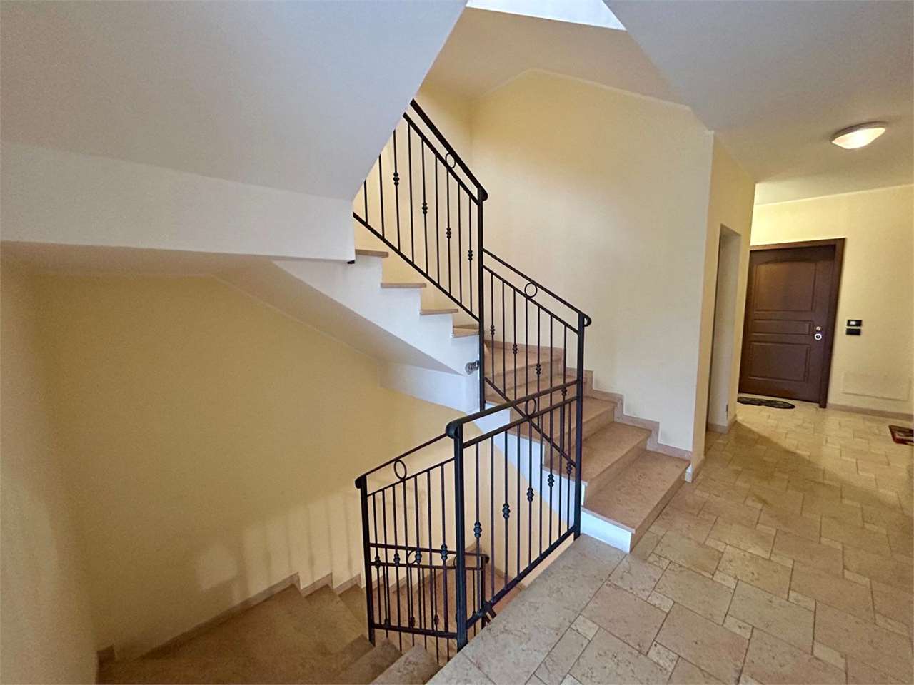 SAN MARIANO – Una delle zone residenziali più apprezzate per tranquillità, vivibilità e servizi, a pochi passi dal Centro Commerciale Gherlinda proponiamo in vendita luminoso appartamento di 115 mq situato al secondo piano di una graziosa palazzina in mattoncino, di recente costruzione.\n\nL’immobile, in perfette condizioni, vanta un’ottima esposizione che garantisce ambienti ariosi e ben illuminati durante tutto l’arco della giornata. La zona giorno è composta da un accogliente soggiorno con accesso ad un comodo terrazzo vivibile e da un cucinotto separato e funzionale. La zona notte include tre camere da letto di cui due con accesso ad un secondo terrazzino, e due bagni, uno con vasca e uno con doccia. Completa la proprietà un ampio garage di ben 38 mq, capace di ospitare comodamente due auto ed offrire ulteriore spazio per bici o scaffalature.\n\nL’appartamento è dotato di comfort moderni, tra cui zanzariere, aria condizionata, impianto di pannelli solari e infissi performanti. \nGli spazi esterni condominiali, ampi e ben curati, l\'adiacenza ad un grazioso parco rende questo immobile ideale per famiglie con bambini e per chi cerca comfort, funzionalità e una posizione strategica, a pochi minuti da tutti i principali servizi.\n\nPer maggiori informazioni e per visitare l\'immobile si prega di contattare il seguente numero: 07530040.