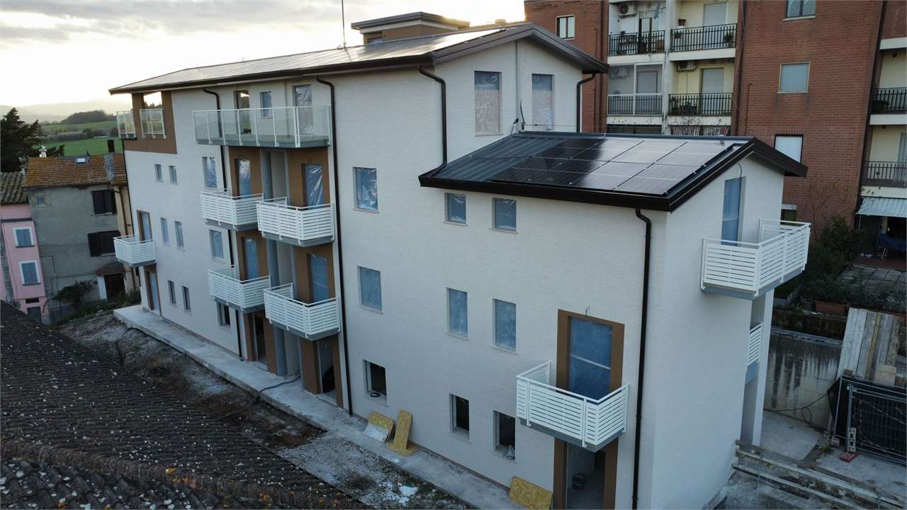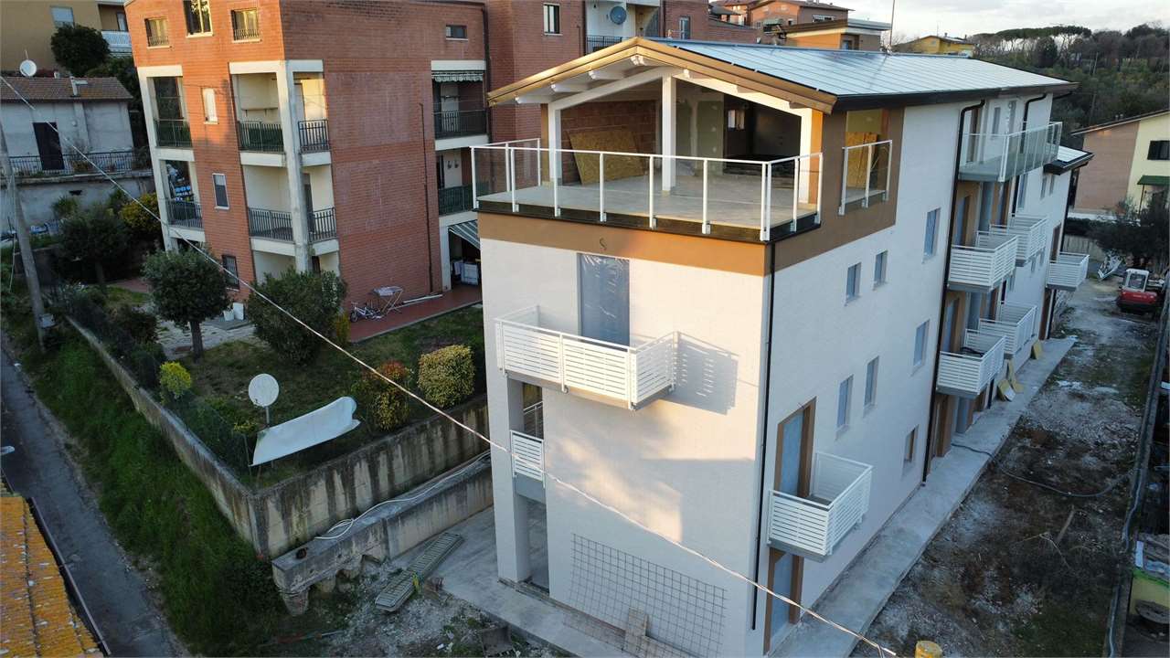 PALAZZINA VIA FONTE DEI LAVATOI, PILA (PERUGIA) – PREZZI A PARTIRE DA € 205.000,00 escluso garage \n\nFrimm Sinergie Immobiliare è lieta di presentare Nuova palazzina in Classe Energetica A4 composta da 6 appartamenti di 95 mq e un attico di 145 mq con terrazzi.\nL\'edificio dispone di 6 garage e 1 cantina, collegati ai piani tramite ascensore, con accesso diretto all’attico.\nStruttura antisismica certificata, muratura a cassetta con isolamento, facciavista esterno e impianti completamente elettrici (NO metano). Ogni appartamento è dotato di pompa di calore, riscaldamento/raffrescamento a pavimento, impianto fotovoltaico da 3 kW (attico maggiorato), produzione ACS tramite pompa di calore, induzione per la cucina.\nFiniture e dotazioni principali:\nInfissi in PVC/alluminio con vetrocamera e persiane in alluminio\n• Portone blindato (opzionale serratura smart)\n• Pavimenti in gres porcellanato effetto legno; parquet nel reparto notte a richiesta\n• Bagni con piatti doccia maggiorati, rubinetteria monocomando\n• Terrazzi in klinker antigelivo con parapetti in ferro (vetro antisfondamento per l’attico)\n• Tramezzi e porte garage in cemento, basculanti verniciate\n• Impianto elettrico BTicino Matix, videocitofono, predisposizione internet\n• Tinteggiature interne bianche, esterni con facciavista ricolorato\n• Giardini dei piani terra delimitati e aree esterne completamente sistemate con asfalto, cordolature e illuminazione\n• Ventilazione e deumidificazione meccanica controllata\n• Videocitofono\n\nPersonalizzazione delle finiture interne su richiesta dell’acquirente, previa approvazione.\nL’edificio, progettato secondo i più moderni standard costruttivi, offre impianti all’avanguardia e ottime rifiniture. \n\nLa zona è tranquilla e ben collegata, con tutti i servizi essenziali dista soli 4 km l’Ospedale Santa Maria della Misericordia.\n________________________________________\nTIPOLOGIE DISPONIBILI \nPIANO TERRA – 86 mq\n• Ampia zona giorno con angolo cottura\n• Disimpegno\n• Due camere (matrimoniale + singola)\n• Due bagni con finestra\n• Portico e corte privata di circa 200 mq (giardino + lastricato)\n• Posto auto esterno privato + posto auto condominiale\n________________________________________\nPIANO TERRA – 90 mq\n• Soggiorno con angolo cottura\n• Disimpegno\n• Due camere (matrimoniale + doppia)\n• Studio/cameretta\n• Due bagni con finestra\n• Portico e corte privata di circa 150 mq (giardino + lastricato)\n• Garage al piano interrato + posto auto condominiale\n________________________________________\nPIANO PRIMO – 87 mq\n• Ampia zona giorno con angolo cottura\n• Disimpegno\n• Due camere (matrimoniale + singola)\n• Due bagni con finestra\n• Terrazzo loggiato + due terrazze\n• Garage al piano interrato + posto auto condominiale\n________________________________________\nPIANO PRIMO – 92 mq\n• Zona giorno con angolo cottura\n• Disimpegno\n• Due camere (matrimoniale + doppia)\n• Studio/cameretta\n• Due bagni con finestra\n• Terrazzo loggiato + due terrazze\n• Garage al piano interrato + posto auto condominiale\n________________________________________\nPIANO SECONDO – 91 mq\n• Ampia zona giorno con angolo cottura\n• Disimpegno\n• Due camere (matrimoniale + singola)\n• Due bagni con finestra\n• Due terrazze\n• Garage al piano interrato + posto auto condominiale\n________________________________________\nPIANO SECONDO – 95 mq\n• Zona giorno con angolo cottura\n• Disimpegno\n• Due camere (matrimoniale + doppia)\n• Studio/cameretta\n• Due bagni con finestra\n• Due terrazze\n• Garage al piano interrato + posto auto condominiale\n________________________________________\nATTICO – 147 mq\n• Ingresso tramite scala privata e ascensore con accesso diretto in casa\n• Disimpegno\n• Ampia zona giorno\n• Veranda solare di circa 31 mq\n• Cucina\n• Tre camere\n• Due bagni con finestra\n• Due terrazze\n• Garage di 25 mq + posto auto condominiale\n________________________________________\n\nConsegna prevista: a breve\n\nPer informazioni e fissare un appuntamento contatta Giuseppe Casella 3884778338