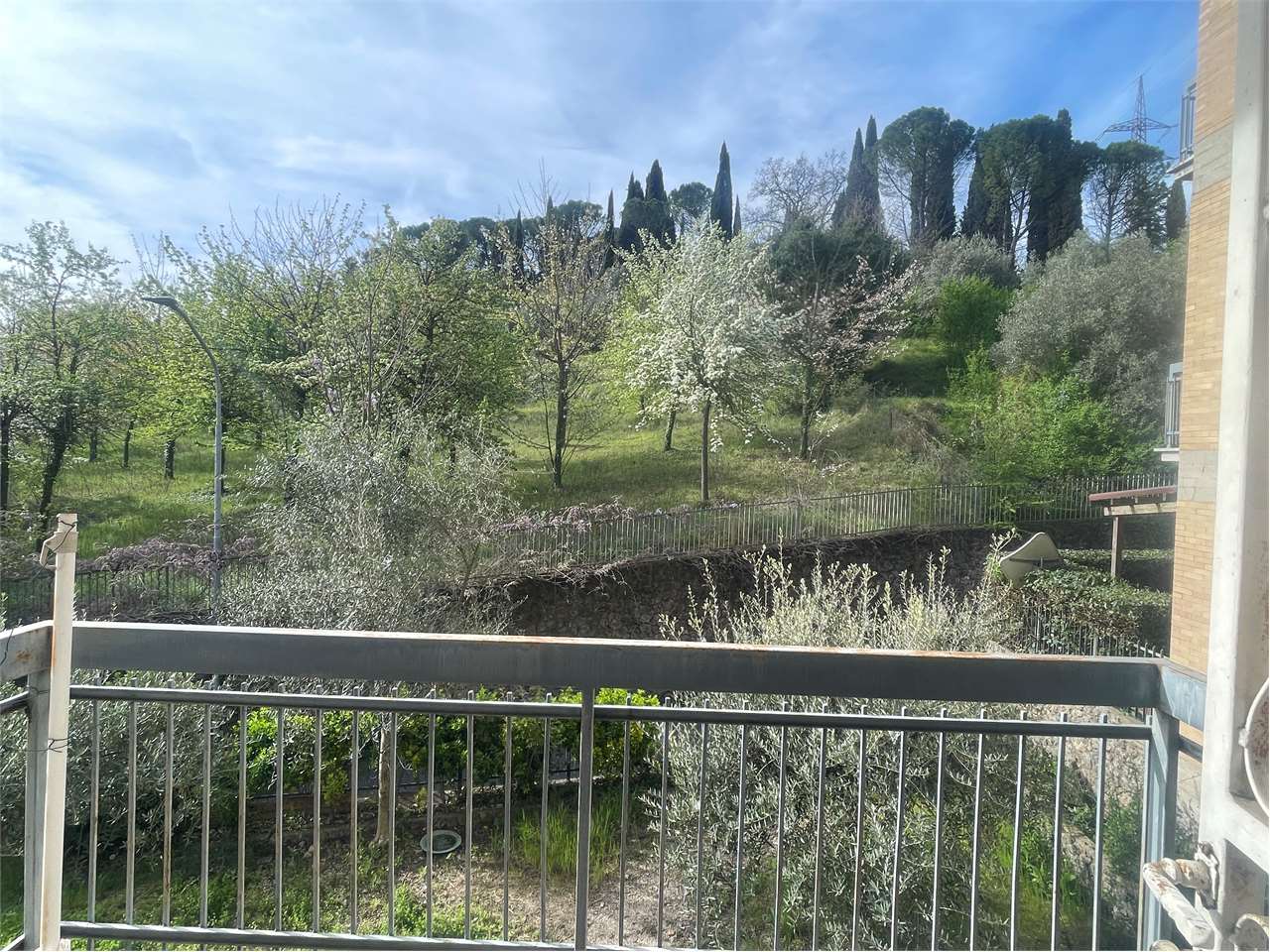 Perugia, in zona residenziale con tutti i servizi a due passi, in palazzina a mattoncini del 1974, con ascensore, disponiamo di appartamento, di mq 140 ca., posto al piano secondo, con al piano terra garage di mq 17 ca., fondo di mq 32 ca. e cantina di mq 6 ca.. Classico appartamento all’italiana così composto: Ampio ingresso, sala con finestra e finestrone, cucina abitabile con finestrone, sia dalla sala che dalla cucina si accede ad un terrazzo esposto a sud/est, studio con piccolo terrazzino, due camere matrimoniali, camera doppia, due bagni, entrambi con finestra e piccolo terrazzo; completano la proprietà un bellissimo fondo/magazzino di mq 32 ca. posto al piano terra con ingresso indipendente, oltre una cantina e un garage posto al piano terra. \n\nLa palazzina, situata in seconda fila rispetto alla strada principale, gode di tranquillità e offre un ampio parcheggio condominiale confinante con una zona verde. L’appartamento ha le finiture classiche d’epoca, il riscaldamento è autonomo, le spese condominiali sono di ca € 65,00/mese. \n\nFiniture: portone semi-blindato, porte in legno, infissi in legno e tapparelle con doppio infisso in alluminio, pavimenti in monocottura. \n\nZona tranquilla, sono presenti scuole, farmacia, poste, supermercati, autobus di linea, parchi e chiese.\nPer appuntamenti contattare Michele Merli 335.5636517\n\nTutti i dati indicati relativi all\'immobile sono stati forniti in buona fede dal proprietario e non costituiscono elemento contrattuale, pertanto l’agente immobiliare non si assume nessuna responsabilità.