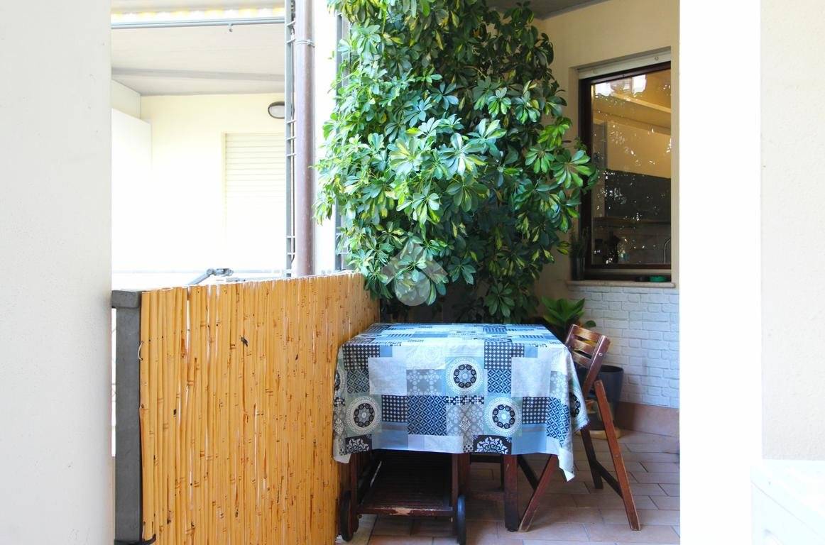 Il terrazzo, spazioso e ben organizzato, ospita anche una comoda lavanderia con armadio a muro e tende da sole che proteggono nelle giornate più calde. Ogni ambiente è climatizzato e ristrutturato con cura nei dettagli — dagli impianti ai pavimenti in gres e laminato — offrendo un equilibrio perfetto tra modernità ed efficienza energetica.
