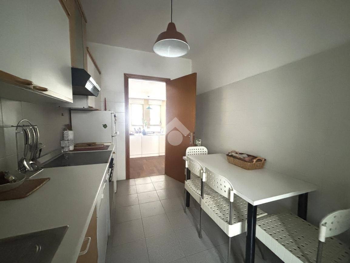 La cucina abitabile, con accesso diretto ad un secondo balcone, è perfetta per chi ama cucinare e condividere pasti in famiglia.