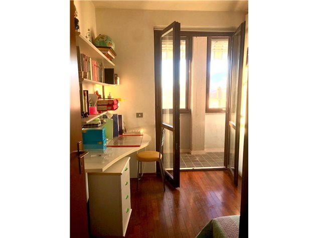 L'appartamento è composto da ingresso, salone doppio con porta scorrevole e quindi possibilità di divisione, camino, ampio balcone, cucina abitabile con accesso su terrazzo abitabile verandato ideale per mangiare l'estate, disimpegno, ripostiglio, due ampie camere da letto con altro terrazzo coperto utilizzato come zona lavanderia e doppi servizi entrambi finestrati. Completa la proprietà una comoda cantina situata nella zona garage.
