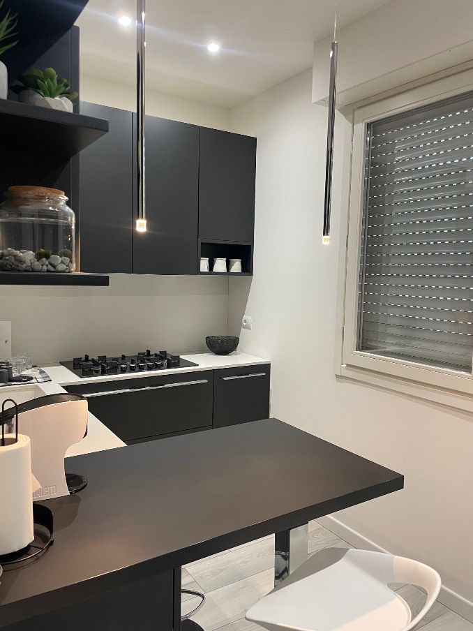 SCOPRILO SUBITOBELLISSIMO APPARTAMENTO NEL NUOVO COMPLESSO RESIDENZIALE COMPOSTO DA SALONE CUCINA COMPLETAMENTE ARREDATA 2 CAMERE 2 BAGNI AMPIO TERRAZZO E GARAGE DOPPIO, OTTIME RIFINITURE RISCALDAMENTO A PAVIMENTO PREDIS. A.C TAPPARELLE ELETTRICHE E BAGNI COMPLETI DI MOBILIO