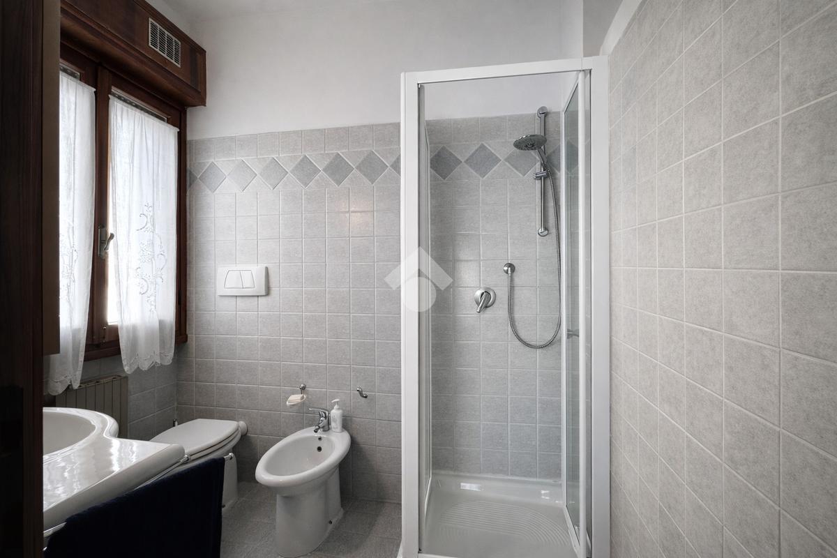 Il percorso continua verso le camere, ben dimensionate e adatte a una famiglia o a chi necessita di una stanza aggiuntiva per studio o ospiti. I servizi sono ordinati e funzionali, con rivestimenti chiari e una disposizione pratica per la gestione quotidiana.