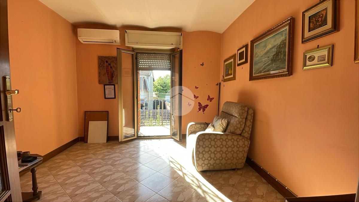 L'appartamento più grande si trova al piano primo ed ultimo e si dispone su una superficie catastale complessiva di 91 mq circa. Si caratterizza per un ingresso su corridoio, soggiorno, cucina abitabile con camino e balcone, bagno finestrato dotato di doccia, due camere da letto, di cui una con accesso interno al sottotetto utilizzabile come ampio ripostiglio e l'altra dotata di accesso al balcone perimetrale che si affaccia sul cortile esclusivo del fabbricato, a cui si accede tramite scalinata esterna. L'immobile è termo-autonomo e nel complesso si trova in buono stato conservativo.