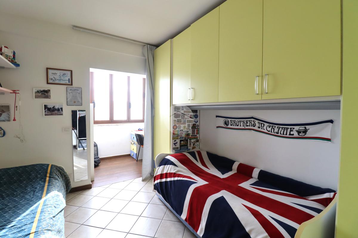 La zona notte, ben divisa dalla zona giorno, offre due camere da letto, di cui una con terrazzo privato, un ampio bagno finestrato con vasca e un secondo bagno di servizio con doccia, pensato per una vita quotidiana pratica e organizzata.