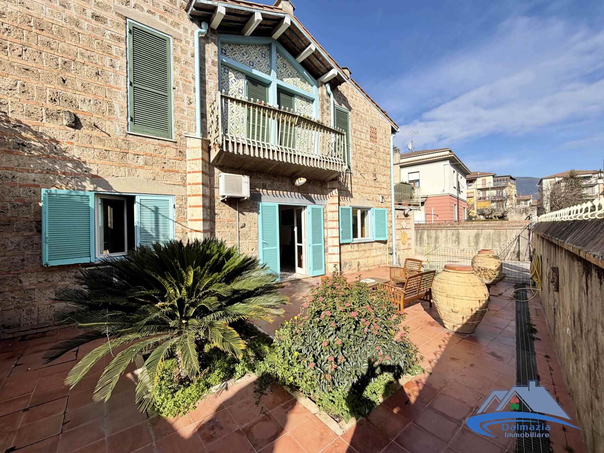Rivestito in pietra sponga e ricercati elementi di pregio, l’edificio è ubicato in una via tranquilla e silenziosa con un’ottima esposizione. Con doppio ingresso indipendente, pedonale e carrabile ed ampio spazio esterno, la casa si compone da disimpegno che ci conduce alla cucina abitale con sala da pranzo, proseguendo troviamo un elegante soggiorno doppio, caratterizzato da pavimenti di pregio Capogrossi e da una bella vetrata con accesso ed affaccio sulla corte esterna. Zona notte con 2 ampie e comode camere di cui una con bagno finestrato e doccia. Il secondo bagno padronale molto ricercato è finestrato con vasca. La cabina armadio a vista ed un ripostiglio completano la parte interna della casa. Esternamente abbiamo come pertinenze al piano terra un comodo locale dotato di camino e riscaldamento attualmente adibito a garage ed al piano seminterrato una caratteristica taverna con camino ideale per momenti di svago o come spazio per hobby.