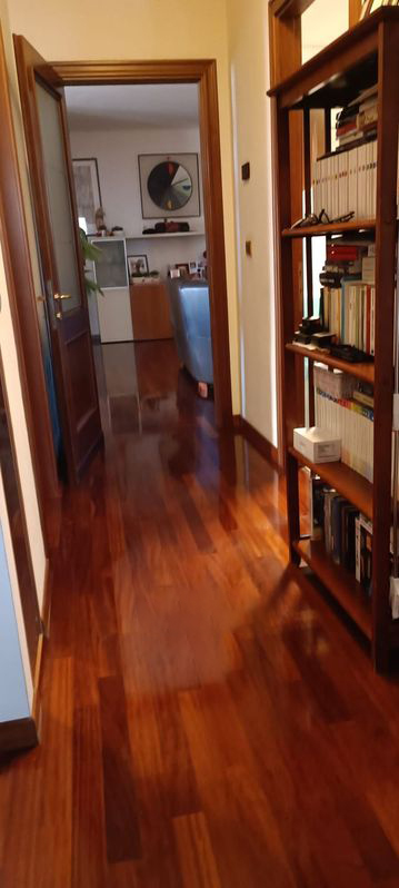 La zona notte è composta da tre camere spaziose, perfette per una famiglia o per chi desidera avere uno studio o una stanza per gli ospiti. Il bagno principale, dotato di finestra e vasca idromassaggio, è un vero e proprio angolo di relax, mentre il secondo bagno offre una pratica doccia. La pavimentazione in parquet Iroko aggiunge un tocco di calore e raffinatezza agli ambienti, mentre gli infissi in legno con doppio vetro garantiscono un ottimo isolamento acustico e termico.