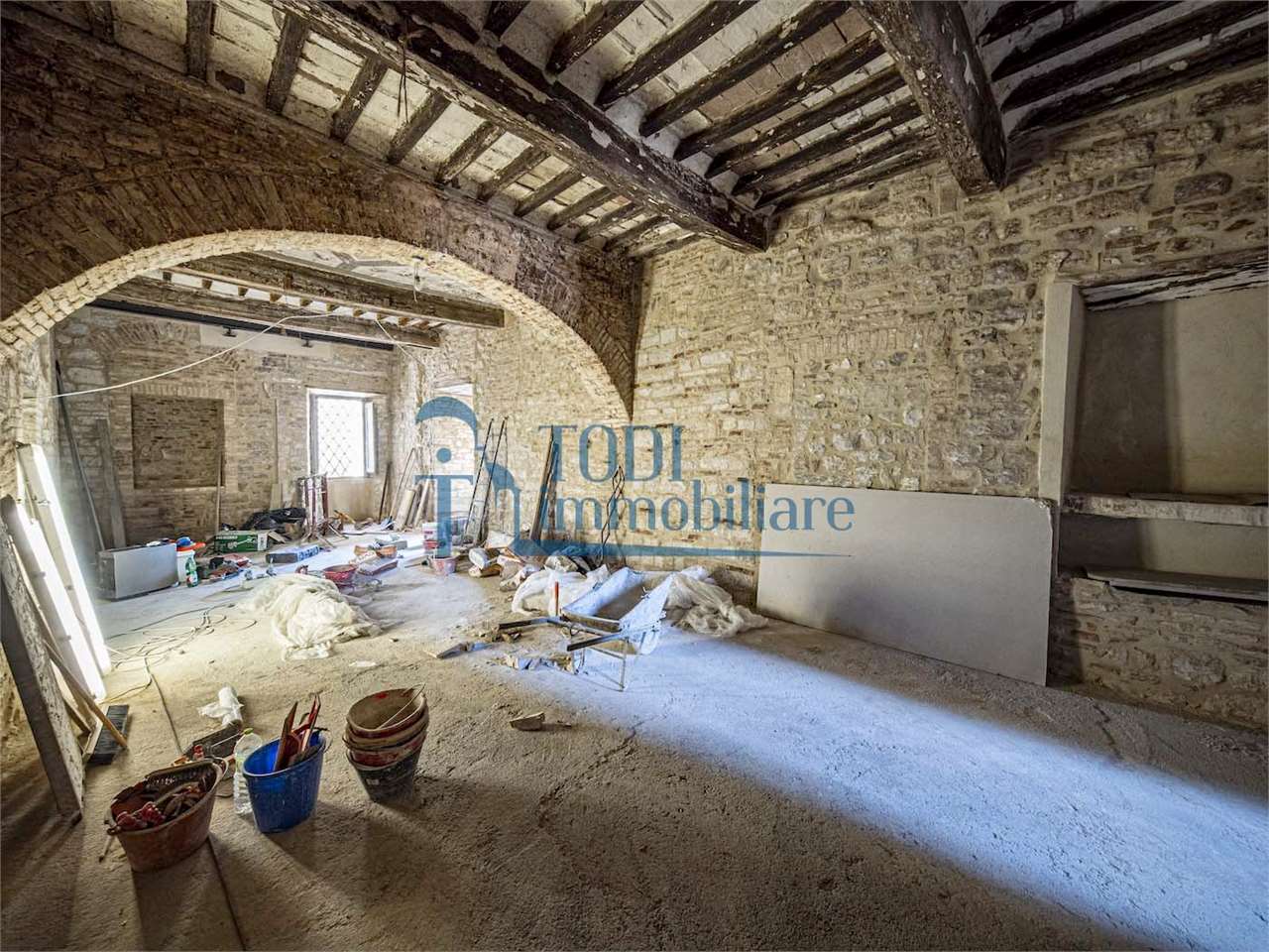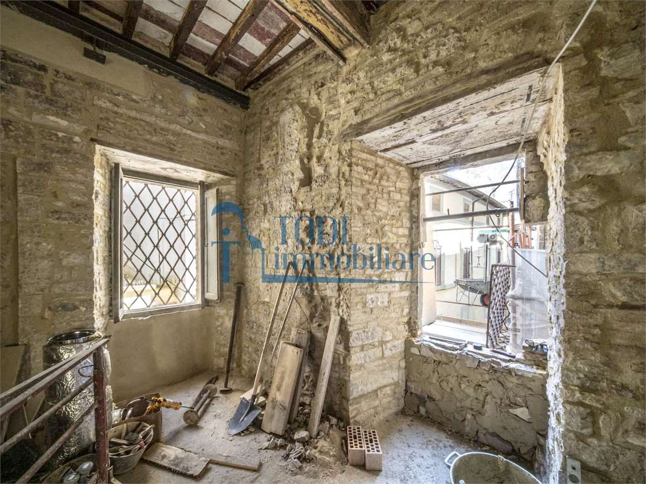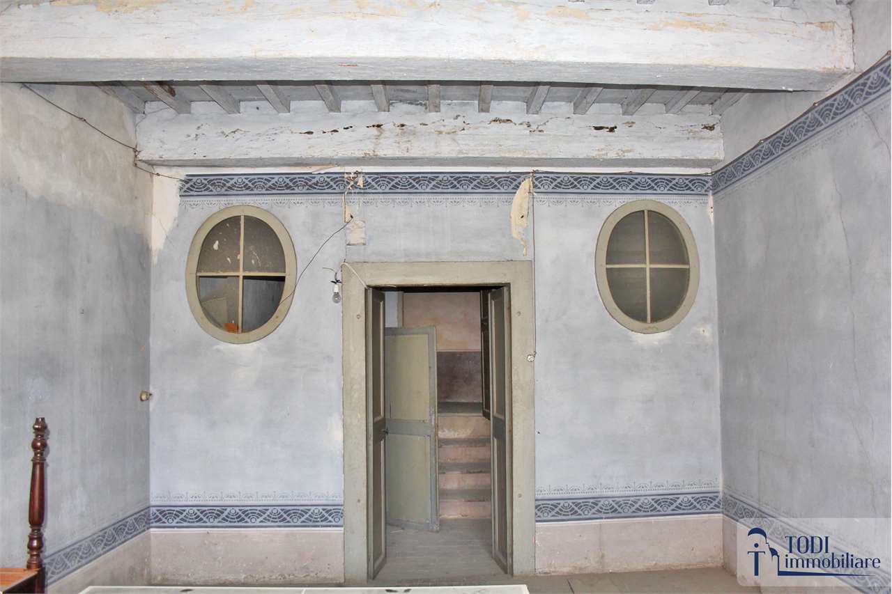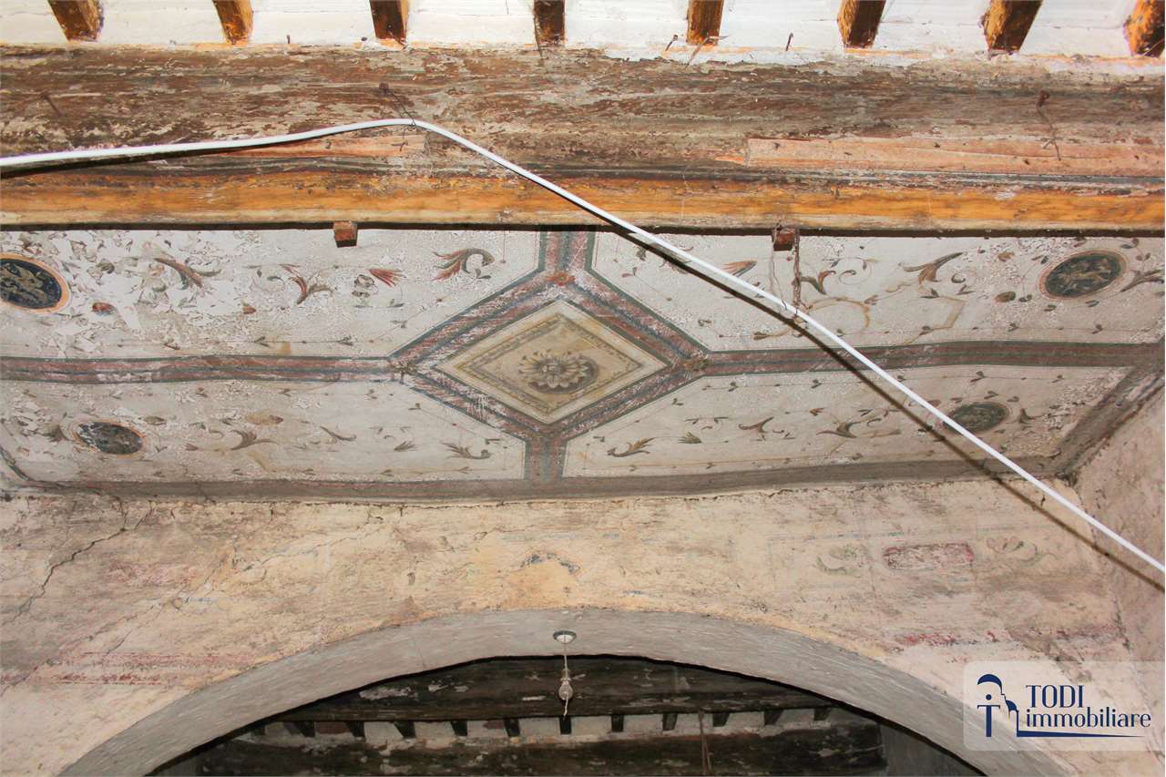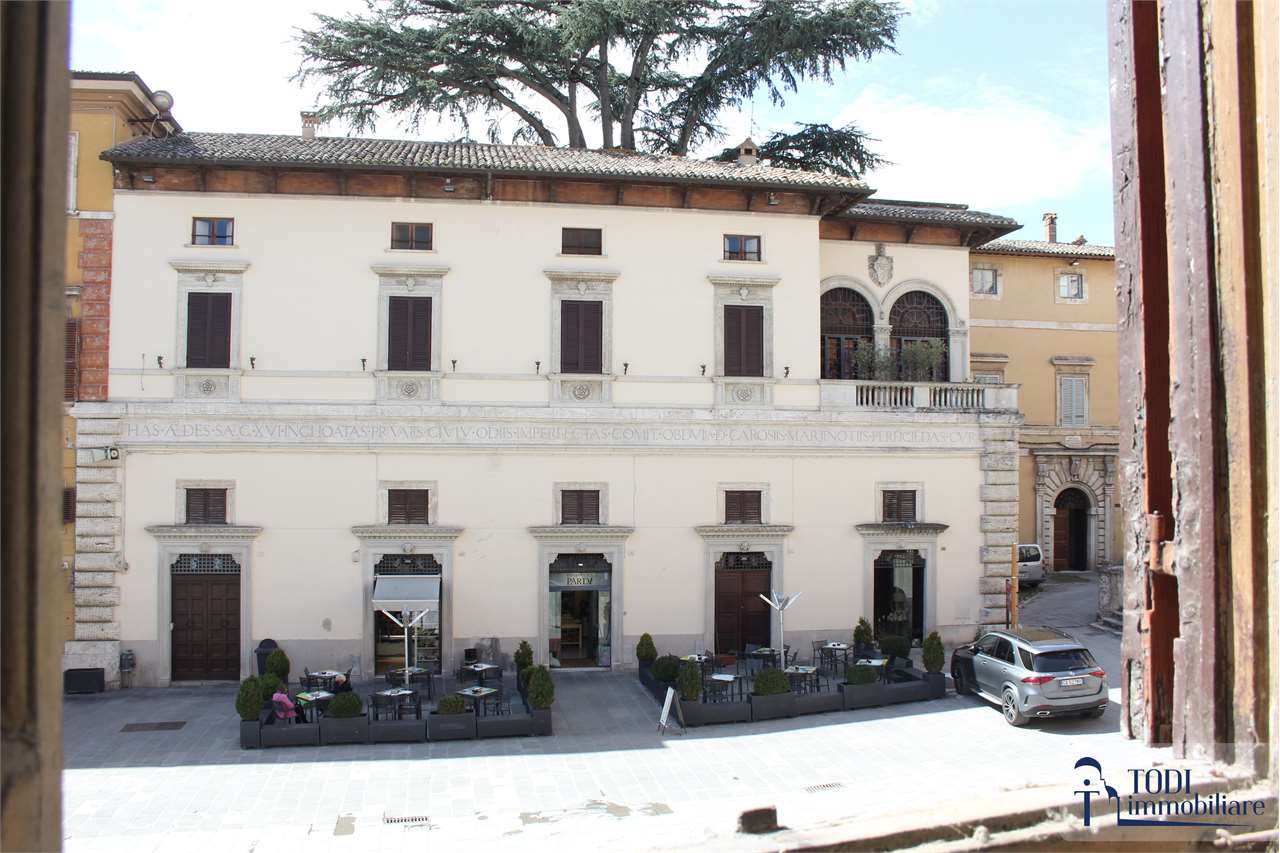 Scopri questo caratteristico appartamento situato nel centro storico di Todi, in un antico palazzo che racconta storie di epoche passate. Con una superficie commerciale di circa 320 mq, questo immobile al piano nobile offre un affaccio diretto sulla splendida Piazza del Popolo, regalando un panorama mozzafiato ogni giorno.\n\nL\'appartamento presenta due distinti accessi indipendenti, rendendo possibile una suddivisione in più unità immobiliari. Gli interni sono caratterizzati da soffitti con travature in legno e pianelle di cotto, volte a botte e affreschi originali che creano un\'atmosfera unica e affascinante. Le nicchie originali e il soppalco in legno aggiungono un tocco di eleganza e funzionalità.\n\nSebbene l\'immobile necessiti di una ristrutturazione interna completa, il recente intervento edilizio conservativo ha riportato le pareti e i soffitti a faccia vista, mantenendo intatta la bellezza storica. I pavimenti in cotto originale e gli infissi in legno autentici completano questo straordinario appartamento.\n\nCon 10 locali e un bagno, questo spazio offre infinite possibilità per creare la casa dei propri sogni o un investimento immobiliare di valore. Non perdere l\'opportunità di vivere nel cuore della cittadina Tuderte, dove storia e modernità si incontrano. Contattaci per maggiori informazioni e per organizzare una visita!