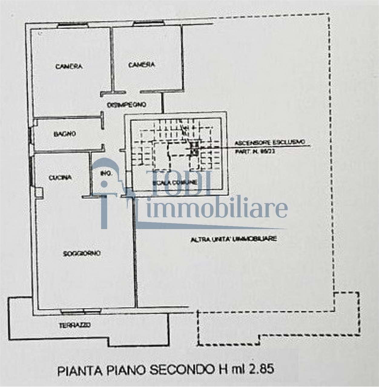 Scopri questa proprietà in vendita a Todi, situato in una piccola palazzina di sole sette unità, l\'appartamento si trova al secondo piano e offre una superficie di circa 90 mq utili. Completamente abitabile da subito, è l\'ideale per chi cerca una prima residenza o un rifugio tranquillo. \n\nL\'immobile è composto da un accogliente ingresso/disimpegno, un cucinino funzionale, un luminoso salone con terrazzo, due spaziose camere matrimoniali e un bagno con finestra. Ogni ambiente è progettato per massimizzare la luce naturale e il comfort. \n\nInoltre, la posizione è strategica: tutti i servizi necessari sono nelle immediate vicinanze, rendendo la vita quotidiana comoda e piacevole. Il riscaldamento autonomo garantisce un\'efficienza energetica ottimale, mentre il balcone offre ulteriori spazi utili. Non perdere l\'opportunità di vivere in questo splendido appartamento a Todi!\n\nContattateci per ulteriori informazioni o per prendere un appuntamento