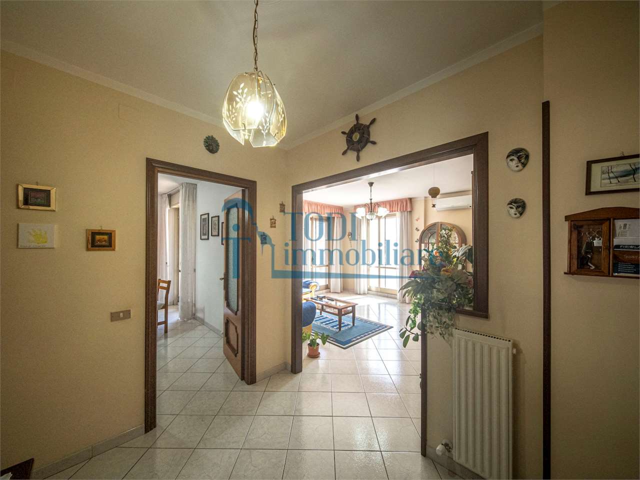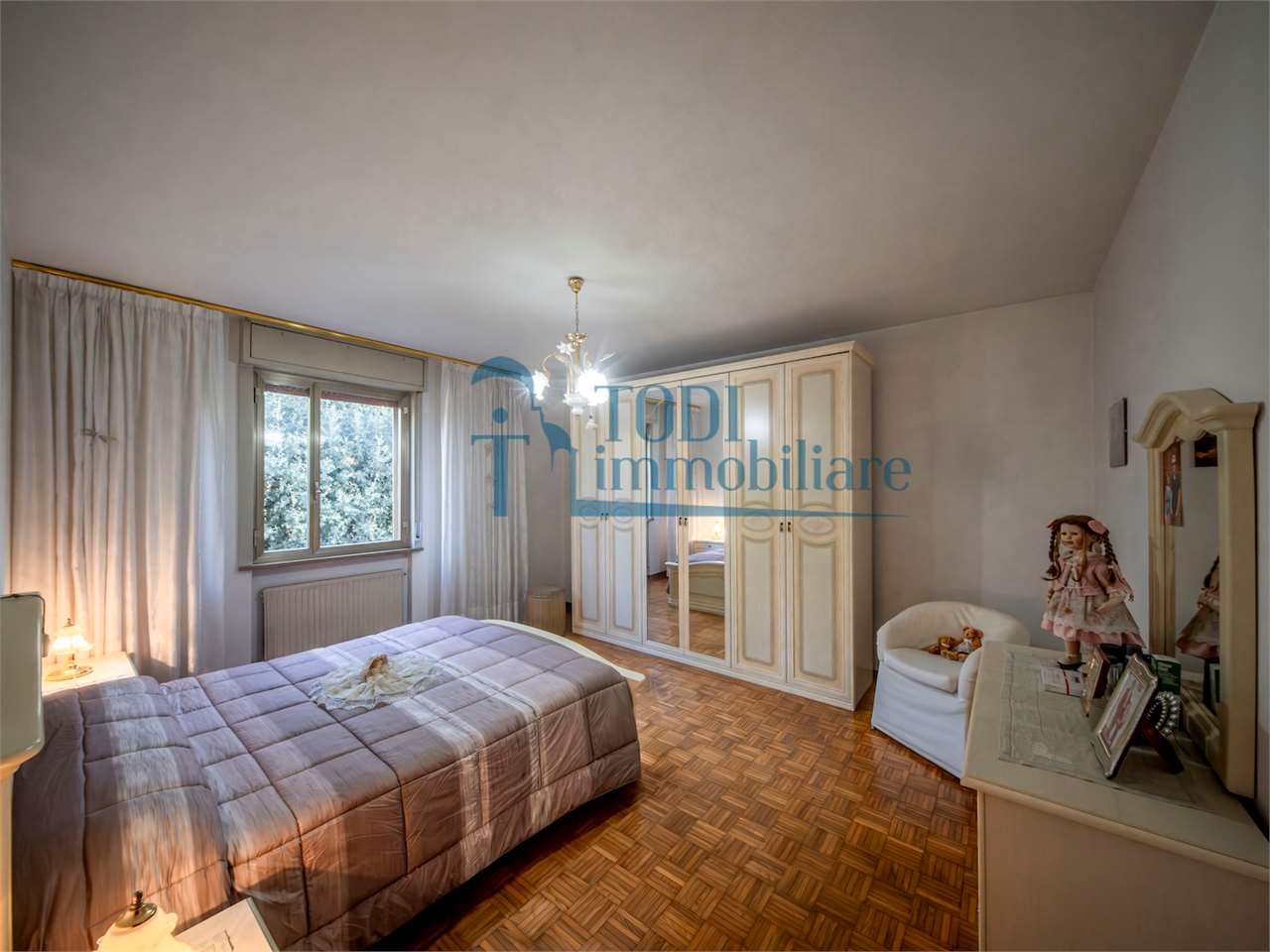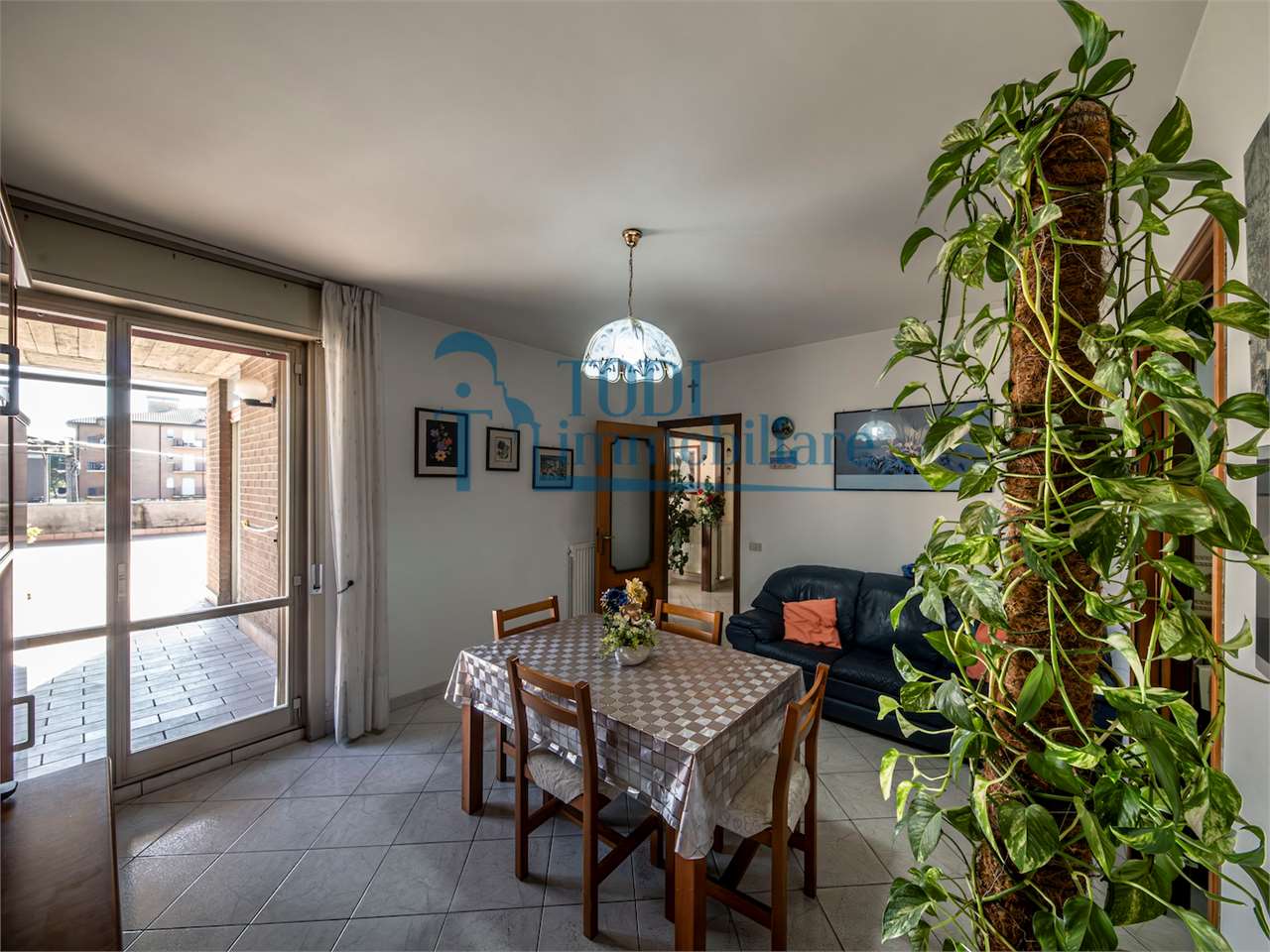 TODI – Pantalla, proponiamo in vendita un appartamento di circa 90 mq situato al piano Primo con due terrazze. \nL\'appartamento è composto da: Ingresso, cucinino, sala da pranzo, soggiorno e un bellissimo terrazzo di circa 40 mq, disimpegno, ripostiglio, due camere matrimoniali di cui con terrazza, bagno, cantina, garage. più spazzi condominiali interni ed esterni.\nLa casa ha ambienti luminosi, inoltre può contare anche su un’ottima esposizione, zona residenziale e vicinissima a tutti i servizi. \nNon perdere l\'occasione di visitare questo immobile. \nContattateci per ulteriori informazioni o per prendere un appuntamento.