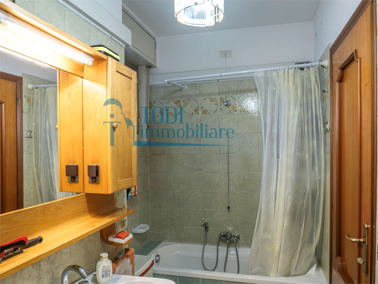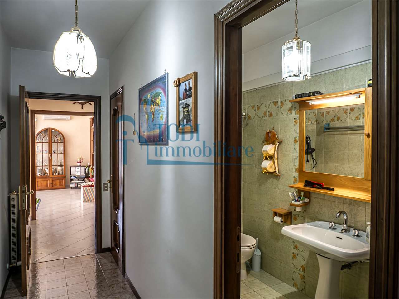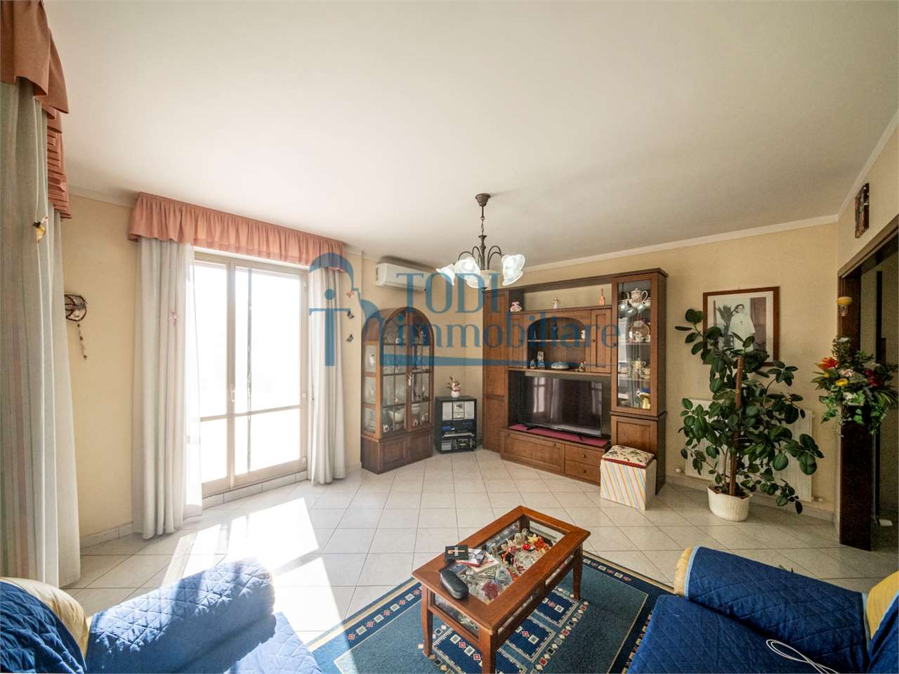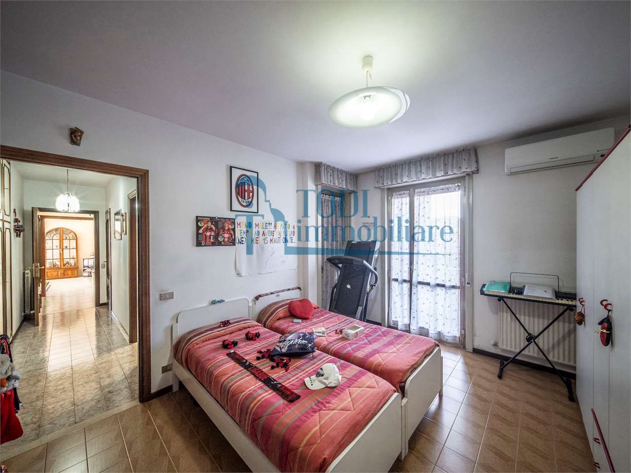 TODI – Pantalla, proponiamo in vendita un appartamento di circa 90 mq situato al piano Primo con due terrazze. \nL\'appartamento è composto da: Ingresso, cucinino, sala da pranzo, soggiorno e un bellissimo terrazzo di circa 40 mq, disimpegno, ripostiglio, due camere matrimoniali di cui con terrazza, bagno, cantina, garage. più spazzi condominiali interni ed esterni.\nLa casa ha ambienti luminosi, inoltre può contare anche su un’ottima esposizione, zona residenziale e vicinissima a tutti i servizi. \nNon perdere l\'occasione di visitare questo immobile. \nContattateci per ulteriori informazioni o per prendere un appuntamento.