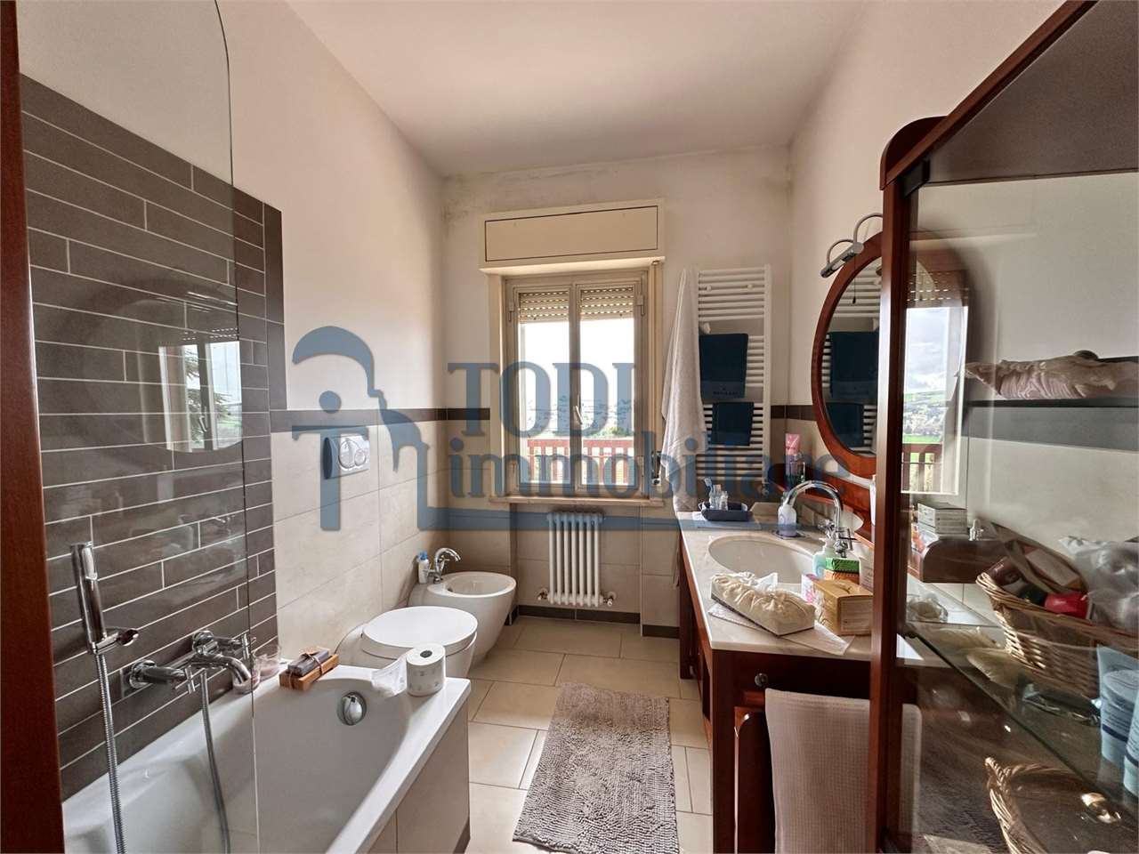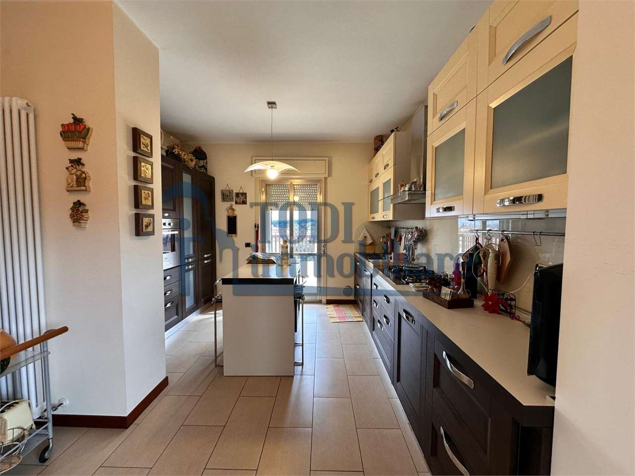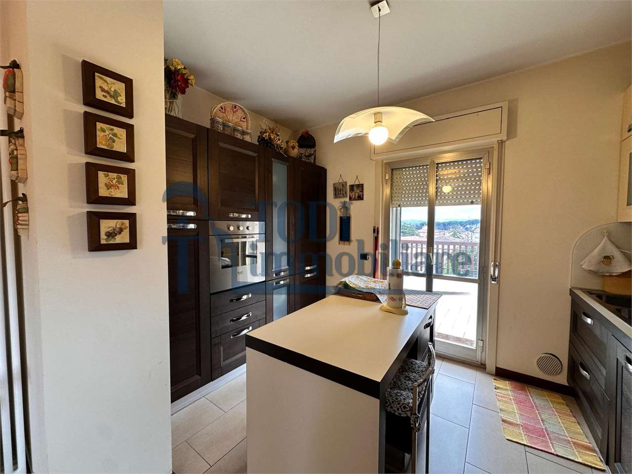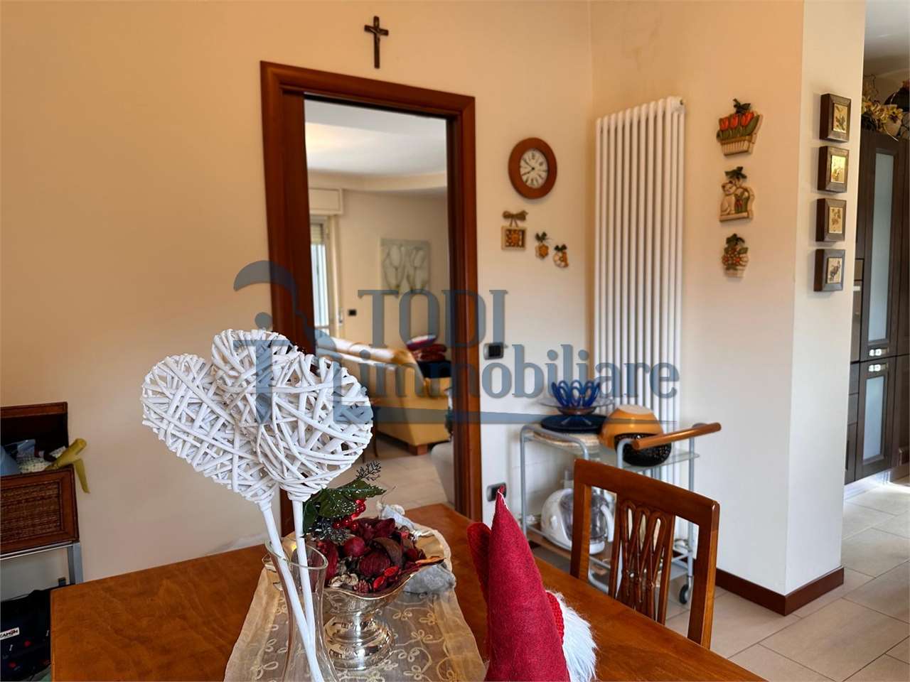 Splendido attico in vendita a pochi passi dal cuore pulsante di Marsciano! Questo ampio appartamento, situato in una posizione strategica vicino ai mezzi di trasporto e a tutti i servizi principali, offre un perfetto equilibrio tra comfort moderno e fascino classico. Completamente ristrutturato, l\'immobile presenta una suddivisione tipica degli anni \'80, con un comodo ingresso che conduce a un luminoso soggiorno con accesso diretto a un terrazzo perimetrale, ideale per momenti di relax all\'aperto.\n\nLa cucina abitabile è perfetta per chi ama cucinare e ricevere ospiti, mentre la stireria/studio offre uno spazio versatile per le tue esigenze. La zona notte comprende due camere da letto matrimoniali, una delle quali dotata di cabina armadio, e una camera singola. I due bagni finestrati garantiscono funzionalità e comfort. Il riscaldamento a pompa di calore e l\'orientamento sud assicurano un ambiente accogliente tutto l\'anno.\n\nCon un garage incluso e un ascensore per la tua comodità, questo attico rappresenta un\'opportunità imperdibile per chi cerca una casa spaziosa e ben collegata. Le aree verdi nelle vicinanze offrono spazi ideali per passeggiate rilassanti. Non perdere l\'occasione di vivere in un appartamento che combina eleganza e praticità nel cuore di Marsciano.\n\nNella stessa palazzina vendiamo anche un bellissimo appartamento di circa 120 mq situato al secondo piano e composto da: cucina abitabile con balcone, soggiorno con balcone, disimpegno, due camere matrimoniali con balcone, camera singola, due bagni e un garage.\nContattaci per ulteriori informazioni o per fissare un appuntamento!