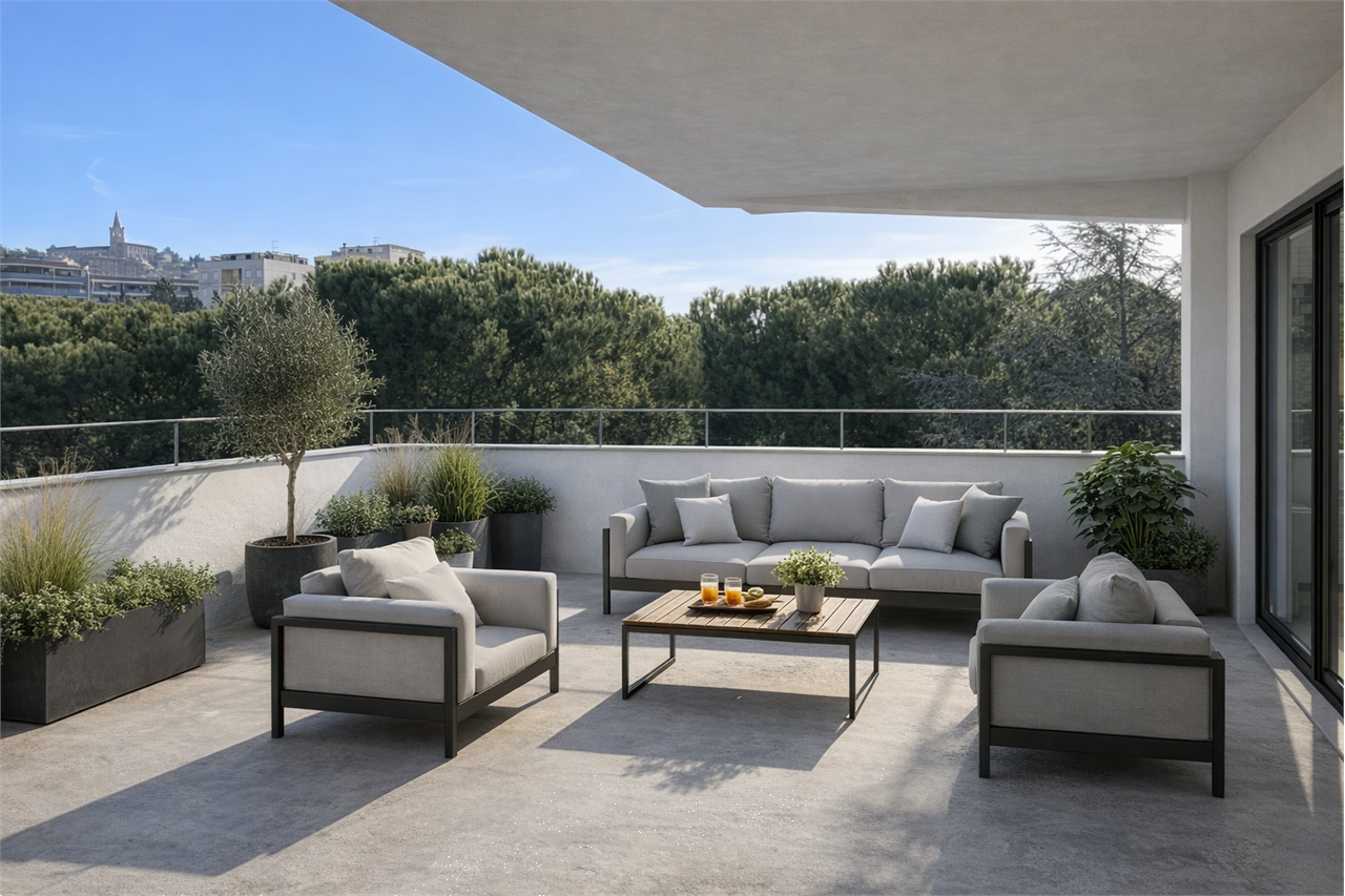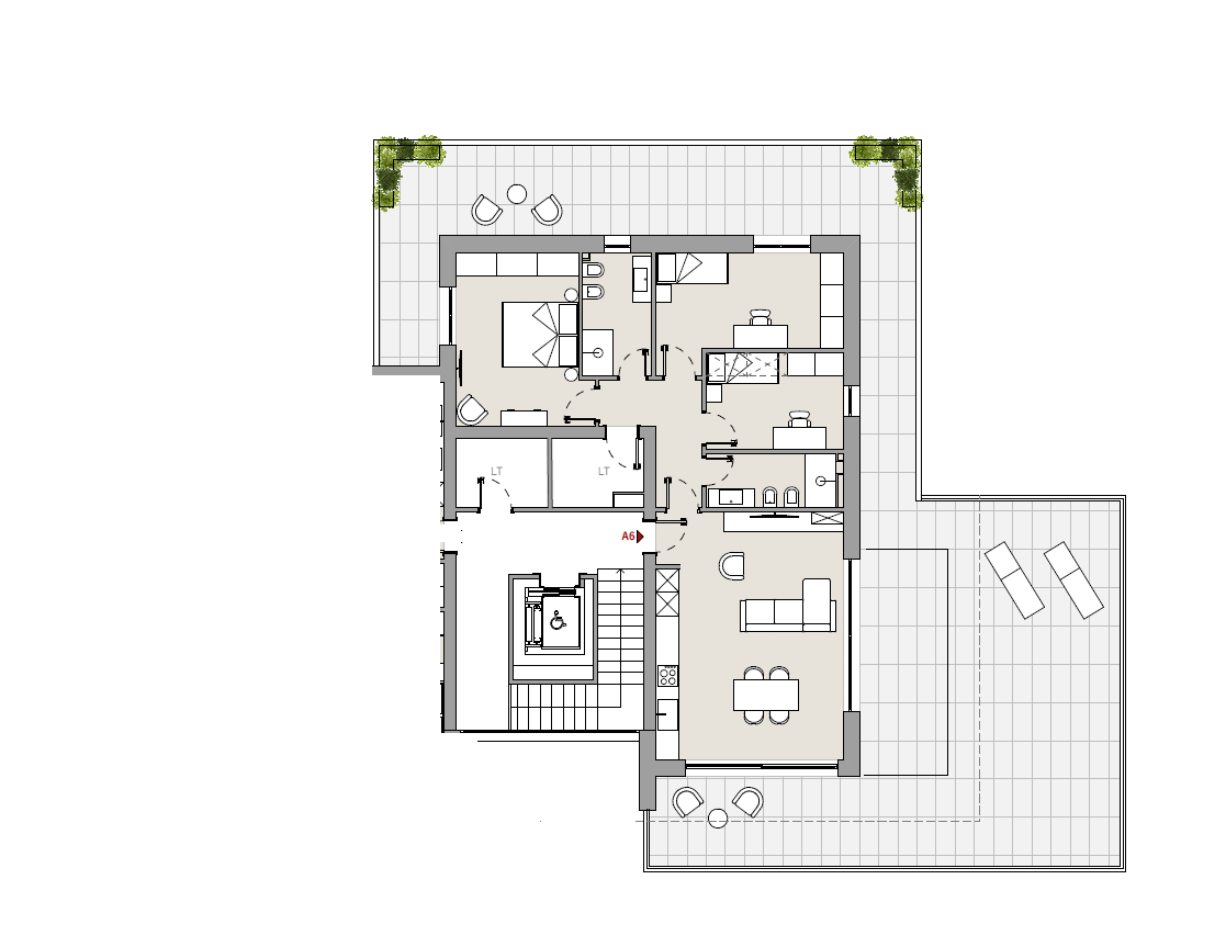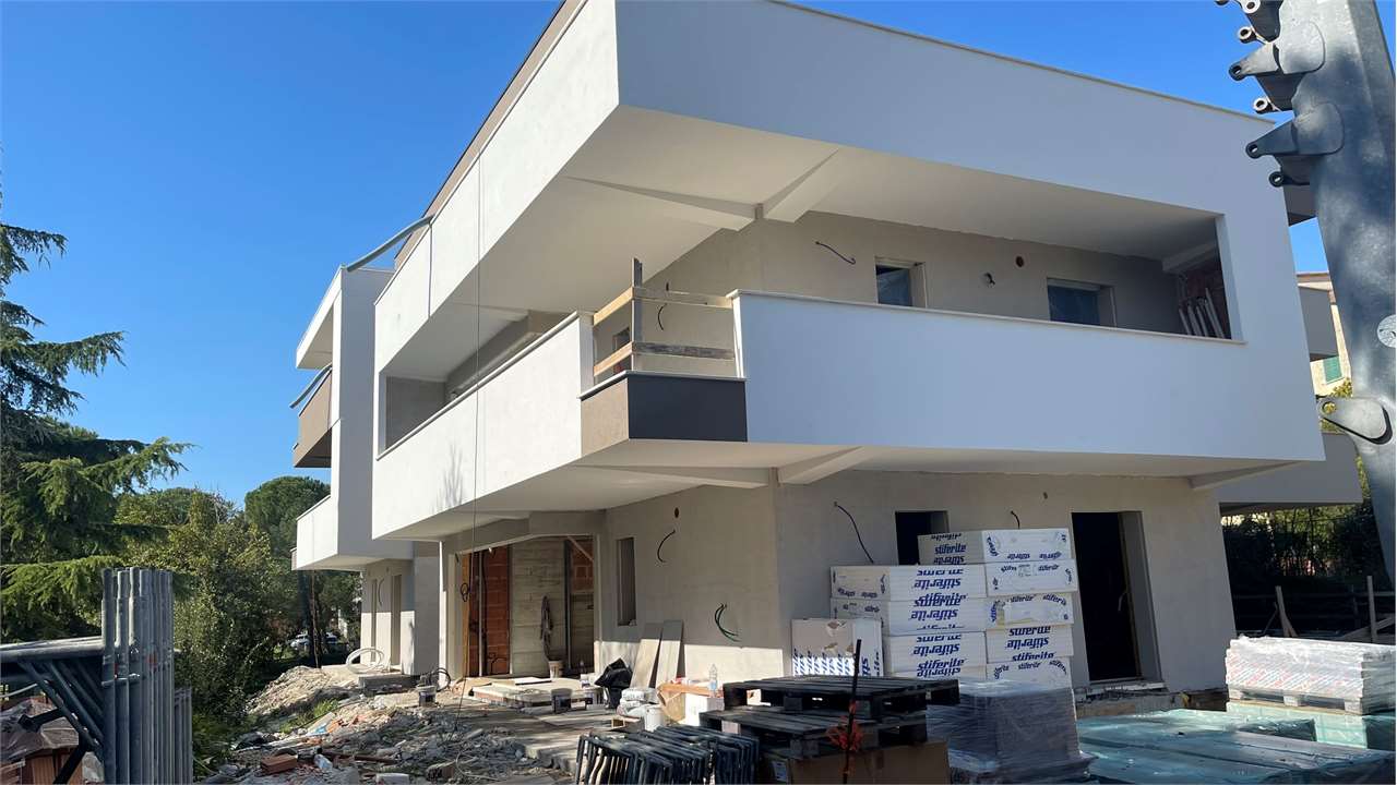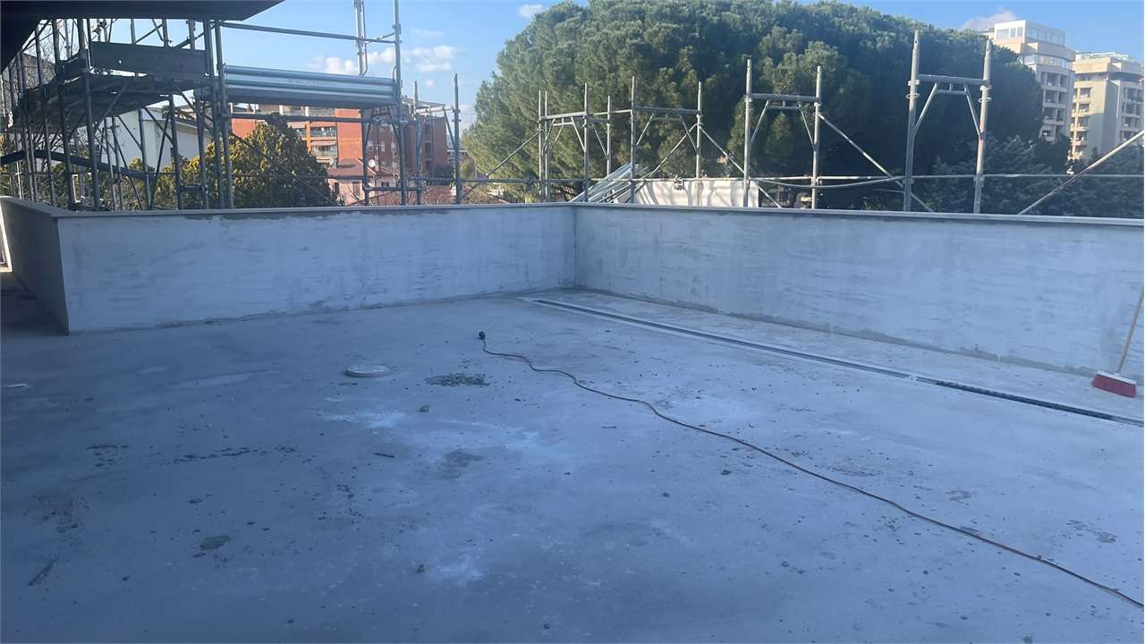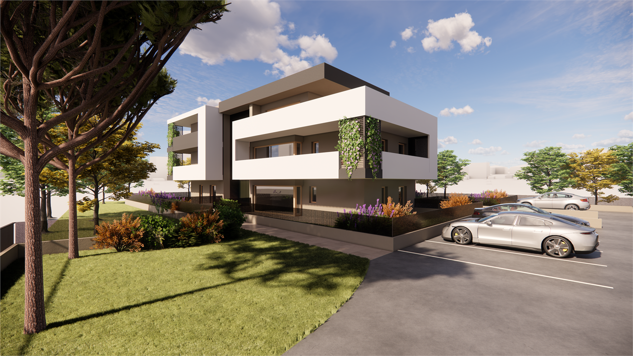 La palazzina costruita secondo le più moderne tecniche costruttive per il contenimento dei consumi energetici in linea con le più recenti normative che permetteranno al complesso di essere certificato nelle migliori delle classi energetiche: la \"A4\".\nVisita il sito dedicato https://residencegeometrie.it/\nIl progetto, comunque personalizzabile, sarà realizzato nel seguente modo:\n- 2 appartamenti al piano terra con giardini;\n- 2 appartamenti al piano primo con ampi terrazzi;\n- 2 Attici con ampie terrazze.\n\nIl complesso sarà dotato di:\n- fonti di energia rinnovabile per la produzione di energia elettrica che alimenterà la produzione autonoma di acqua calda sia sanitaria che per il riscaldamento\n- isolamento perimetrale a cappotto per prevenire fenomeni di condensa e muffe;\n- impianto di riscaldamento a PAVIMENTO coadiuvato dai\n- pannelli fotovoltaici per ciascuna unità immobiliare;\n- NON ci sarà più né gas né caldaia a metano ma pompa di calore;\n- In tutti i vani principali (camera da letto e soggiorni) verranno installati dei recuperatori di calore decentralizzati a flussi alternati che assicurano un ricambio d’aria controllato dell’aria interna mantenendo l’efficienza energetica, riducendo la dispersione di calore, migliorando la qualità\ndell’aria e contribuendo in modo significativo al risparmio energetico e al mantenimento di un ambiente interno confortevole.;\n- tapparelle motorizzate; infissi in alluminio SCHUCO\n- garage e parcheggi privati;\nNello specifico attico con soggiorno con angolo cottura, tre camere, due bagni e terrazzo di mq 110 che circonda tutto l\'attico