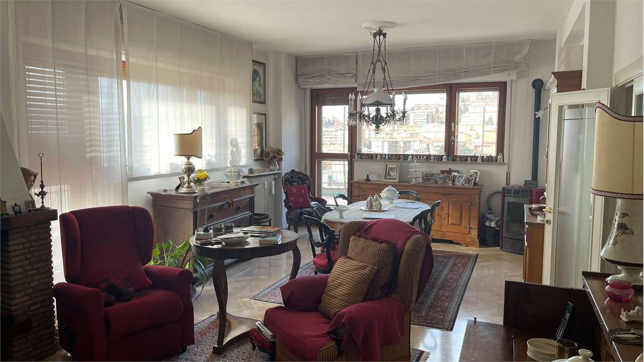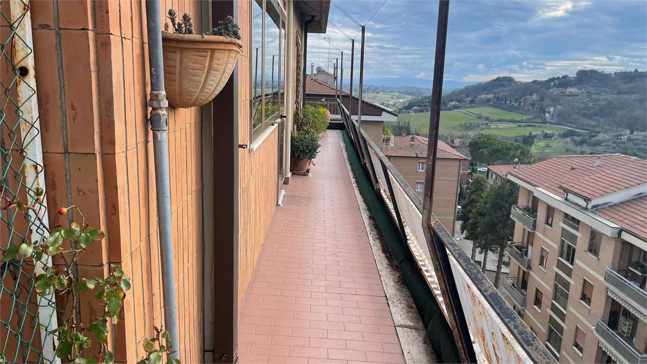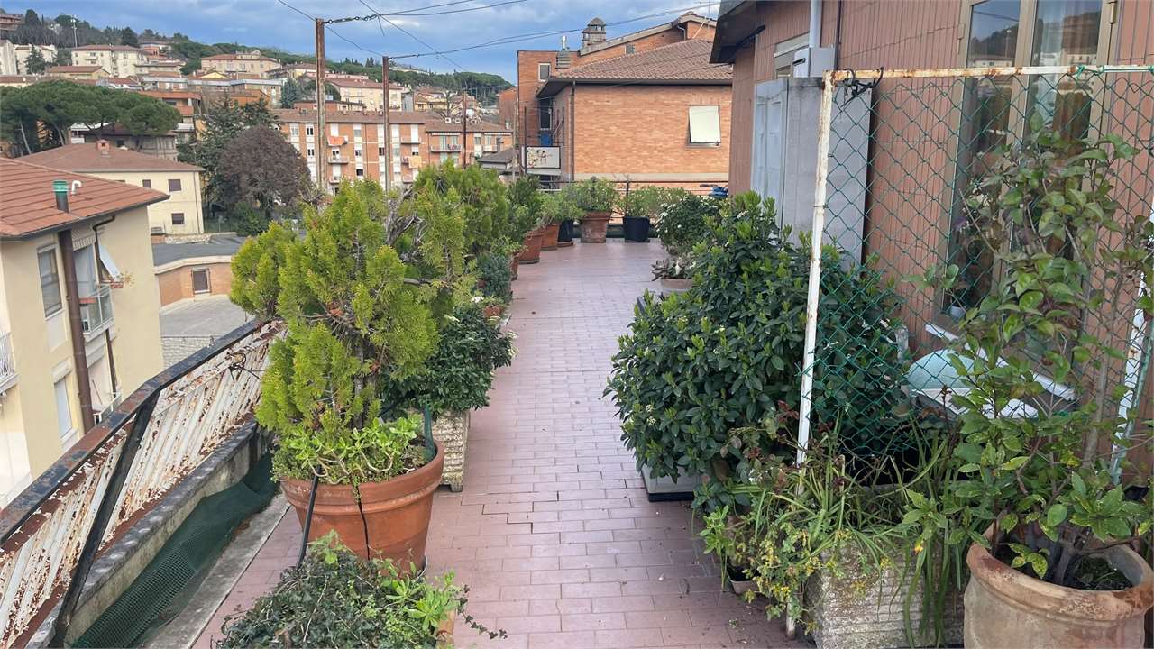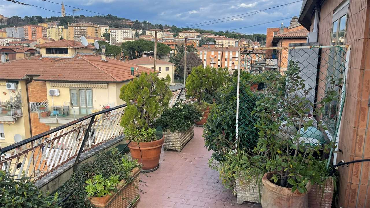 Presentiamo questo attico a Perugia in una posizione semicentrale e privilegiata perché vicina a tutti i principali servizi. Con una vista mozzafiato sulla città e una serie di caratteristiche impeccabili, questa proprietà è un\'opportunità da non perdere.\nCaratteristiche Principali:\n• Ingresso Accogliente: Ti accoglie un ingresso spazioso e luminoso, offrendo un benvenuto caldo e invitante a te e ai tuoi ospiti.\n• Ampio Soggiorno: Un luminoso e generoso soggiorno ti invita a rilassarti e goderti momenti di convivialità. Lo spazio è perfetto per intrattenere amici e familiari o semplicemente per rilassarti dopo una lunga giornata.\n• Tre Camere da Letto: Le tre camere da letto offrono un\'oasi di tranquillità e comfort, ben illuminate, sono ideali per riposare e rigenerarsi.\n• Studio o Quarta Camera: Un ambiente flessibile che può essere utilizzato come studio per il lavoro da casa o come ulteriore camera per ospiti.\n• Due Bagni: Con due bagni ben attrezzati, la comodità e la funzionalità sono garantite per tutta la famiglia.\n• Terrazzo Abitabile Panoramico: Goditi la vista mozzafiato dalla tua terrazza privata che circonda l\'attico. Un luogo perfetto per colazioni al sole, cene romantiche o semplicemente per rilassarti ammirando il panorama del Centro Storico di Perugia.\n• Garage: Un comodo garage garantisce un parcheggio sicuro e protetto per la tua auto, offrendoti la tranquillità che meriti.\nPosizione Strategica: Questo attico si trova in una posizione privilegiata nel cuore di Perugia, vicino a tutti i principali servizi. Ristoranti, negozi, scuole e trasporti pubblici sono facilmente accessibili, garantendoti una vita comoda e senza stress.\nNon lasciarti sfuggire questa straordinaria opportunità di possedere un attico nel cuore di Perugia. Contattaci oggi stesso per prenotare una visita e scoprire di persona tutto ciò che questa meravigliosa proprietà ha da offrire!