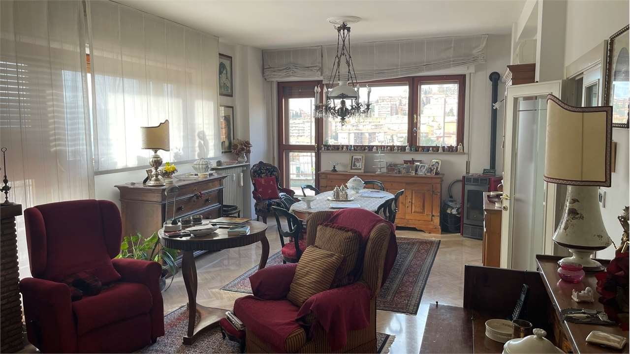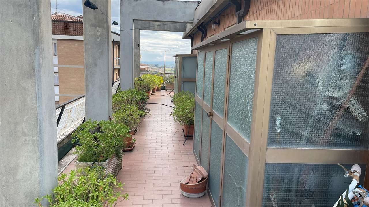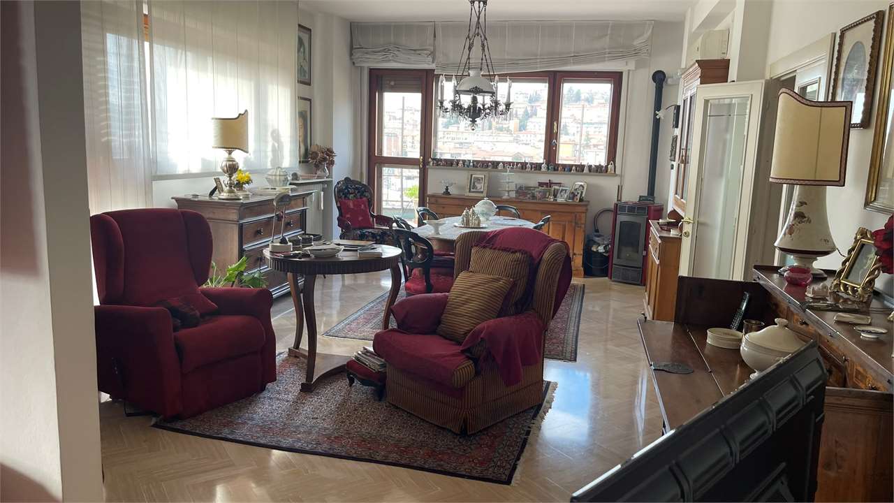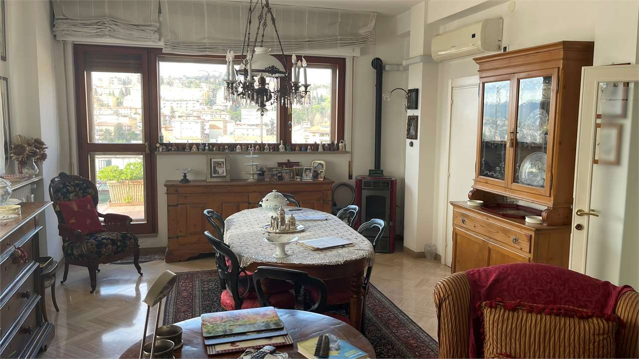 Presentiamo questo attico a Perugia in una posizione semicentrale e privilegiata perché vicina a tutti i principali servizi. Con una vista mozzafiato sulla città e una serie di caratteristiche impeccabili, questa proprietà è un\'opportunità da non perdere.\nCaratteristiche Principali:\n• Ingresso Accogliente: Ti accoglie un ingresso spazioso e luminoso, offrendo un benvenuto caldo e invitante a te e ai tuoi ospiti.\n• Ampio Soggiorno: Un luminoso e generoso soggiorno ti invita a rilassarti e goderti momenti di convivialità. Lo spazio è perfetto per intrattenere amici e familiari o semplicemente per rilassarti dopo una lunga giornata.\n• Tre Camere da Letto: Le tre camere da letto offrono un\'oasi di tranquillità e comfort, ben illuminate, sono ideali per riposare e rigenerarsi.\n• Studio o Quarta Camera: Un ambiente flessibile che può essere utilizzato come studio per il lavoro da casa o come ulteriore camera per ospiti.\n• Due Bagni: Con due bagni ben attrezzati, la comodità e la funzionalità sono garantite per tutta la famiglia.\n• Terrazzo Abitabile Panoramico: Goditi la vista mozzafiato dalla tua terrazza privata che circonda l\'attico. Un luogo perfetto per colazioni al sole, cene romantiche o semplicemente per rilassarti ammirando il panorama del Centro Storico di Perugia.\n• Garage: Un comodo garage garantisce un parcheggio sicuro e protetto per la tua auto, offrendoti la tranquillità che meriti.\nPosizione Strategica: Questo attico si trova in una posizione privilegiata nel cuore di Perugia, vicino a tutti i principali servizi. Ristoranti, negozi, scuole e trasporti pubblici sono facilmente accessibili, garantendoti una vita comoda e senza stress.\nNon lasciarti sfuggire questa straordinaria opportunità di possedere un attico nel cuore di Perugia. Contattaci oggi stesso per prenotare una visita e scoprire di persona tutto ciò che questa meravigliosa proprietà ha da offrire!