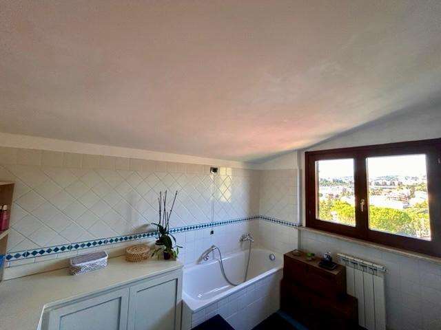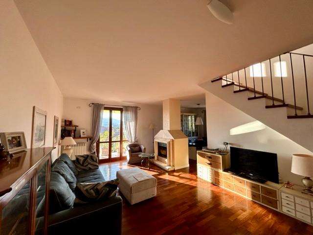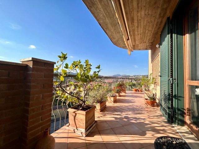 In posizione dominante e panoramica vendiamo luminoso appartamento su 2 livelli di 120 mq ca. all\'ultimo piano di graziosa palazzina a mattoncino di recente costruzione: ingresso, doppio salone con accesso ad ampio terrazzo panoramico, cucina abitabile con gradevole terrazzo. Attraverso una comoda scala interna si sale al piano superiore composto da 2 ampie camere da letto di cui una con bagno en suite e terrazzo ed il secondo bagno. Possibilità di creare la terza camera. Completa la proprietà ampio garage al piano seminterrato. Da vedere!\nPer maggiori informazioni e per visitare l\'immobile si prega di contattare il seguente numero: 07530040.