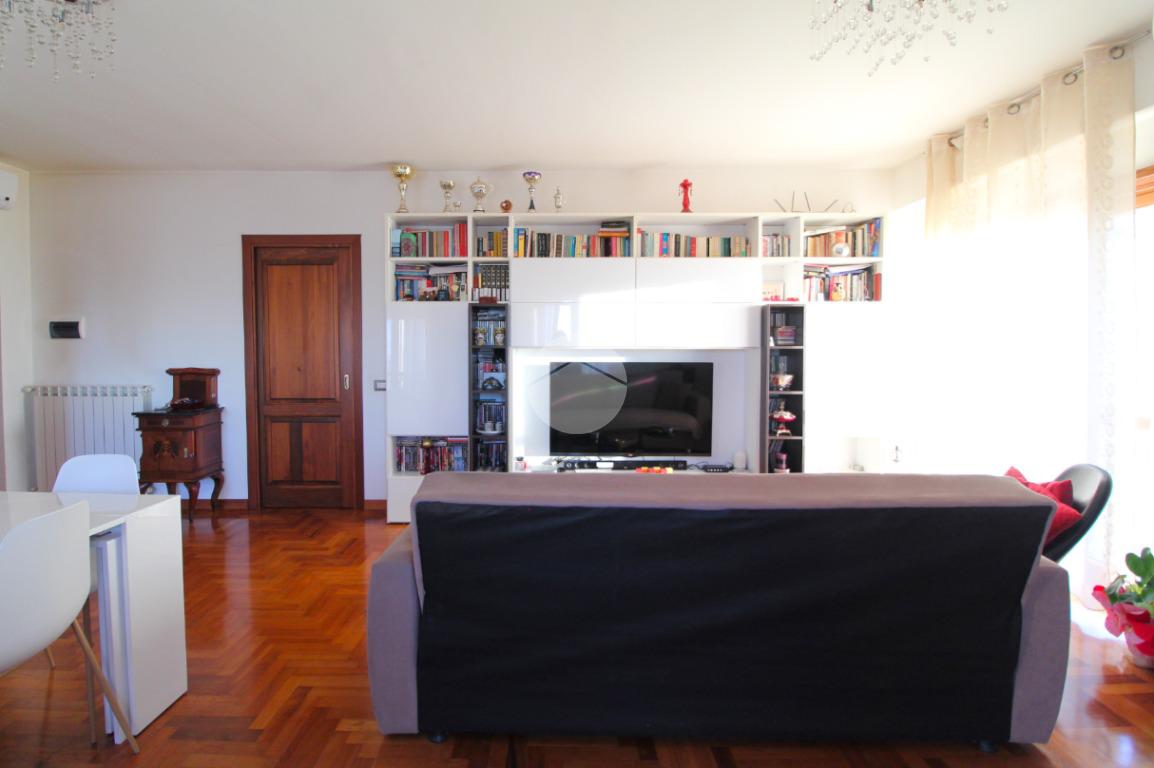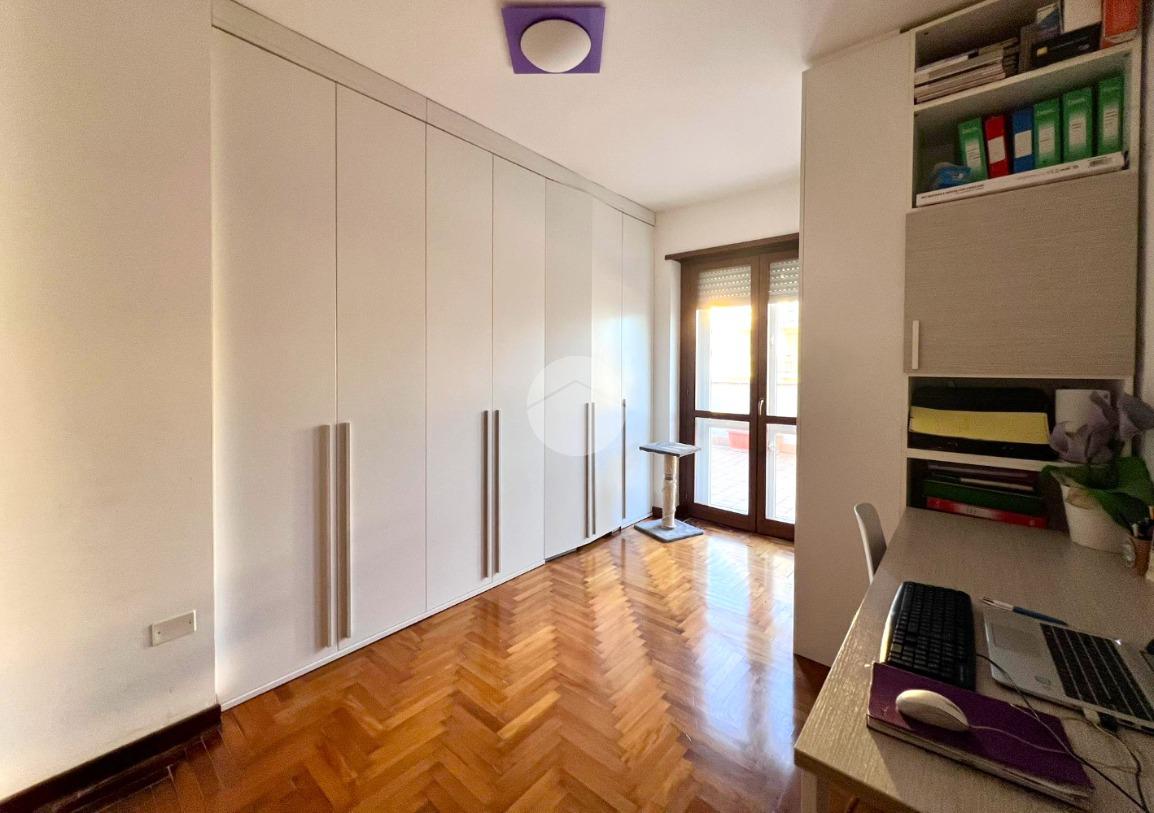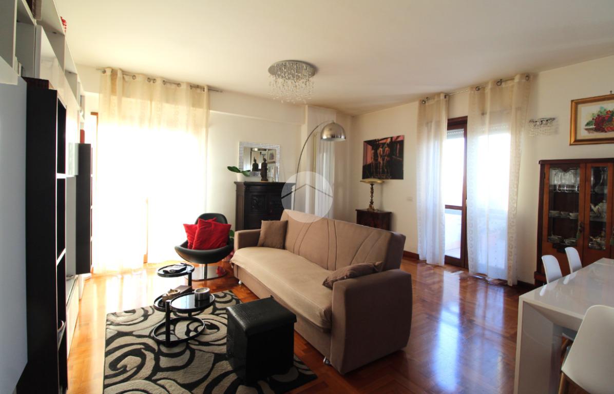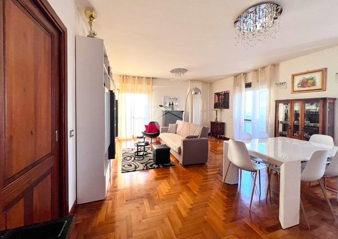 La cucina separata aggiunge un tocco di funzionalità all'ambiente, mentre la zona notte, accessibile attraverso un disimpegno, comprende due camere da letto, un bagno con finestra e un secondo terrazzo di 40 metri quadrati. La proprietà si completa con un comodo posto auto coperto, che non solo garantisce sicurezza, ma contribuisce anche al comfort abitativo e semplifica l'utilizzo quotidiano dell'automobile.