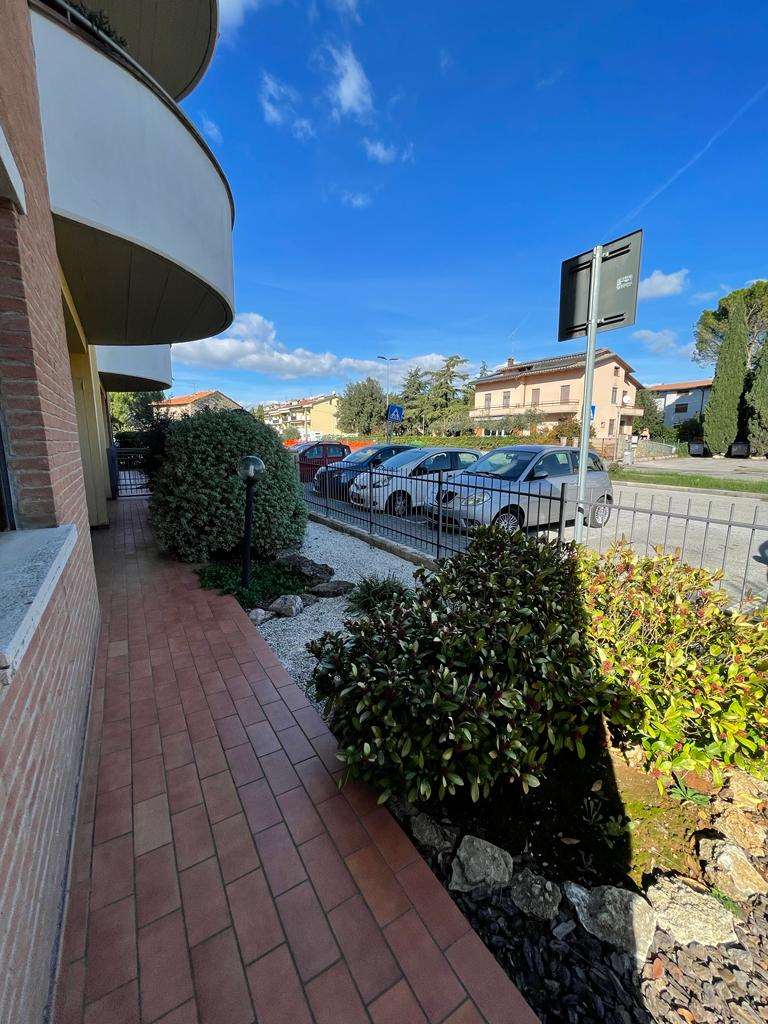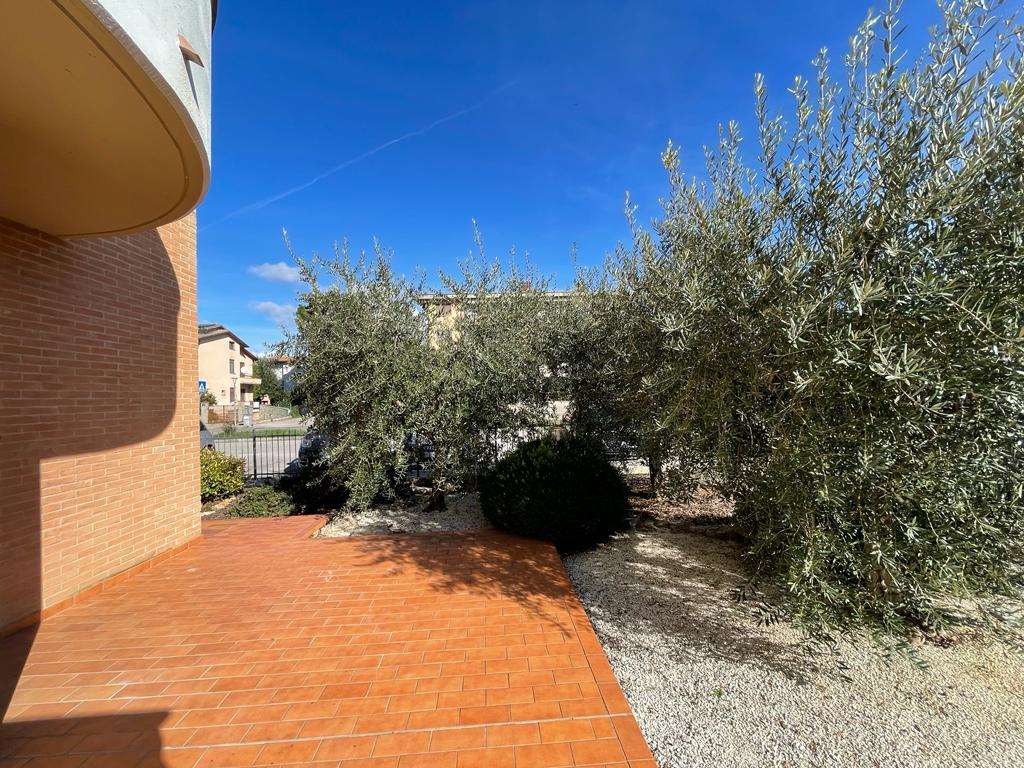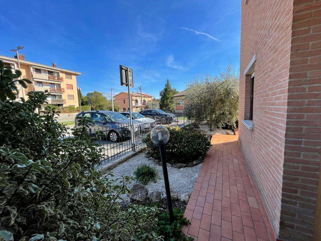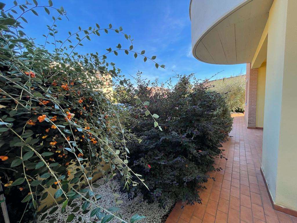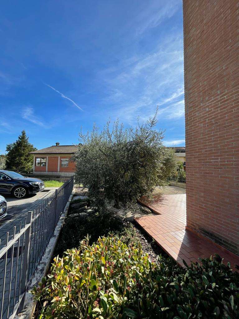 SANTA SABINA: in contesto residenziale e tranquillo, immerso nel verde ma ben servito, vendiamo al piano terra di una piccola palazzina di recente costruzione appartamento ben rifinito composto da: ingresso, soggiorno con ampia vetrata con accesso esterno, angolo cottura, camera matrimoniale, bagno, ampio lastrico con portico e giardino esclusivo di 70 mq. Termoautonomo. Attualmente adibito a studio. Per maggiori informazioni 075/30040.