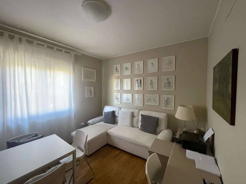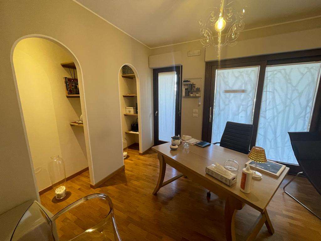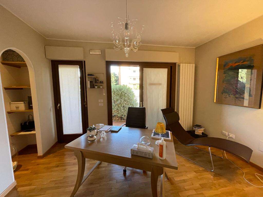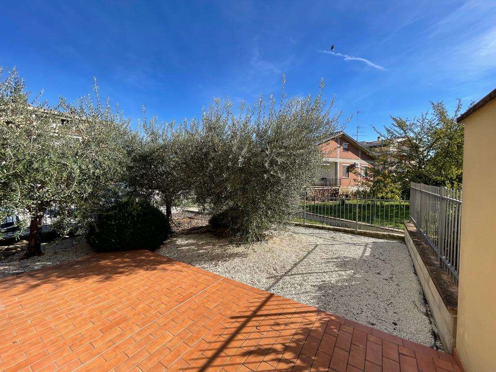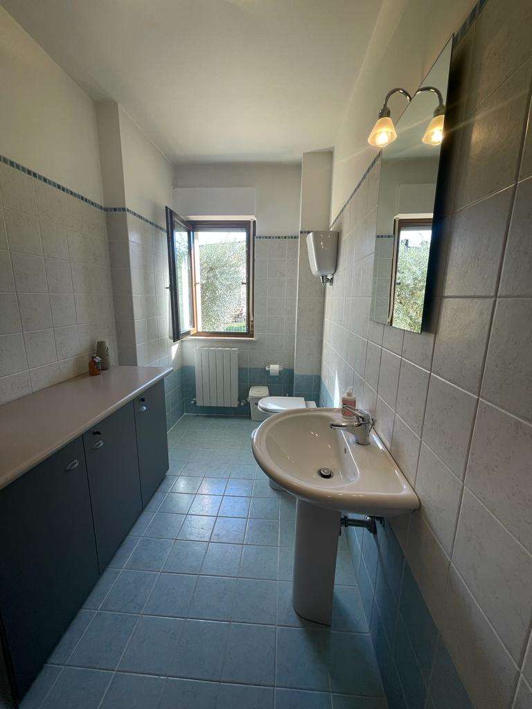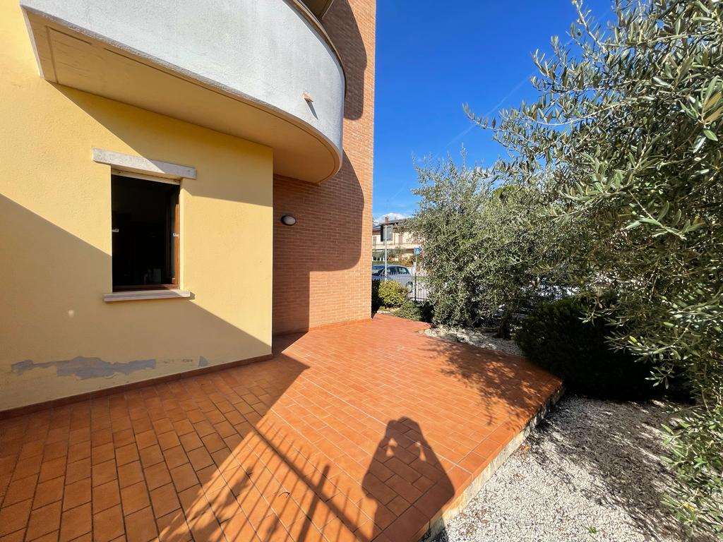 SANTA SABINA: in contesto residenziale e tranquillo, immerso nel verde ma ben servito, vendiamo al piano terra di una piccola palazzina di recente costruzione appartamento ben rifinito composto da: ingresso, soggiorno con ampia vetrata con accesso esterno, angolo cottura, camera matrimoniale, bagno, ampio lastrico con portico e giardino esclusivo di 70 mq. Termoautonomo. Attualmente adibito a studio. Per maggiori informazioni 075/30040.