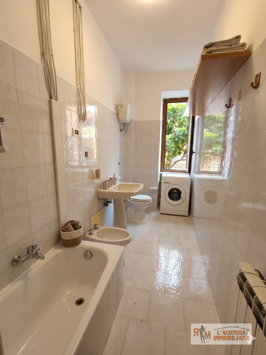Il bagno finestrato dispone di vasca da bagno per momenti di relax quotidiano. L’appartamento gode inoltre dell’uso esclusivo di una cantina posta al piano seminterrato dello stabile.