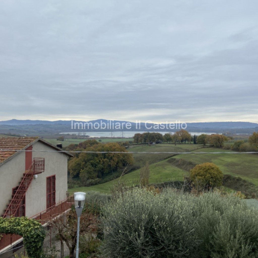 Ci139 - TYPE: Detached house of about 140 square meters surrounded by a beautiful olive grove overlooking Lake Chiusi and a few kilometers from Castiglione del Lago. Castiglione del Lago is a village on the shores of Lake Trasimeno, considered one of the most beautiful villages in Italy , located on the border with Tuscany and the provinces of Arezzo and Siena, a few kilometers from the Perugia-Bettolle motorway link. It is about 40 km from Perugia, 70 km from Siena, 120 km from Florence and 180 km from Rome. DESCRIPTION: On the ground floor there is a large living room with fireplace, kitchenette, bedroom, bathroom and boiler room. Small underground cellar. On the first floor, 2 bedrooms, 1 single bedroom, bathroom and terrace overlooking the lake. The property has a detached annex used as a rustic with built-in kitchen and fireplace with wooden roof. A fenced garden surrounds the house and a few meters away we find an olive grove of about 30 plants with a wooden tool shed. The house is sold fully furnished.