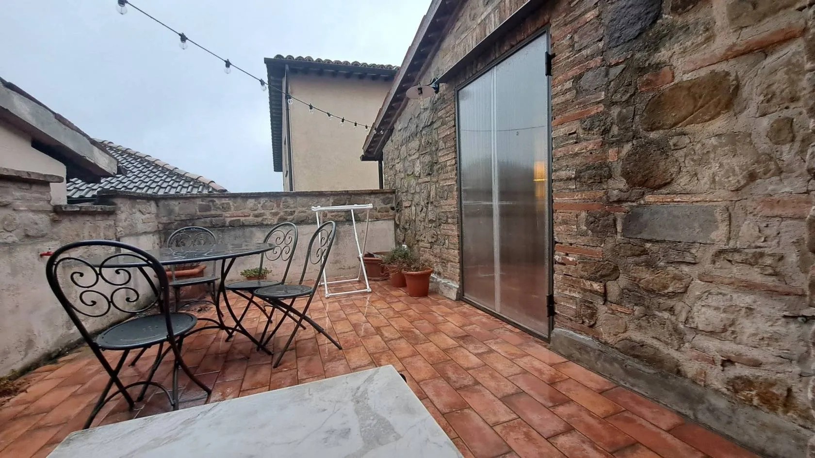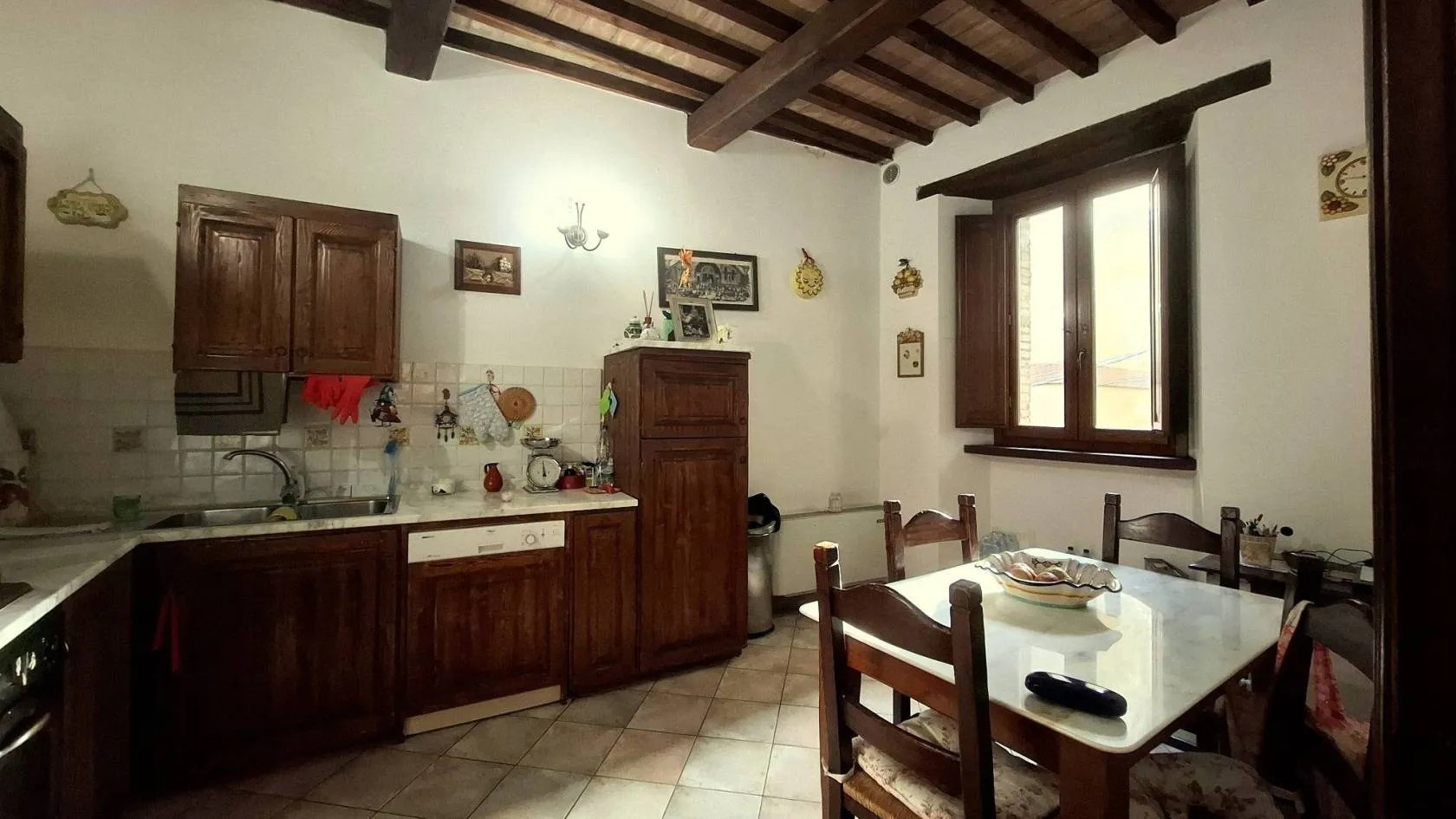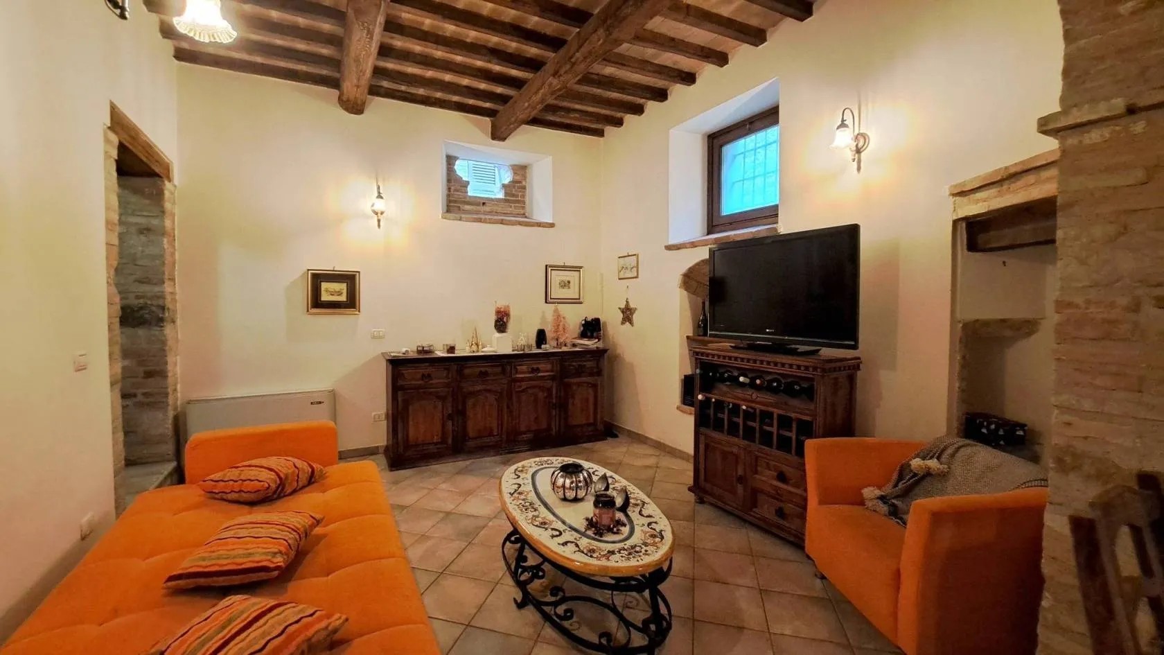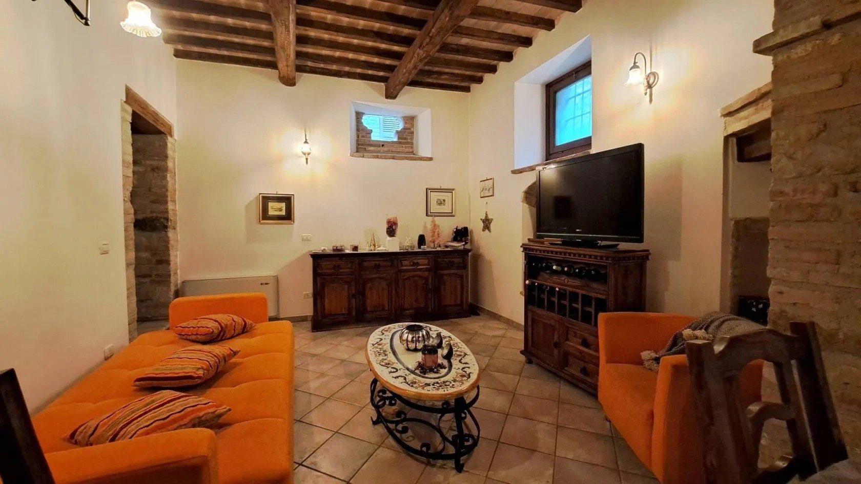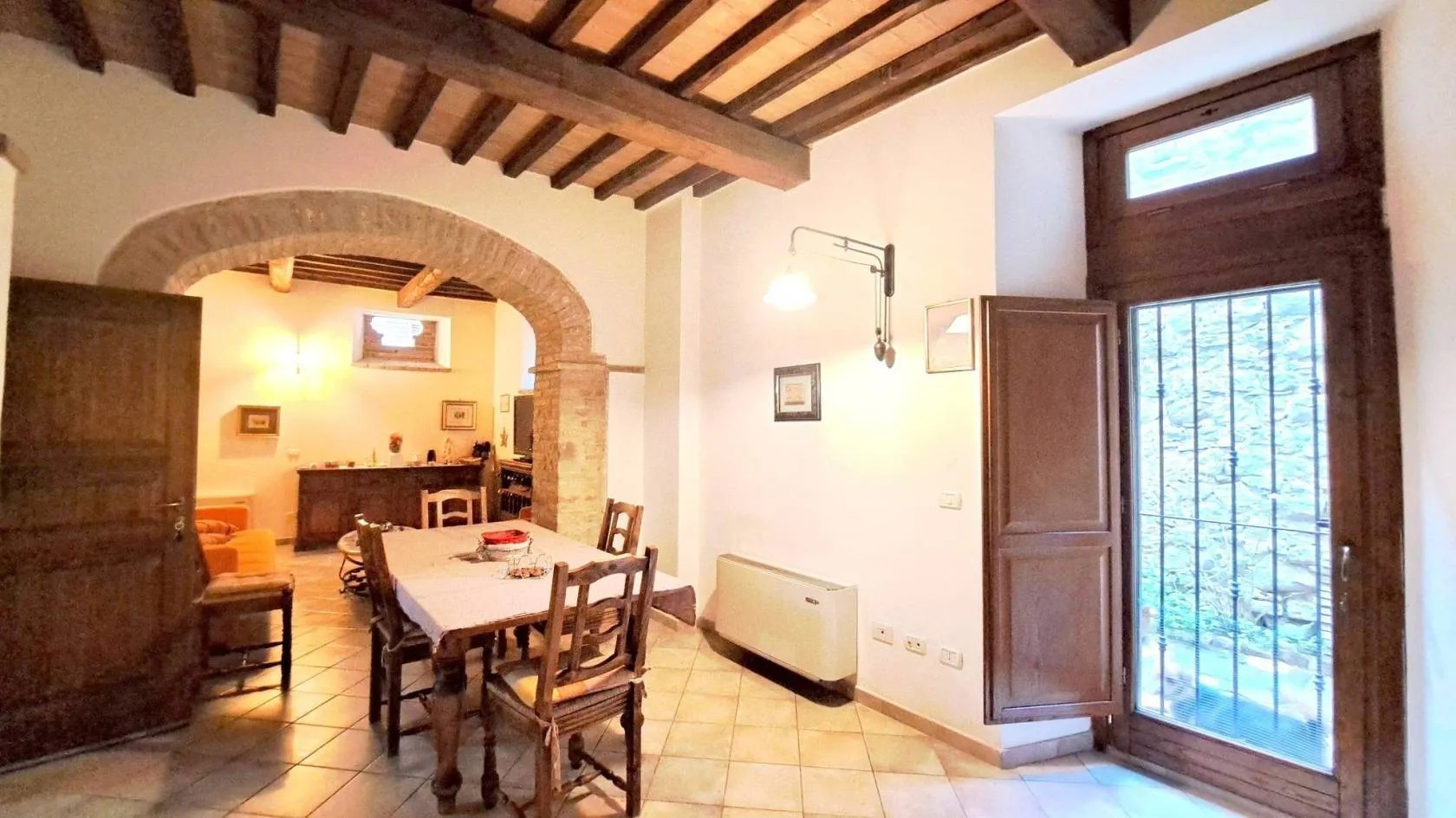 L'edificio in pietra, in ottimo stato, è suddiviso in tre unità abitative, ciascuna con ingresso indipendente tramite una scala comune. Ogni unità è dotata di un accogliente camino, perfetto per le serate invernali. Gli interni vantano soffitti con travi a vista e pianelle, infissi e porte in legno che esaltano il carattere rustico della casa. Il bagno è elegantemente rivestito con ceramiche di qualità.