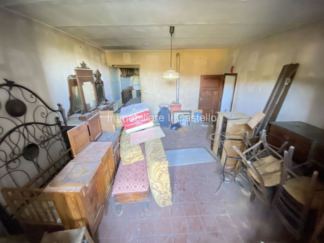 Attraverso l'ingresso nella strada del borgo entriamo al primo piano dove si sviluppa l'abitazione di 150 mq. composta da sei vani, servizio, terrazzino e ampia terrazza con vista sul Lago Trasimeno.