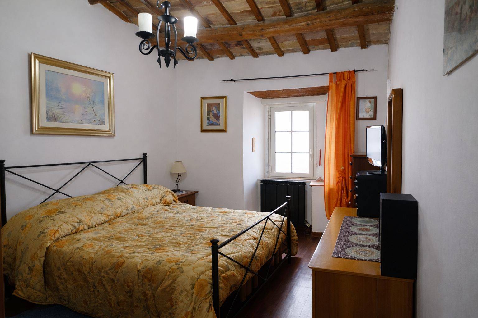 La casa si sviluppa su due livelli per una superficie calpestabile di circa 80 mq e conserva gli elementi tipici dell’architettura umbra, come il tetto in pianelle con travi in legno a vista e la possente muratura in pietra. Al piano d’ingresso troviamo un accogliente soggiorno ed una cucina abitabile arricchita dal tipico caminetto e da una cucina completa realizzata interamente in muratura, perfettamente integrata nello stile tradizionale dell’abitazione. Il piano superiore ospita la zona notte, particolarmente scenica, composta da due spaziose camere matrimoniali e da un bagno moderno con doccia e finestra.