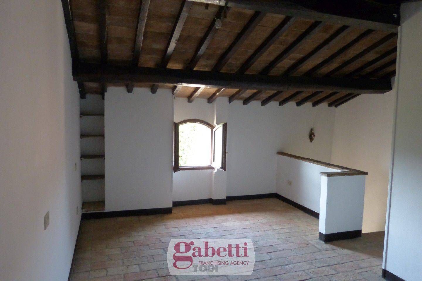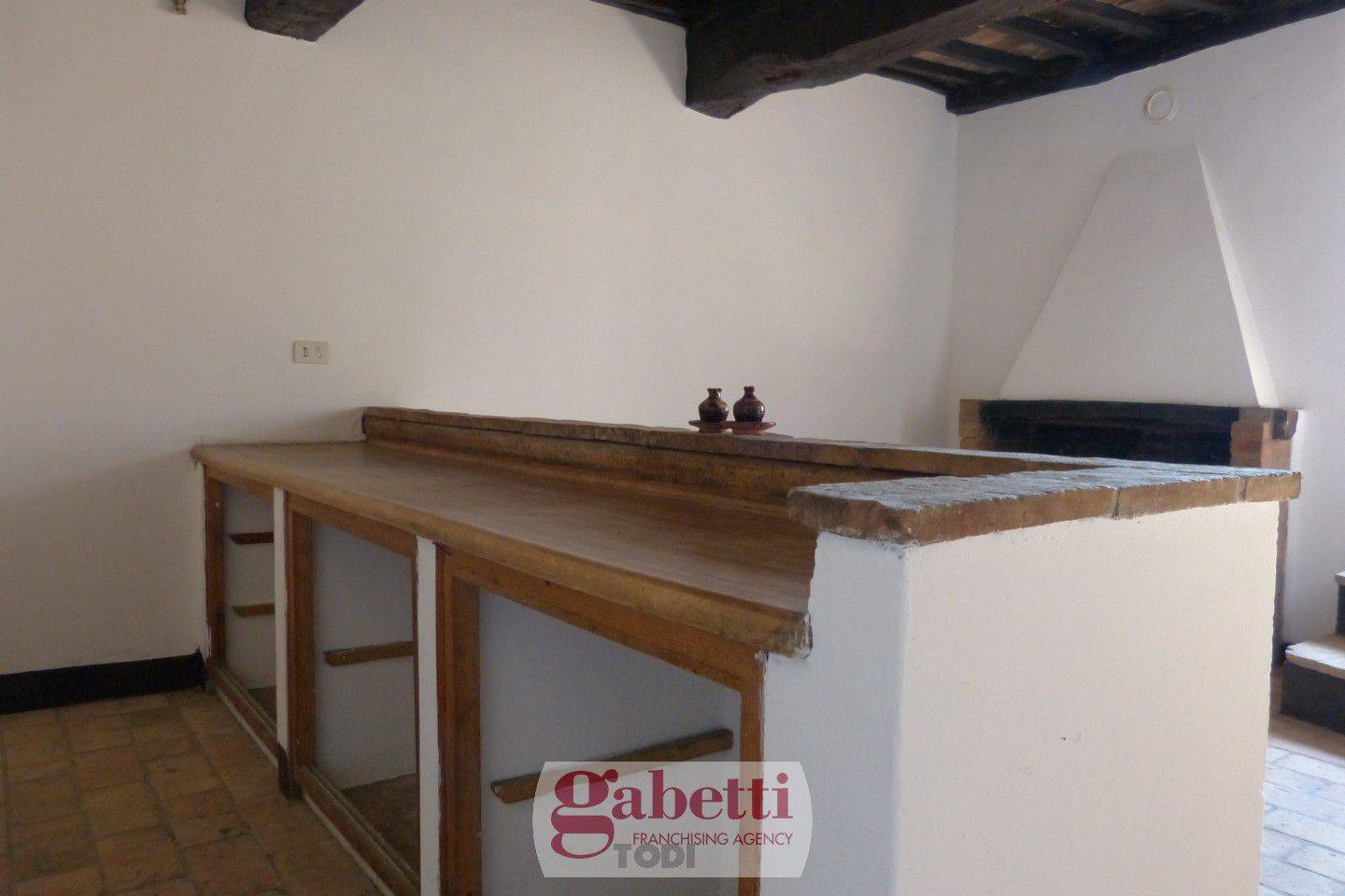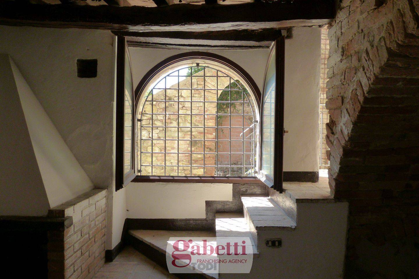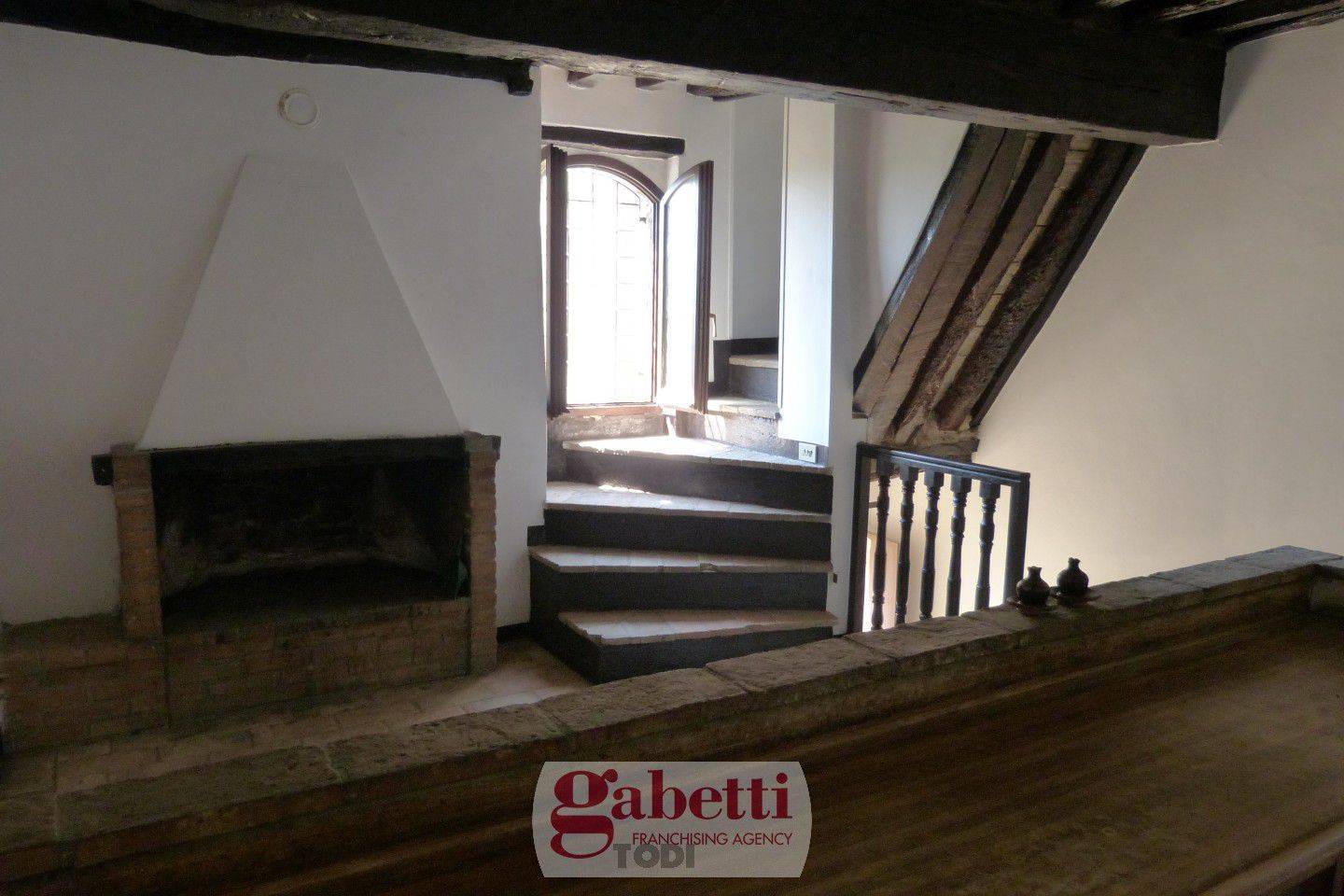 In posizione tranquilla e facilmente raggiungibile, situato nella più antica frazione di Todi che è stata completamente ristrutturato nei sui vicoli, utenze e fognatura, la proprietà presenta gli elementi tipici dell'architettura umbra: pavimento originati in cotto, tetto e solai intermedi con pianelle e travi antiche in legno. Si accede alla proprietà tramite pochi scalini esterni, al piano terra troviamo la taverna con caminetto, al primo piano troviamo la cucina abitabile con caminetto e al secondo piano abbiamo la camera dalla quale si può ammirare il panorama sulla vallata ed un bagno.