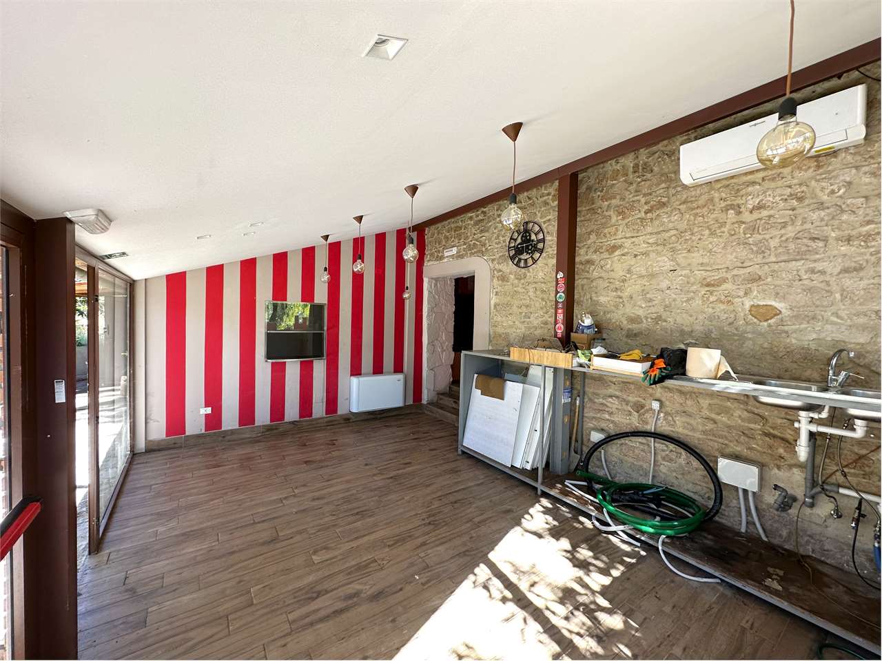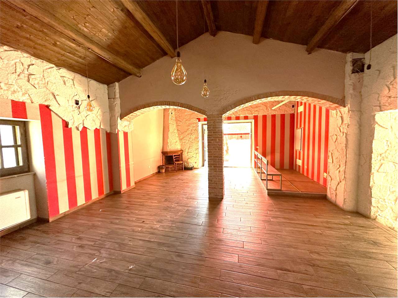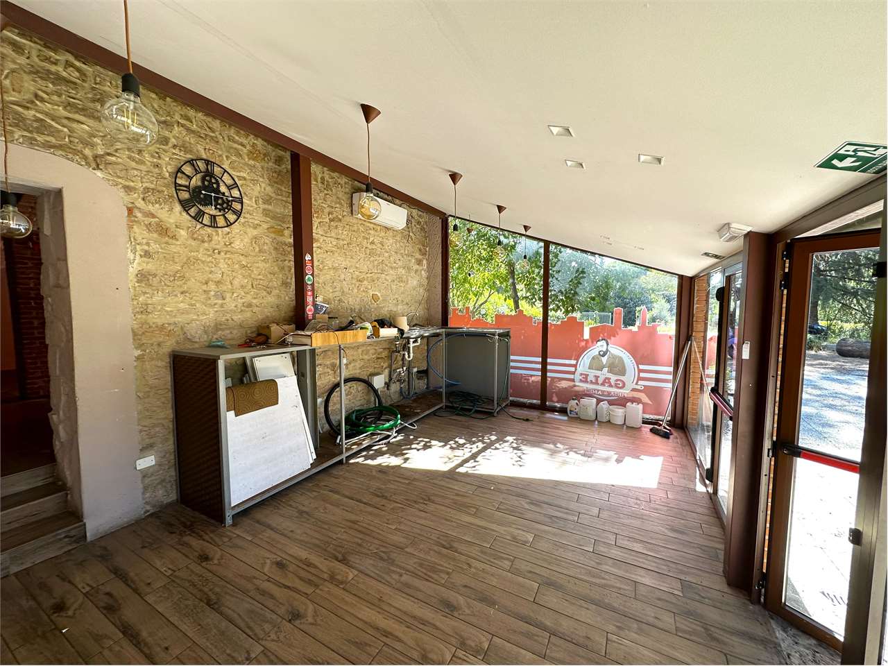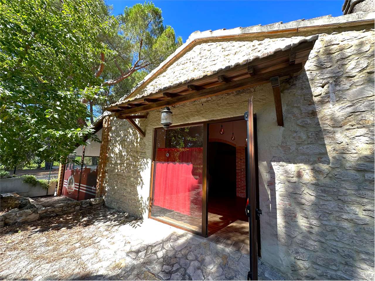VENDIAMO NEGOZIO/RISTORANTE CON GRANDE VISIBILITA\' A POCHI METRI DALLA ROTONDA DI FERRO DI CAVALLO: Nelle immediate vicinanze della E- 45 svincolo Ferro di Cavallo, proponiamo in vendita immobile commerciale con ampio parcheggio privato, spazio esterno con alberi ad alto fusto e piattaforma/gazebo per la collocazione di tavoli ed arredi per il dehor.\nIl locale di circa mq 170, già adibito a ristorante/pizzeria, è attualmente diviso in due sale, cucina, dispensa, due bagni per i clienti ed un bagno per il personale.\nL\'area esterna di proprietà ha una superficie di circa 1600 mq.\nLa grande visibilità dovuta al lungo fronte strada rende l\'immobile interessante per qualsiasi attività richieda una eccezionale visibilità.\nCod. Ann. R/008\nPrezzo Richiesto 420.000 euro.