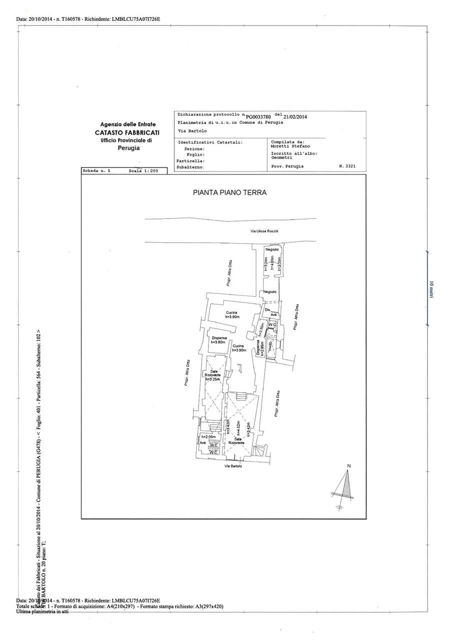 VIA BARTOLO: Nel centro città, in zona ad elevato transito automobilistico e pedonale, vendiamo immobile di ampia metratura distribuito su più livelli, precedentemente adibito a ristorante.\nIl locale presenta due ampie sale con caratteristiche volte in pietra di epoca medioevale, una grande cucina e due dispense destinabili anche a sale ristorante per cene riservate.\nSI VALUTANO ANCHE OFFERTE DI LOCAZIONE.\nCod. V/589