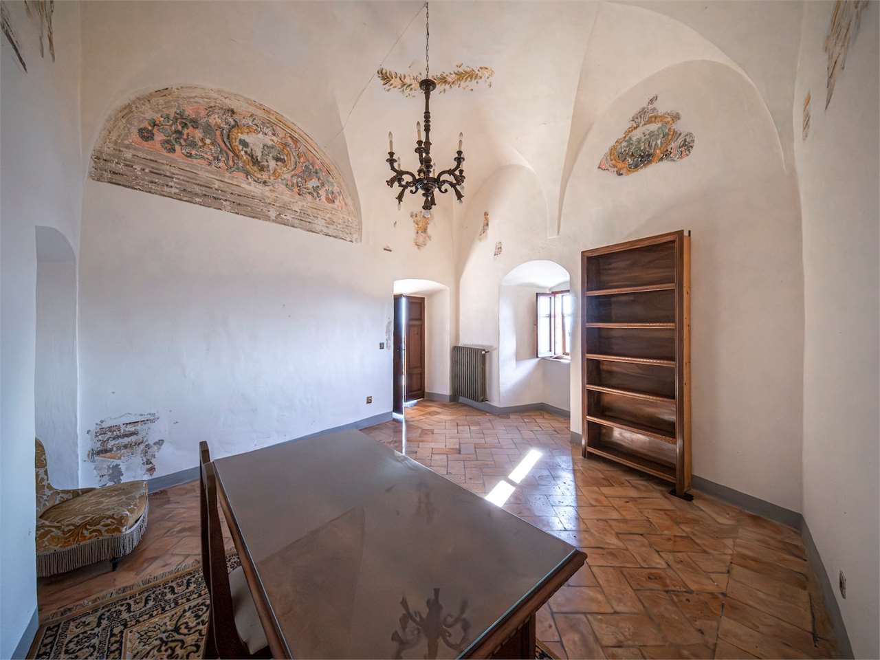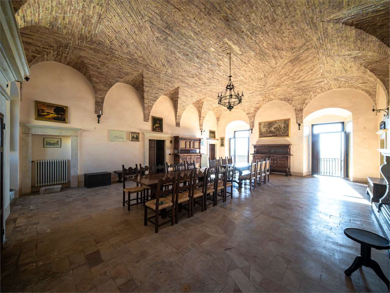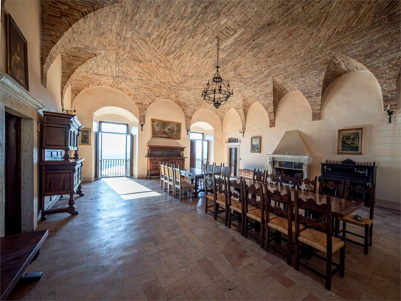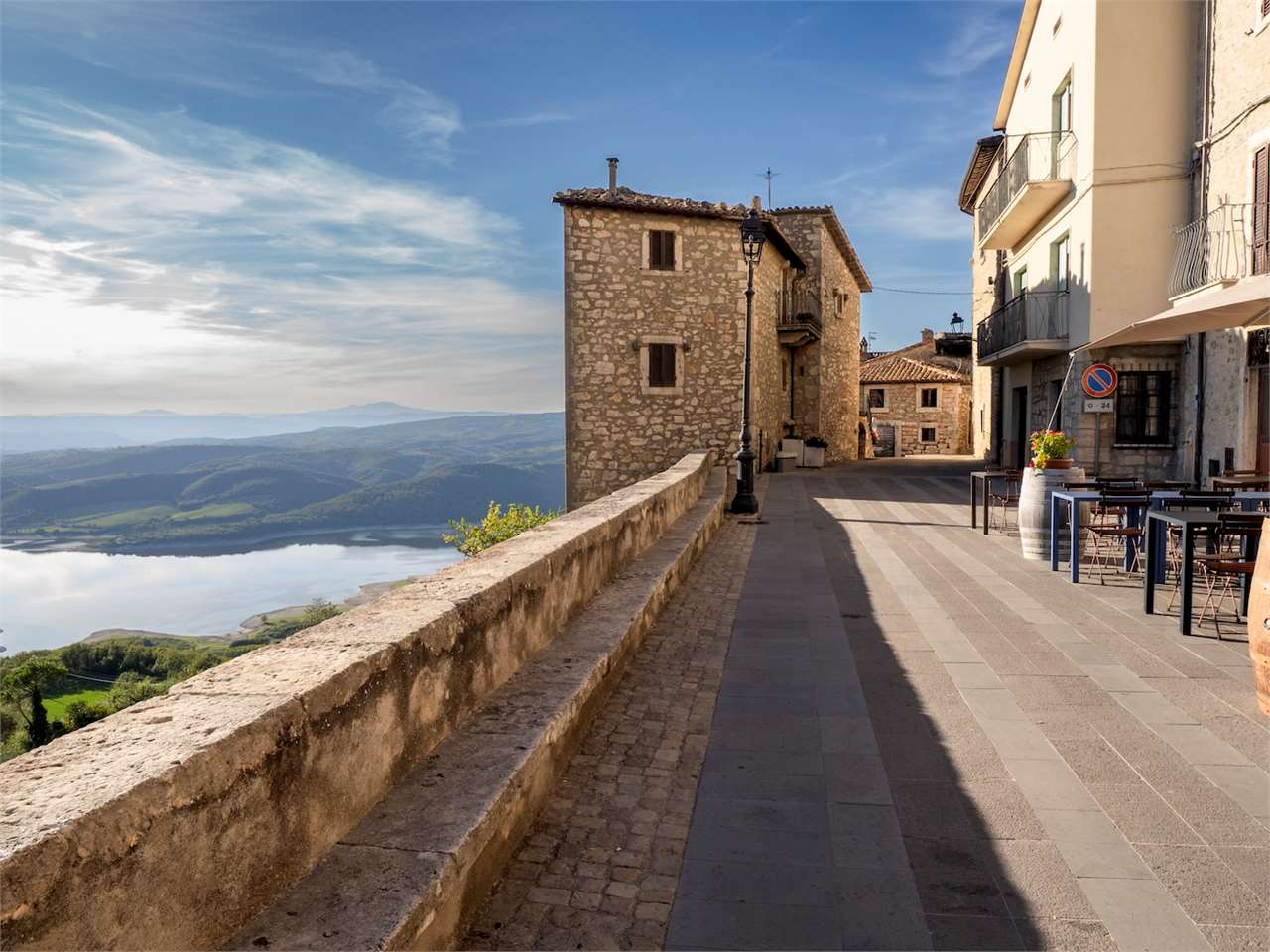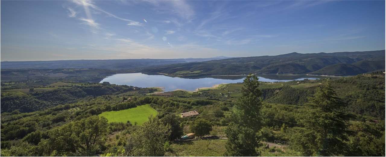 PRESTIGIOSA DIMORA STORICA CON TERRAZZA PANORAMICA SUL LAGO DI CORBARA\nCivitella del Lago – Umbria\n\nNel cuore dell’Umbria più autentica, tra Todi e Orvieto, all’interno dell’incantevole borgo medievale di Civitella del Lago, proponiamo in vendita una straordinaria residenza storica del XV secolo, rara opportunità immobiliare di assoluto pregio.\n\nImmersa in un contesto di quiete e bellezza senza tempo, la proprietà domina il paesaggio circostante offrendo panorami aperti e suggestivi sul Lago di Corbara e sulla Media Valle del Tevere, tra vigneti, oliveti e boschi secolari.\n\nLa dimora, appartenuta alla nobile famiglia tuderte degli Atti, si sviluppa su quattro livelli per una superficie complessiva di circa 550 mq, conservando intatti elementi architettonici originali di grande valore storico e artistico: facciate in pietra, inserti in marmo travertino, soffitti affrescati, camini monumentali, volte a vela e ambienti di rara eleganza.\n\nIl collegamento tra i piani avviene tramite una raffinata scala interna in marmo Rosso di Prodo, elemento distintivo che accompagna il percorso attraverso spazi ampi, luminosi e scenografici.\n\nDistribuzione degli ambienti:\n\nPiano Terra\nImportante ingresso di rappresentanza con doppio accesso, cucina abitabile, studio con soffitti affrescati, bagno e un maestoso salone panoramico con camino ottocentesco in marmo travertino, soffitti con volte a vela e grandi finestre che incorniciano il paesaggio umbro.\n\nPiano Primo\nZona notte con due camere matrimoniali e due bagni, ideale come piano padronale o area ospiti.\n\nPiano Secondo\nAmpia zona living con cucina abitabile, grande salone con camino e accesso diretto al terrazzo panoramico a pozzo, autentico gioiello della proprietà. Il piano ospita inoltre quattro camere matrimoniali e due bagni, rendendolo perfetto per accogliere famiglia e ospiti in totale comfort.\n\nPiano Seminterrato\nAffascinante salone in pietra con volta a botte in mattoncini, affacci panoramici sorprendenti, cantina e accesso diretto alla corte esterna esclusiva, ideale per momenti conviviali o degustazioni private.\n\nValore storico e unicità\n\nLa dimora è situata all’interno del prestigioso Cortile degli Atti, nel cuore del centro storico, con accesso dall’iconico Arco di Diomede, edificato da Diomede degli Atti, nobile tuderte e rettore della Chiesa di Santa Maria. Un contesto di assoluta riservatezza e fascino, riservato a poche proprietà di grande valore storico.\n\nCompleta la proprietà un terreno privato di circa 1.300 mq, con accesso diretto dalla residenza, elemento raro per un immobile all’interno di un borgo medievale.\n\nUna residenza esclusiva\n\nQuesta dimora rappresenta la soluzione ideale come:\n\nresidenza privata di prestigio\n\ndimora di rappresentanza\n\nresidenza per ospitalità di alto livello\n\ninvestimento immobiliare di valore storico e patrimoniale\n\nUn’opportunità unica per chi desidera vivere o investire in una residenza senza tempo, dove storia, panorama e lusso discreto si fondono in un’esperienza abitativa irripetibile.