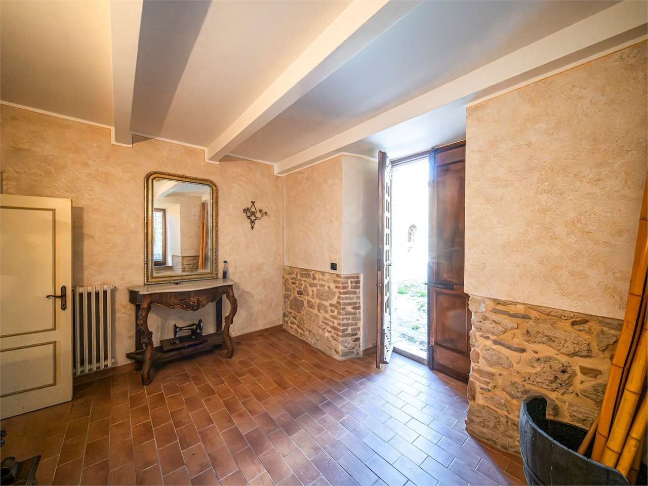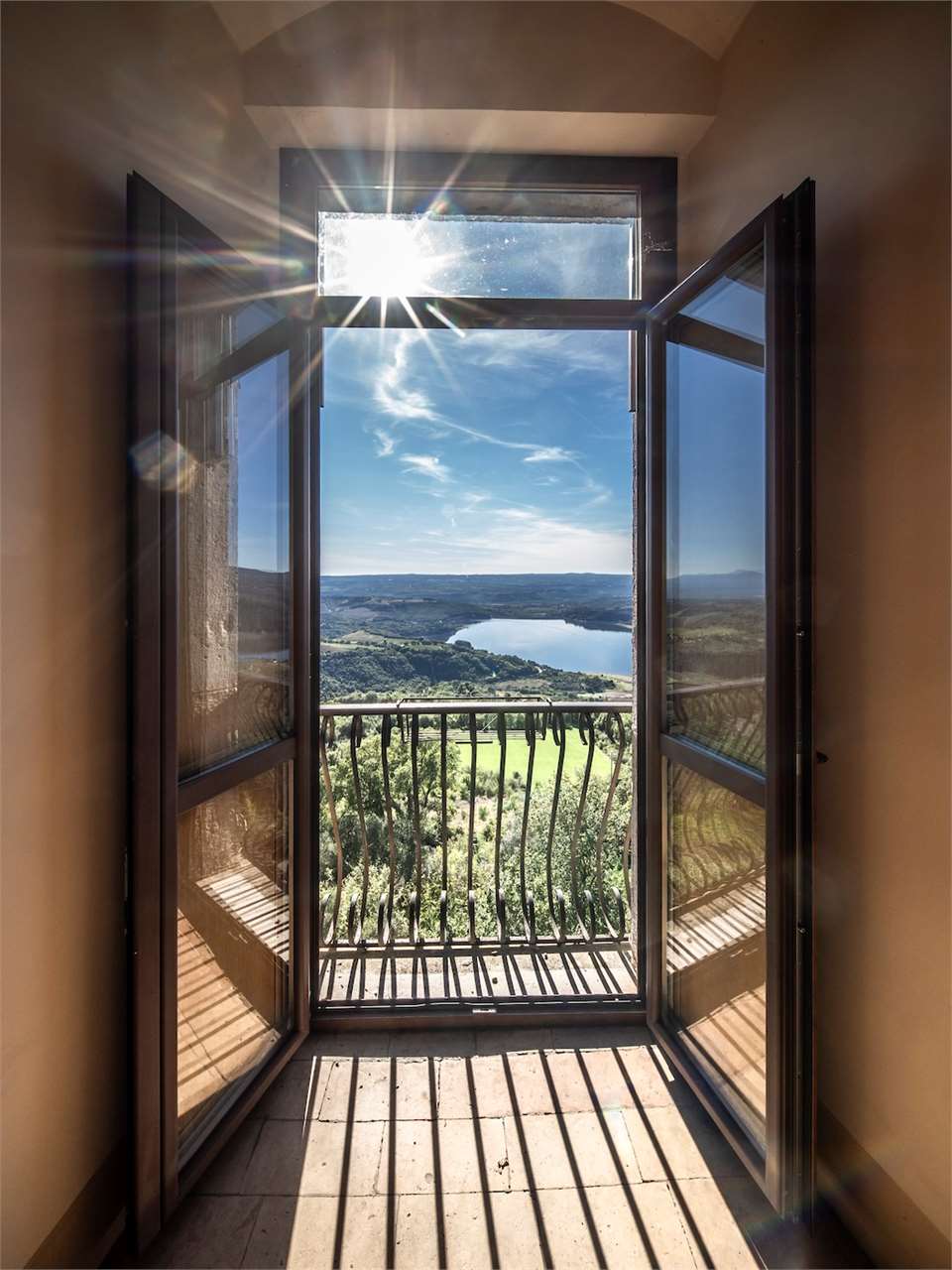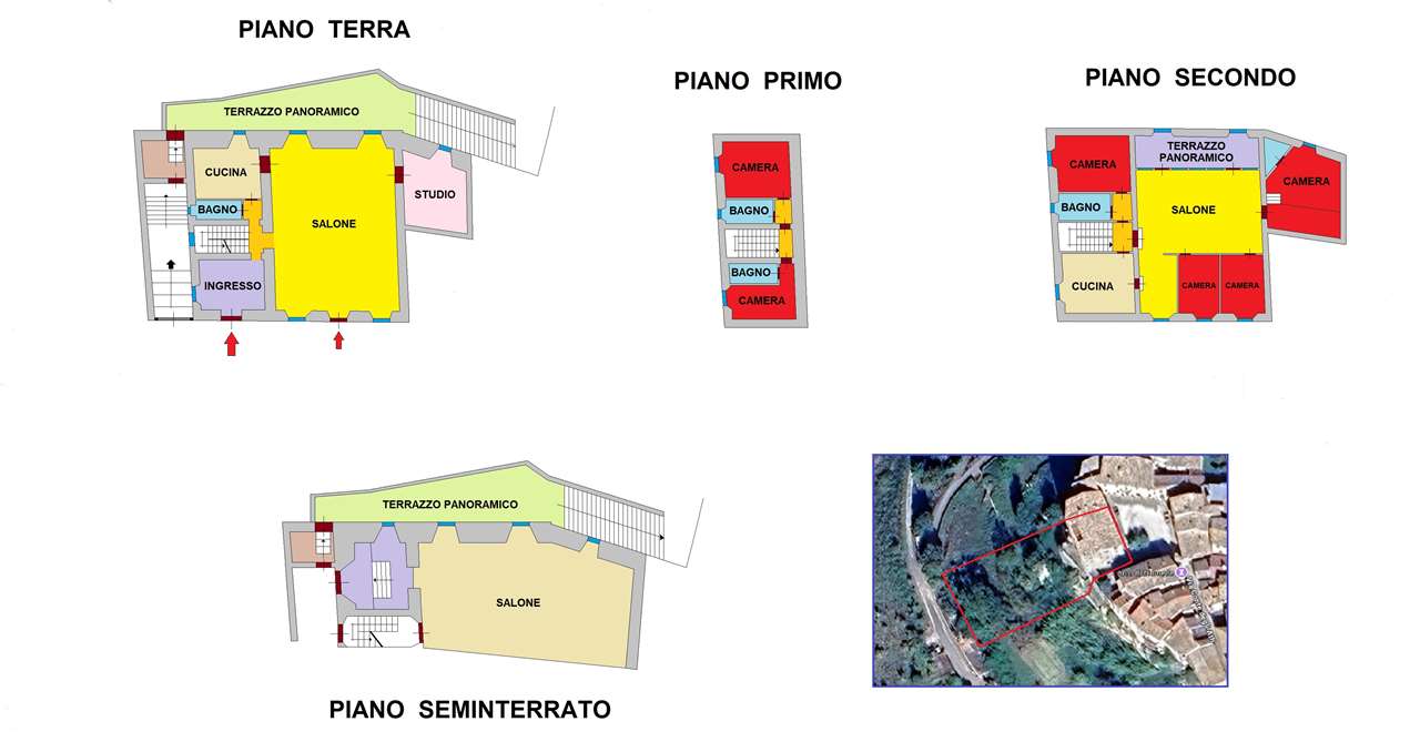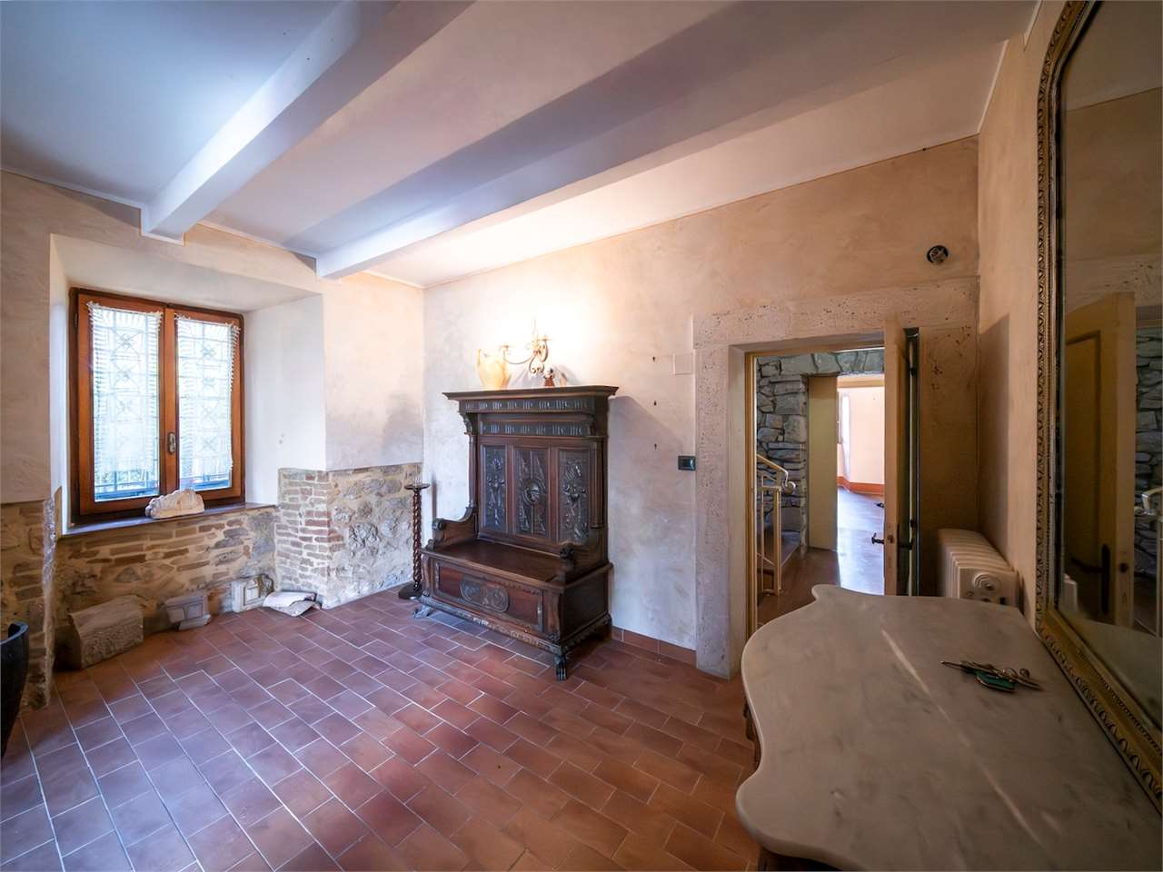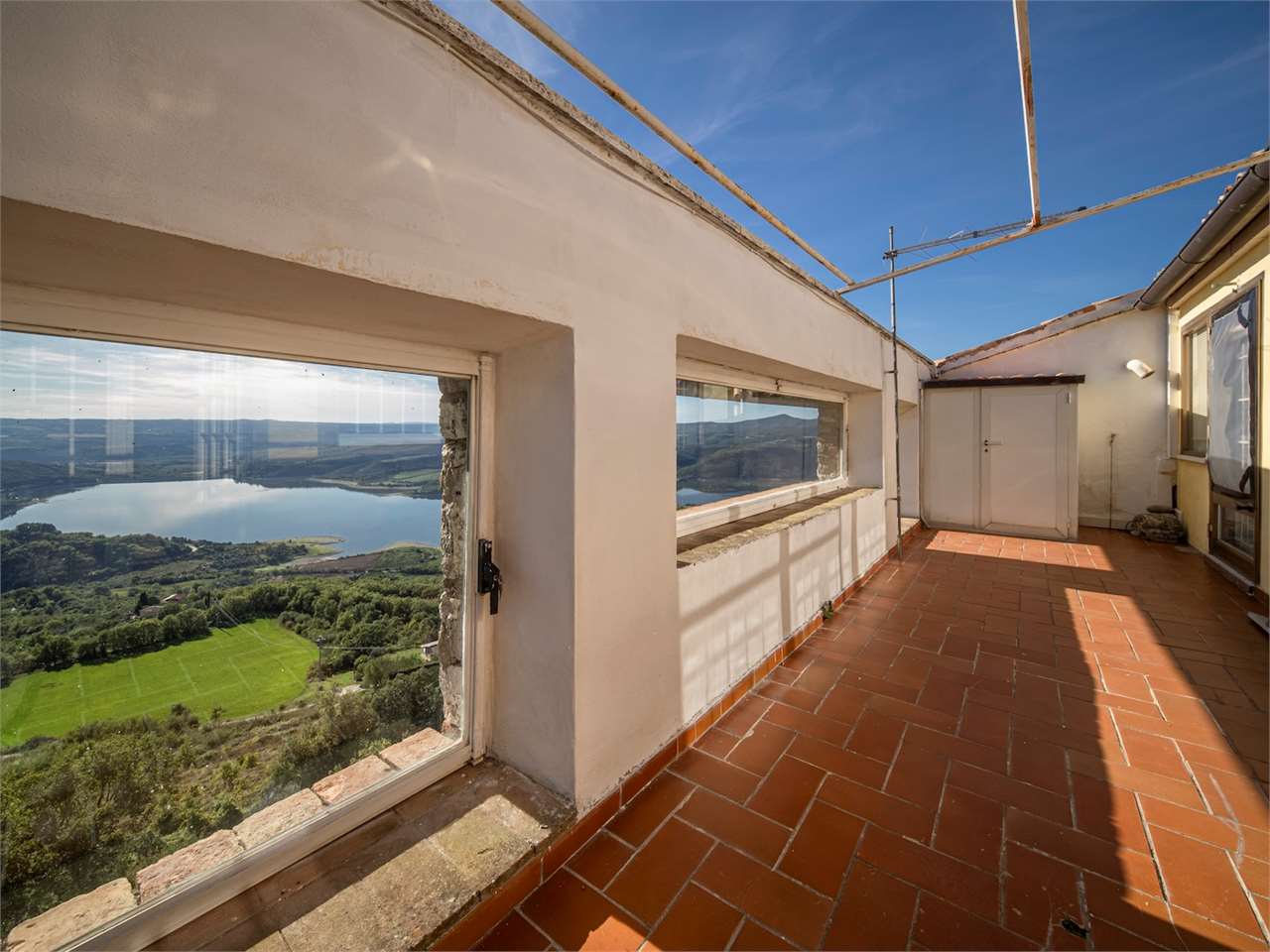 PRESTIGIOSA DIMORA STORICA CON TERRAZZA PANORAMICA SUL LAGO DI CORBARA\nCivitella del Lago – Umbria\n\nNel cuore dell’Umbria più autentica, tra Todi e Orvieto, all’interno dell’incantevole borgo medievale di Civitella del Lago, proponiamo in vendita una straordinaria residenza storica del XV secolo, rara opportunità immobiliare di assoluto pregio.\n\nImmersa in un contesto di quiete e bellezza senza tempo, la proprietà domina il paesaggio circostante offrendo panorami aperti e suggestivi sul Lago di Corbara e sulla Media Valle del Tevere, tra vigneti, oliveti e boschi secolari.\n\nLa dimora, appartenuta alla nobile famiglia tuderte degli Atti, si sviluppa su quattro livelli per una superficie complessiva di circa 550 mq, conservando intatti elementi architettonici originali di grande valore storico e artistico: facciate in pietra, inserti in marmo travertino, soffitti affrescati, camini monumentali, volte a vela e ambienti di rara eleganza.\n\nIl collegamento tra i piani avviene tramite una raffinata scala interna in marmo Rosso di Prodo, elemento distintivo che accompagna il percorso attraverso spazi ampi, luminosi e scenografici.\n\nDistribuzione degli ambienti:\n\nPiano Terra\nImportante ingresso di rappresentanza con doppio accesso, cucina abitabile, studio con soffitti affrescati, bagno e un maestoso salone panoramico con camino ottocentesco in marmo travertino, soffitti con volte a vela e grandi finestre che incorniciano il paesaggio umbro.\n\nPiano Primo\nZona notte con due camere matrimoniali e due bagni, ideale come piano padronale o area ospiti.\n\nPiano Secondo\nAmpia zona living con cucina abitabile, grande salone con camino e accesso diretto al terrazzo panoramico a pozzo, autentico gioiello della proprietà. Il piano ospita inoltre quattro camere matrimoniali e due bagni, rendendolo perfetto per accogliere famiglia e ospiti in totale comfort.\n\nPiano Seminterrato\nAffascinante salone in pietra con volta a botte in mattoncini, affacci panoramici sorprendenti, cantina e accesso diretto alla corte esterna esclusiva, ideale per momenti conviviali o degustazioni private.\n\nValore storico e unicità\n\nLa dimora è situata all’interno del prestigioso Cortile degli Atti, nel cuore del centro storico, con accesso dall’iconico Arco di Diomede, edificato da Diomede degli Atti, nobile tuderte e rettore della Chiesa di Santa Maria. Un contesto di assoluta riservatezza e fascino, riservato a poche proprietà di grande valore storico.\n\nCompleta la proprietà un terreno privato di circa 1.300 mq, con accesso diretto dalla residenza, elemento raro per un immobile all’interno di un borgo medievale.\n\nUna residenza esclusiva\n\nQuesta dimora rappresenta la soluzione ideale come:\n\nresidenza privata di prestigio\n\ndimora di rappresentanza\n\nresidenza per ospitalità di alto livello\n\ninvestimento immobiliare di valore storico e patrimoniale\n\nUn’opportunità unica per chi desidera vivere o investire in una residenza senza tempo, dove storia, panorama e lusso discreto si fondono in un’esperienza abitativa irripetibile.