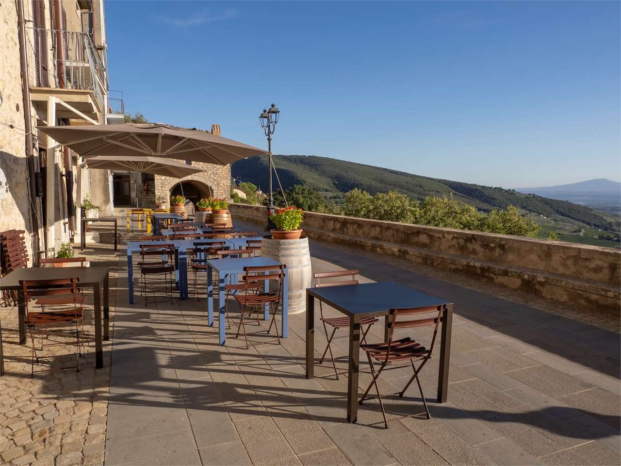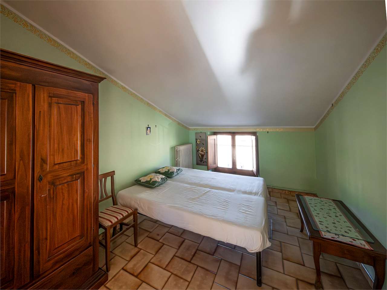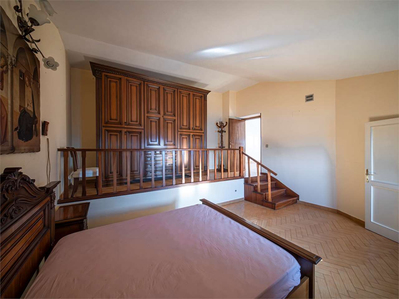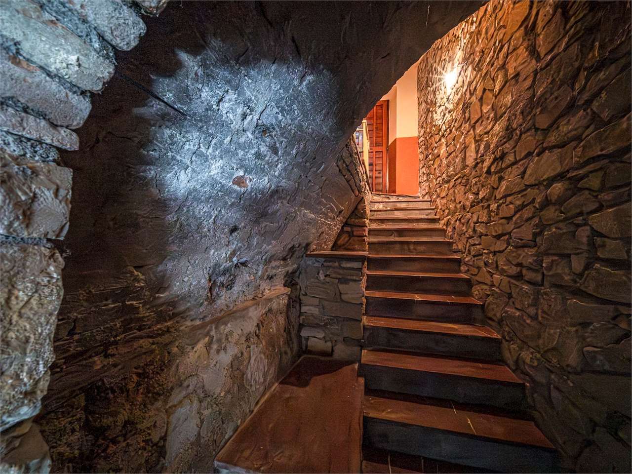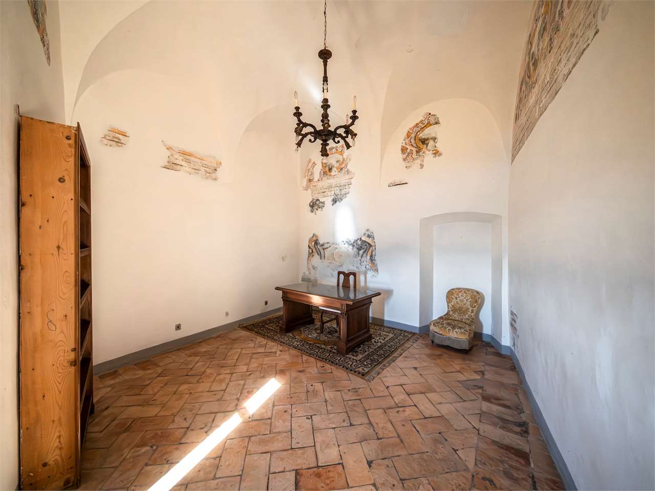 PRESTIGIOSA DIMORA STORICA CON TERRAZZA PANORAMICA SUL LAGO DI CORBARA\nCivitella del Lago – Umbria\n\nNel cuore dell’Umbria più autentica, tra Todi e Orvieto, all’interno dell’incantevole borgo medievale di Civitella del Lago, proponiamo in vendita una straordinaria residenza storica del XV secolo, rara opportunità immobiliare di assoluto pregio.\n\nImmersa in un contesto di quiete e bellezza senza tempo, la proprietà domina il paesaggio circostante offrendo panorami aperti e suggestivi sul Lago di Corbara e sulla Media Valle del Tevere, tra vigneti, oliveti e boschi secolari.\n\nLa dimora, appartenuta alla nobile famiglia tuderte degli Atti, si sviluppa su quattro livelli per una superficie complessiva di circa 550 mq, conservando intatti elementi architettonici originali di grande valore storico e artistico: facciate in pietra, inserti in marmo travertino, soffitti affrescati, camini monumentali, volte a vela e ambienti di rara eleganza.\n\nIl collegamento tra i piani avviene tramite una raffinata scala interna in marmo Rosso di Prodo, elemento distintivo che accompagna il percorso attraverso spazi ampi, luminosi e scenografici.\n\nDistribuzione degli ambienti:\n\nPiano Terra\nImportante ingresso di rappresentanza con doppio accesso, cucina abitabile, studio con soffitti affrescati, bagno e un maestoso salone panoramico con camino ottocentesco in marmo travertino, soffitti con volte a vela e grandi finestre che incorniciano il paesaggio umbro.\n\nPiano Primo\nZona notte con due camere matrimoniali e due bagni, ideale come piano padronale o area ospiti.\n\nPiano Secondo\nAmpia zona living con cucina abitabile, grande salone con camino e accesso diretto al terrazzo panoramico a pozzo, autentico gioiello della proprietà. Il piano ospita inoltre quattro camere matrimoniali e due bagni, rendendolo perfetto per accogliere famiglia e ospiti in totale comfort.\n\nPiano Seminterrato\nAffascinante salone in pietra con volta a botte in mattoncini, affacci panoramici sorprendenti, cantina e accesso diretto alla corte esterna esclusiva, ideale per momenti conviviali o degustazioni private.\n\nValore storico e unicità\n\nLa dimora è situata all’interno del prestigioso Cortile degli Atti, nel cuore del centro storico, con accesso dall’iconico Arco di Diomede, edificato da Diomede degli Atti, nobile tuderte e rettore della Chiesa di Santa Maria. Un contesto di assoluta riservatezza e fascino, riservato a poche proprietà di grande valore storico.\n\nCompleta la proprietà un terreno privato di circa 1.300 mq, con accesso diretto dalla residenza, elemento raro per un immobile all’interno di un borgo medievale.\n\nUna residenza esclusiva\n\nQuesta dimora rappresenta la soluzione ideale come:\n\nresidenza privata di prestigio\n\ndimora di rappresentanza\n\nresidenza per ospitalità di alto livello\n\ninvestimento immobiliare di valore storico e patrimoniale\n\nUn’opportunità unica per chi desidera vivere o investire in una residenza senza tempo, dove storia, panorama e lusso discreto si fondono in un’esperienza abitativa irripetibile.