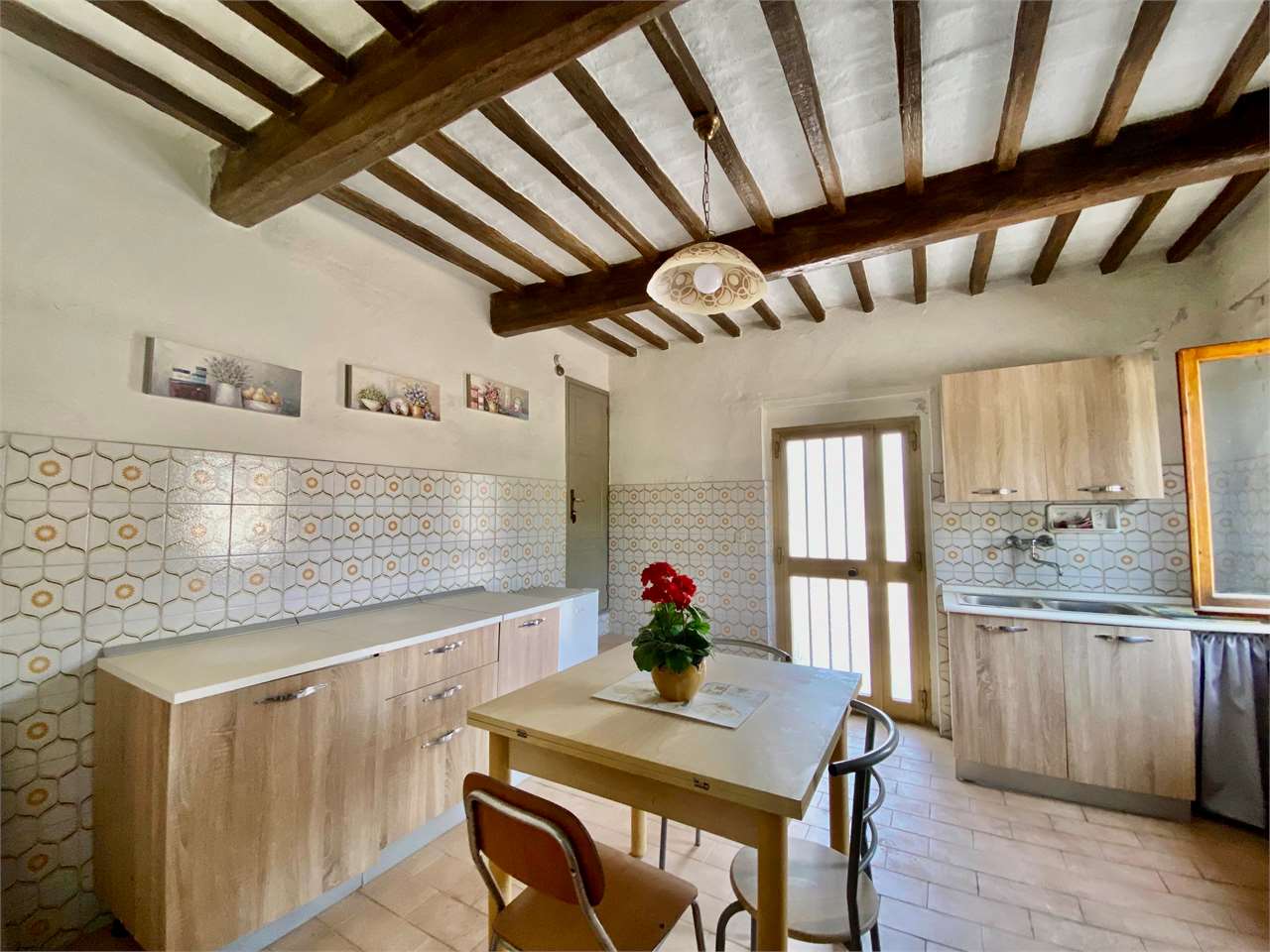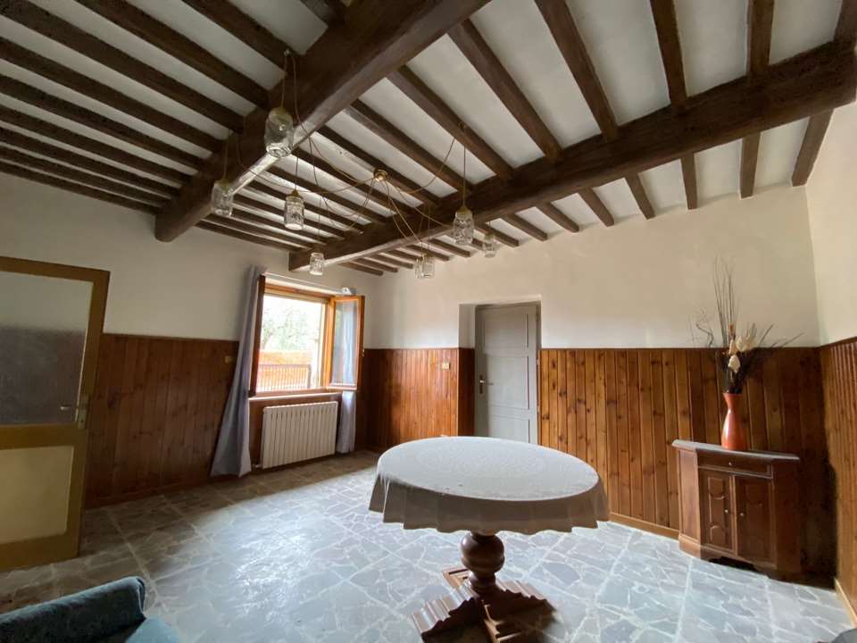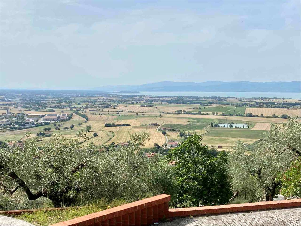 PANICALE - COLGIORDANO : a pochi minuti dal Lago Trasimeno vendiamo \ncielo terra di 120 mq ca. già diviso in 2 appartamenti con ingressi separati.\nPiano terra: soggiorno angolo cottura con tipico camino Umbro, sala, accesso al garage e bagno con finestra, con piccola corte circostante;\nPiano primo, con splendida vista Lago Trasimeno: tre camere, bagno.\nCompleta la proprietà un comodo garage. Buone condizioni. Ottimo anche come investimento e b&b. Per ulteriori informazioni: 075/30040