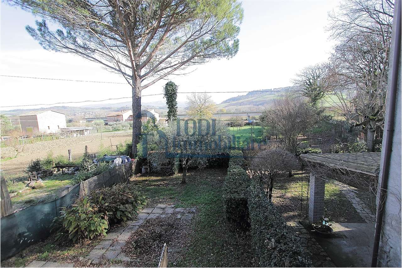 TODI - Pian di San Martino, proponiamo in vendita un cielo terra con giardino e terreno privato di circa 1.100 mq con ingresso indipendente disposta su due livelli. La casa necessita di lavori di ristrutturazione, ha ambienti luminosi, inoltre può contare anche su un’ottima esposizione, zona residenziale e vicinissima a tutti i servizi. \nLa frazione di Pian di San Martino dista circa 8 Km dal centro Storico di Todi, \nTODI, famosa città di circa 17.000 abitanti, secondo le ricerche del ‘Center for Sustainable Cities’ della U.S. Kentucky University, è stata definita una delle più vivibili al mondo!\nIl centro storico di Todi si è mantenuto integro e permette ai visitatori di apprezzare numerosi palazzi e chiese, risalenti ad epoche differenti, il tutto protetto all\'interno di una cinta muraria eretta nel 1244, dove ad oggi svettano ancora i bastioni e sono visibili le porte che permettevano l\'ingresso alla città.\nContattateci per ulteriori informazioni o per prendere un appuntamento.